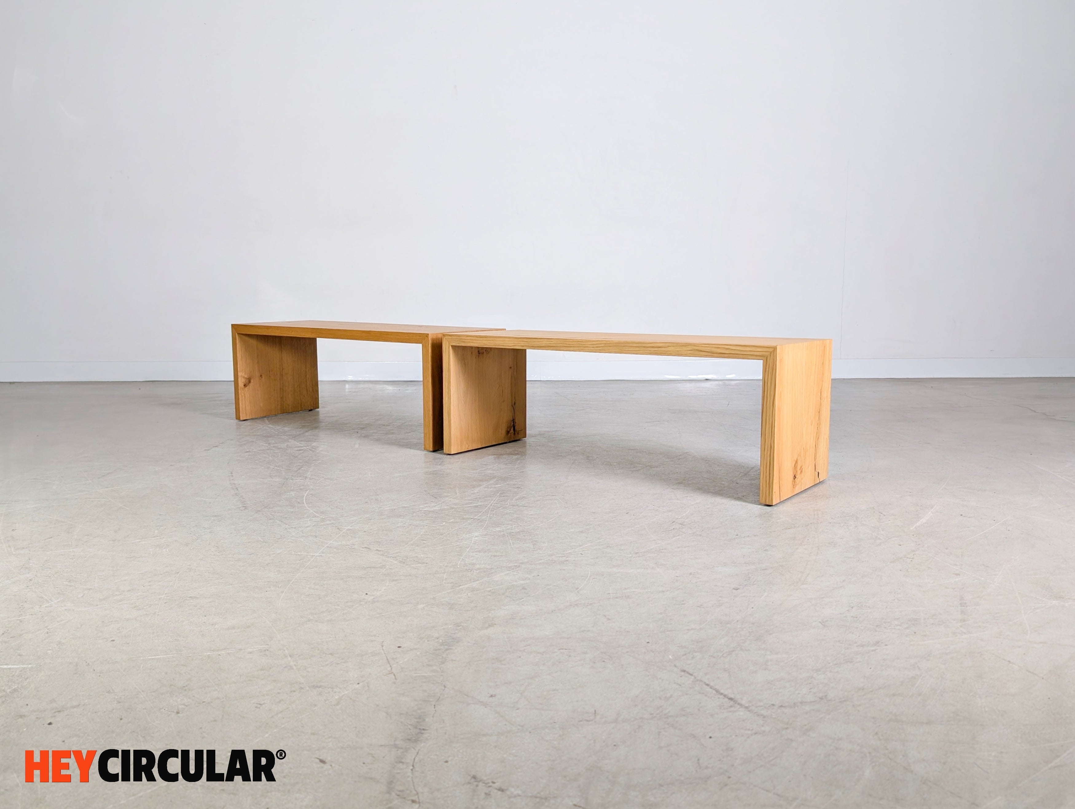 Wir bieten ein wunderschönes 2er Set Koinor Beistelltische/ Bänke zum Verkauf an. Die beiden Tischchen, die ideal zu der Koinor Serie Epos Free Motion mit Balkeneiche passen, können sowohl horizontal, als auch vertikal gestellt werden und damit als eine höhere Ablage dienen. Der Preis versteht sich als Setpreis und bezieht sich auf beide Bänke.