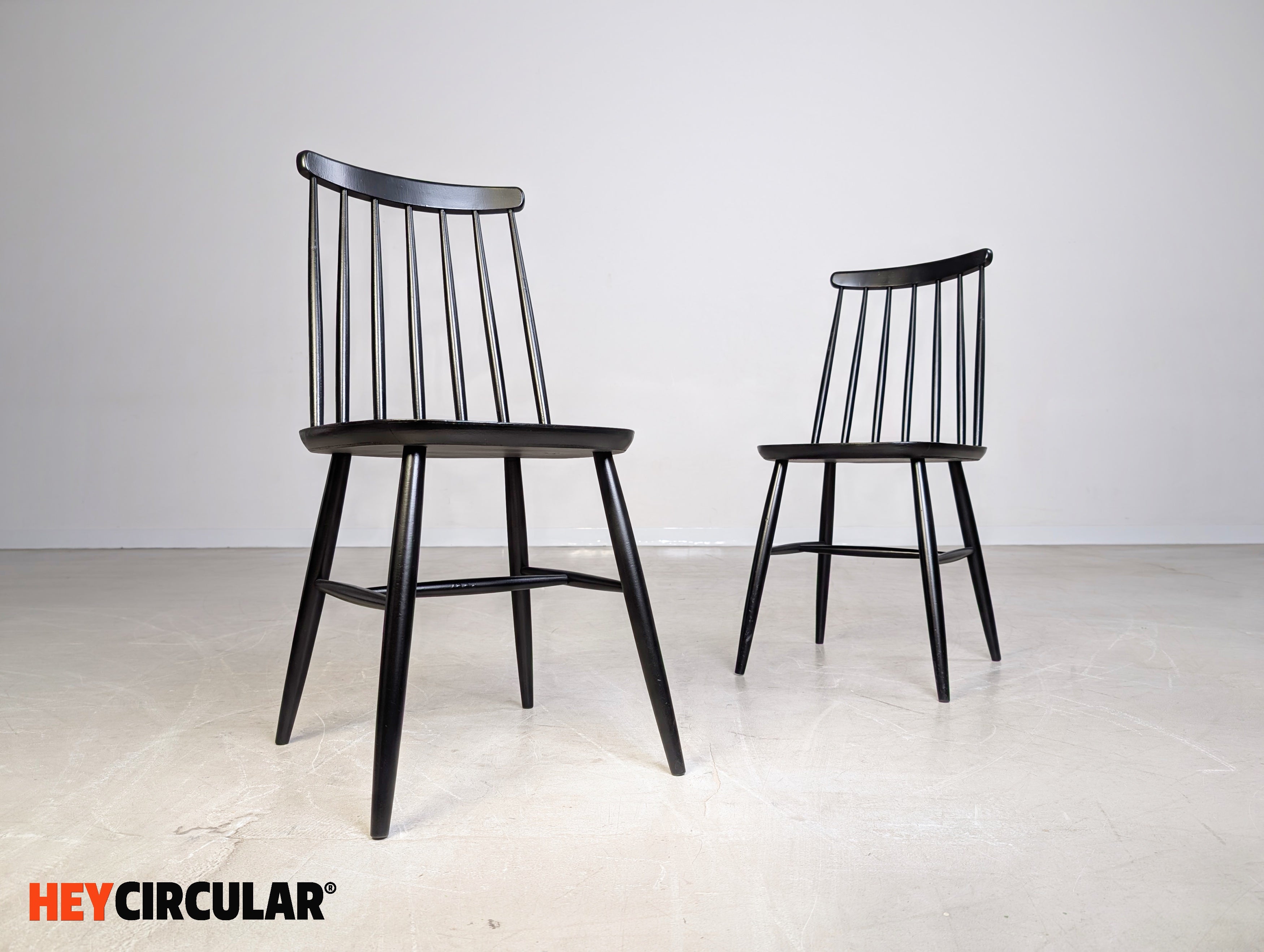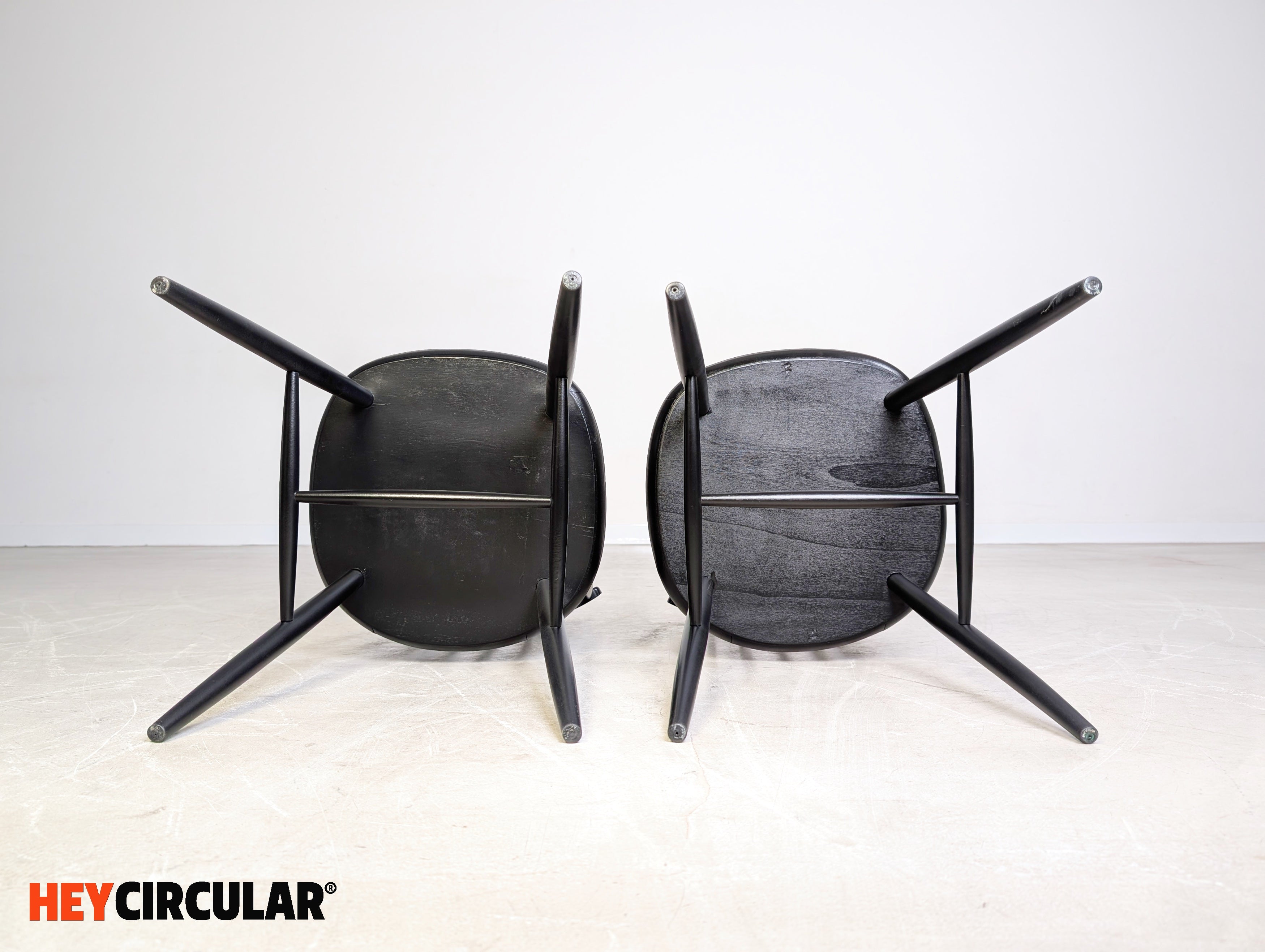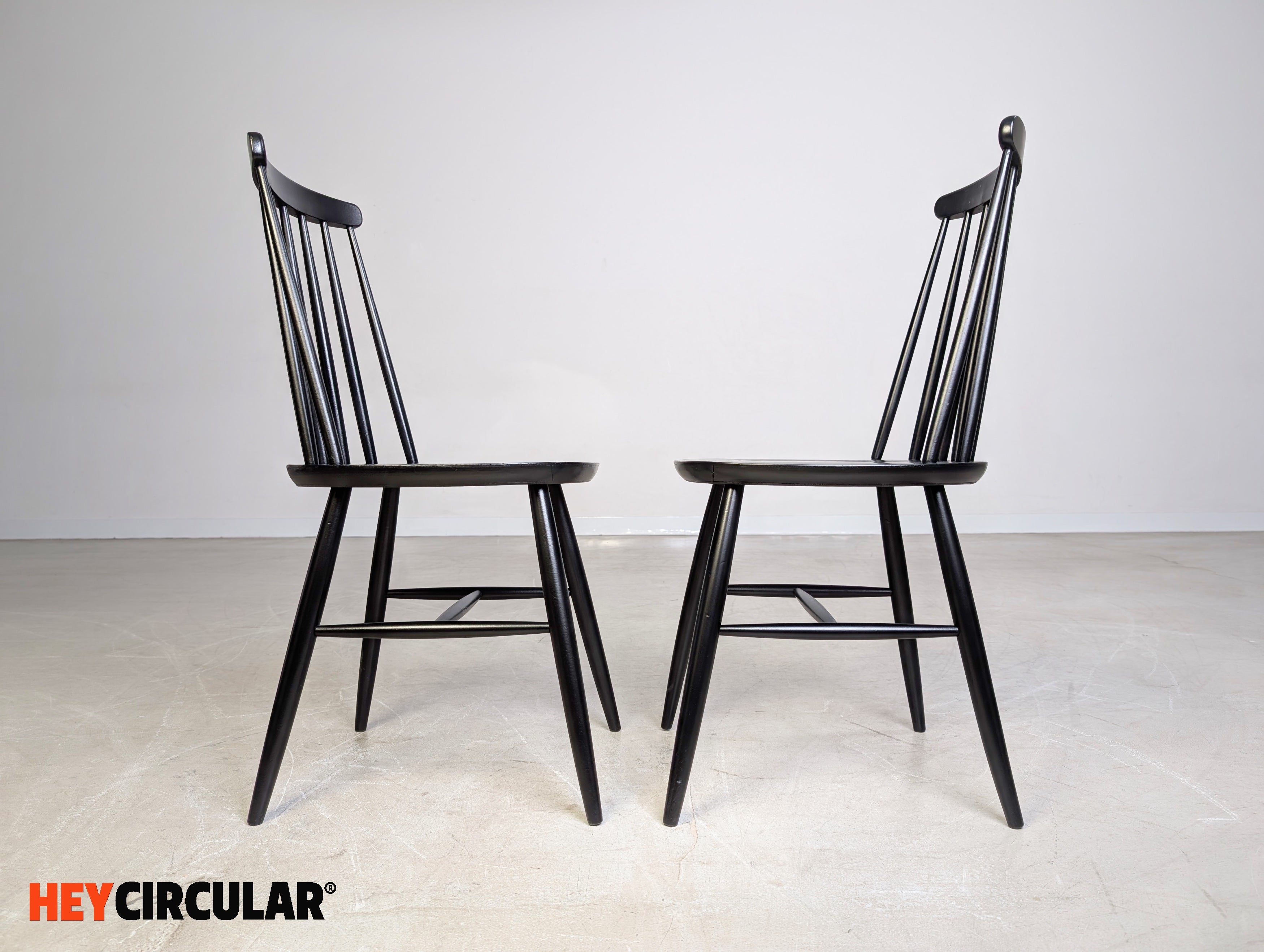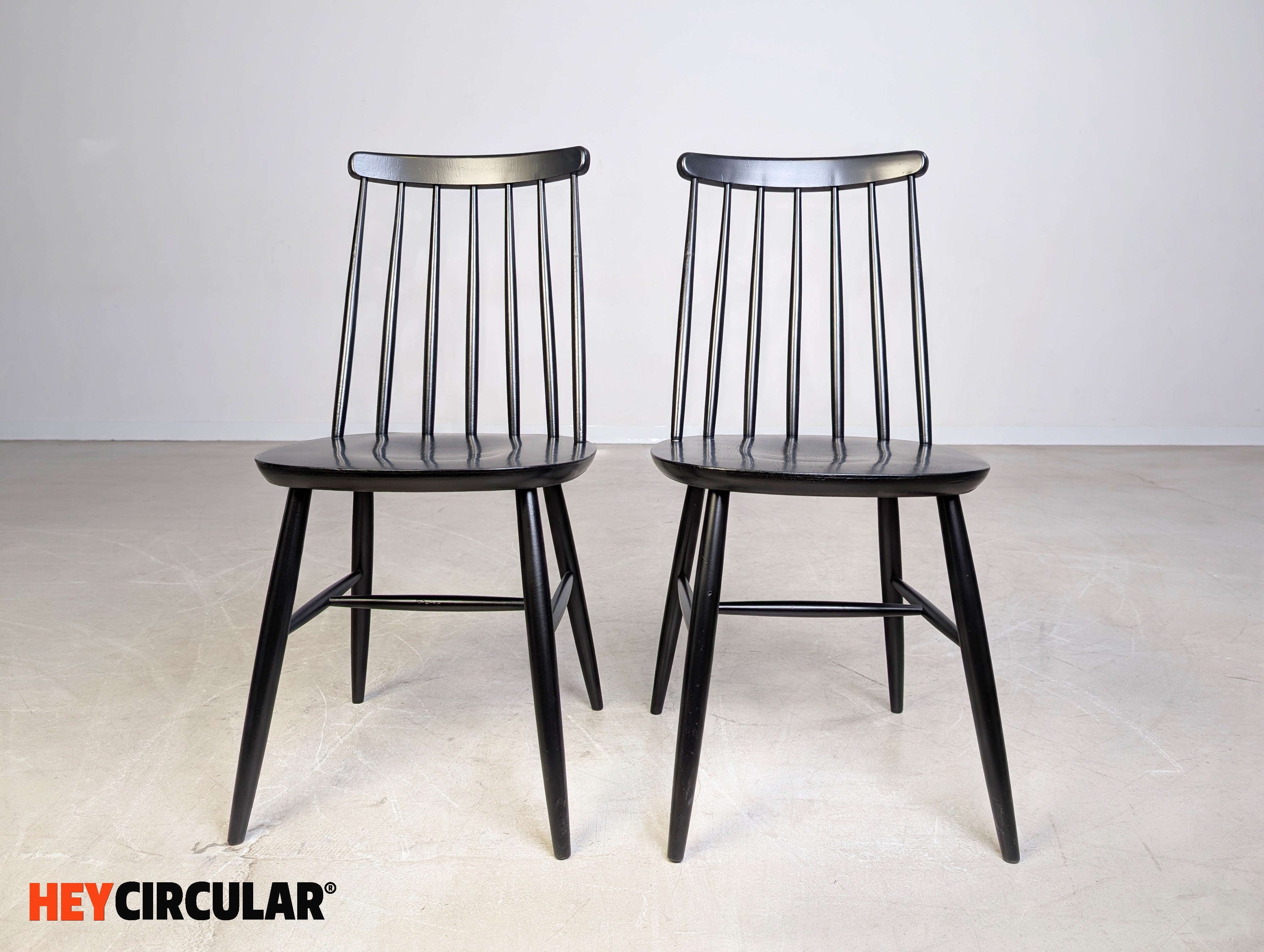 2er Set Midcentury Stuhl Ilmari Tapiovaara Vintage Holzsprossen schwarz