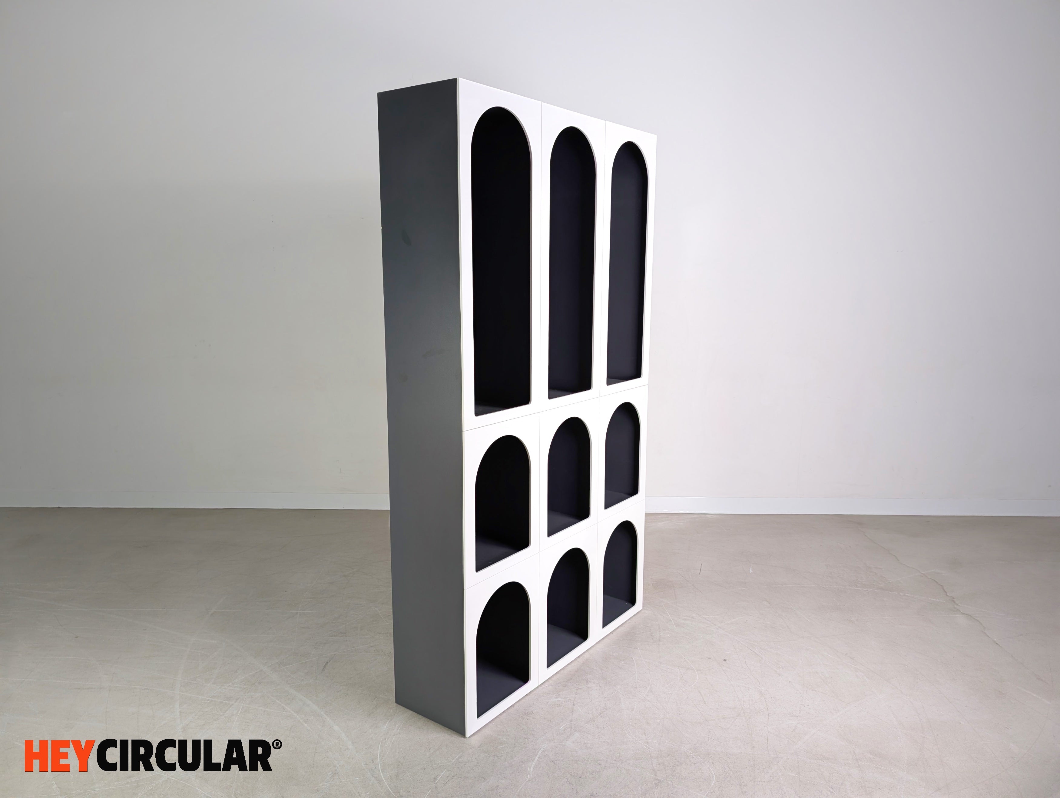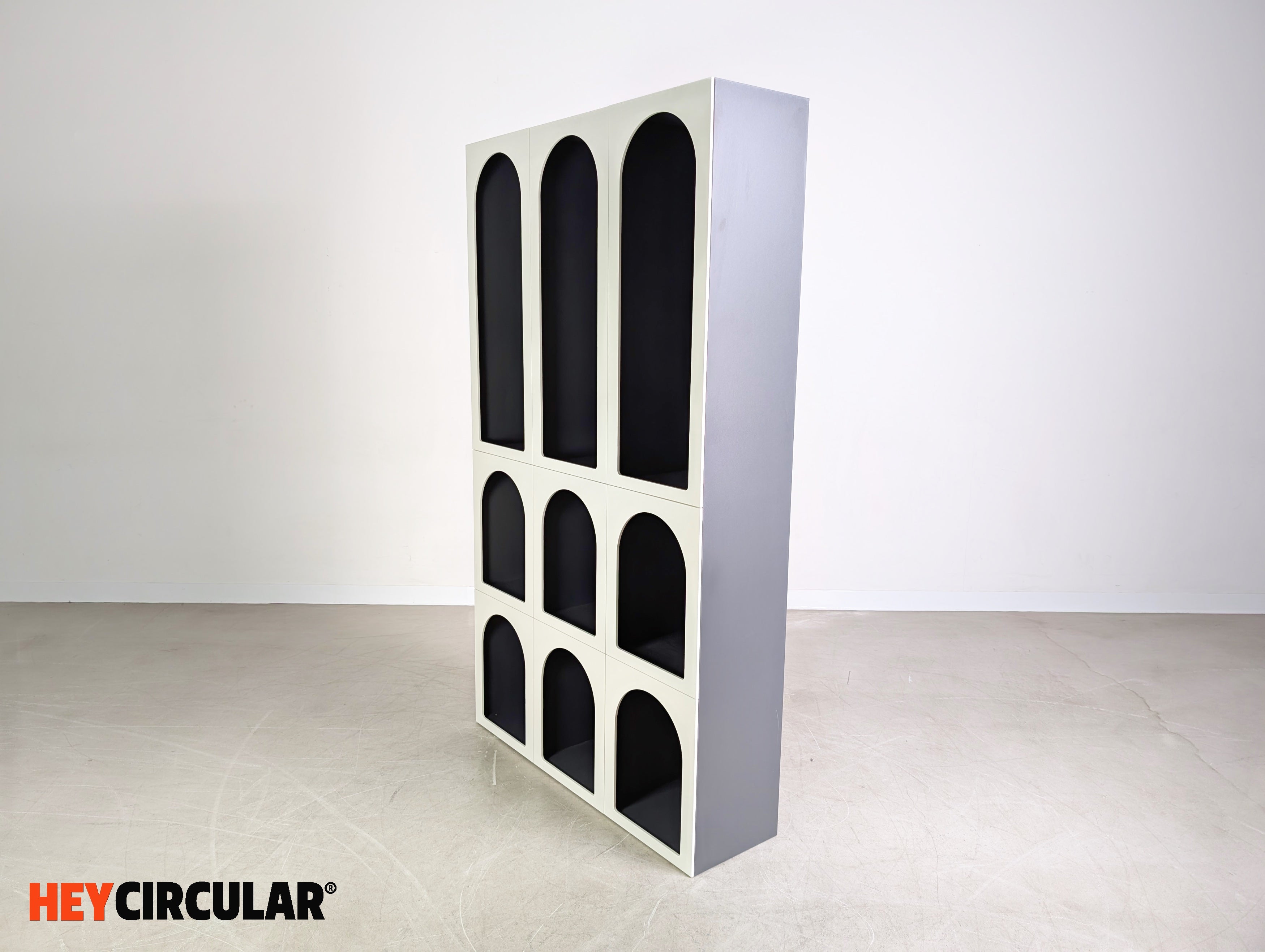 Wir bieten eins von insgesamt elf Bonaldo "Cabinet de Curiosité" Bücherregale aus dem Jahr 2023 zum Verkauf an. Die Regale wurden von Fabrice Berrux entworfen und verfügen über unterschiedliche Anordnungen der vorderen Regalöffnungen. Zwei der insgesamt elf Regale sind mit den abgebildeten Fächern verfügbar. Weitere, passende Module bieten wir in unseren anderen Anzeigen zum Verkauf an. Neupreis des Regals liegt bei ca. 4.000,-€.