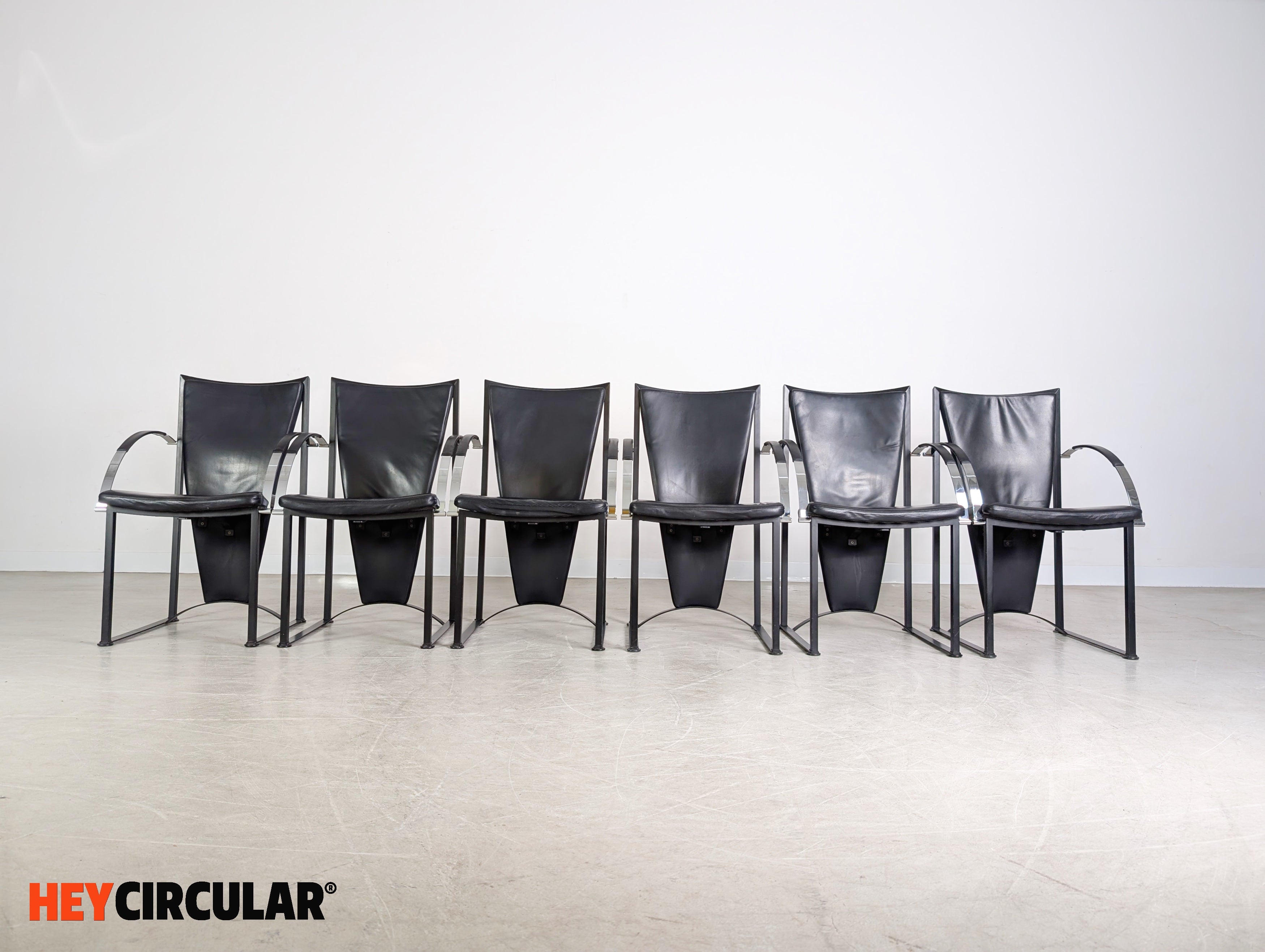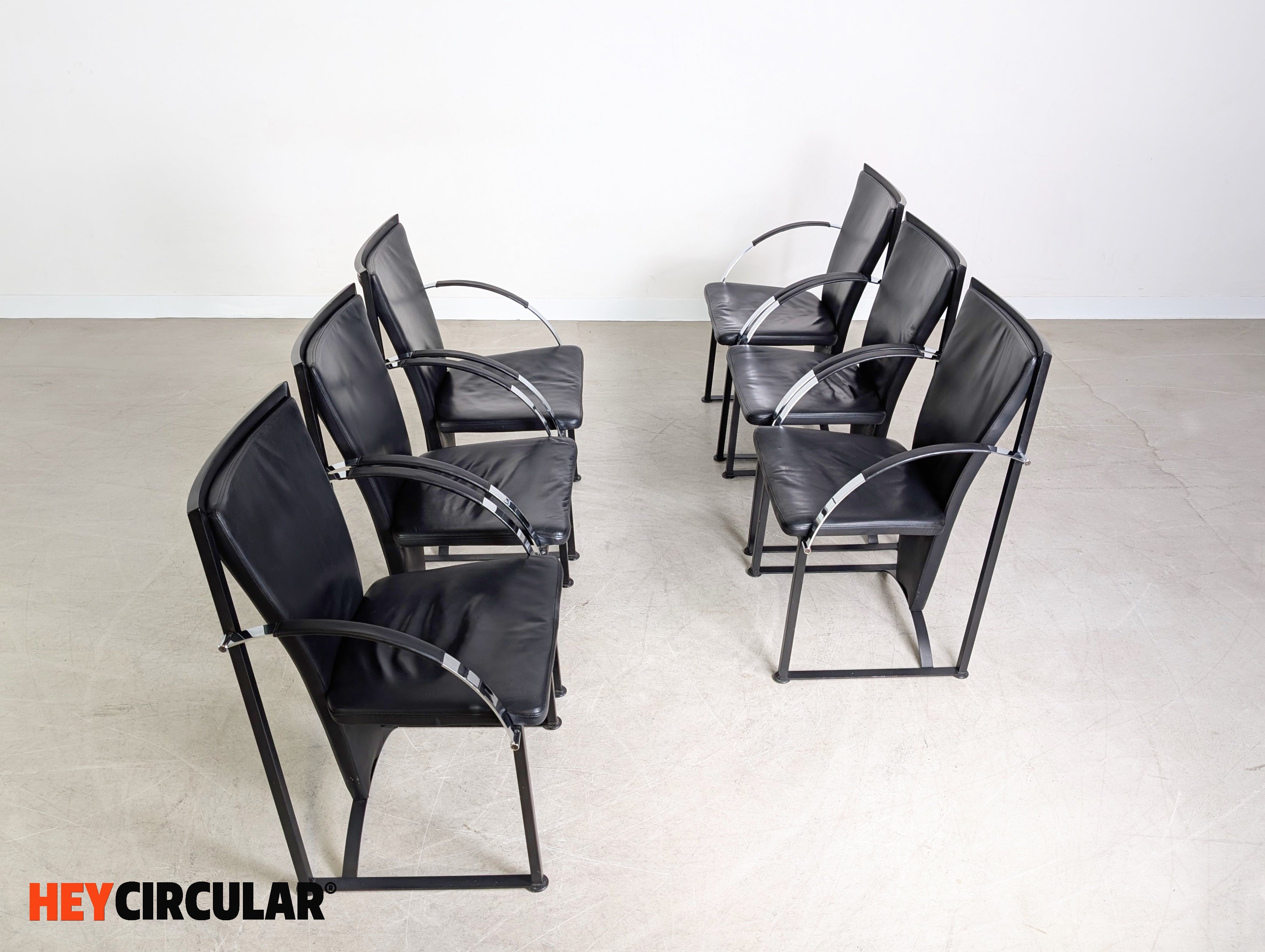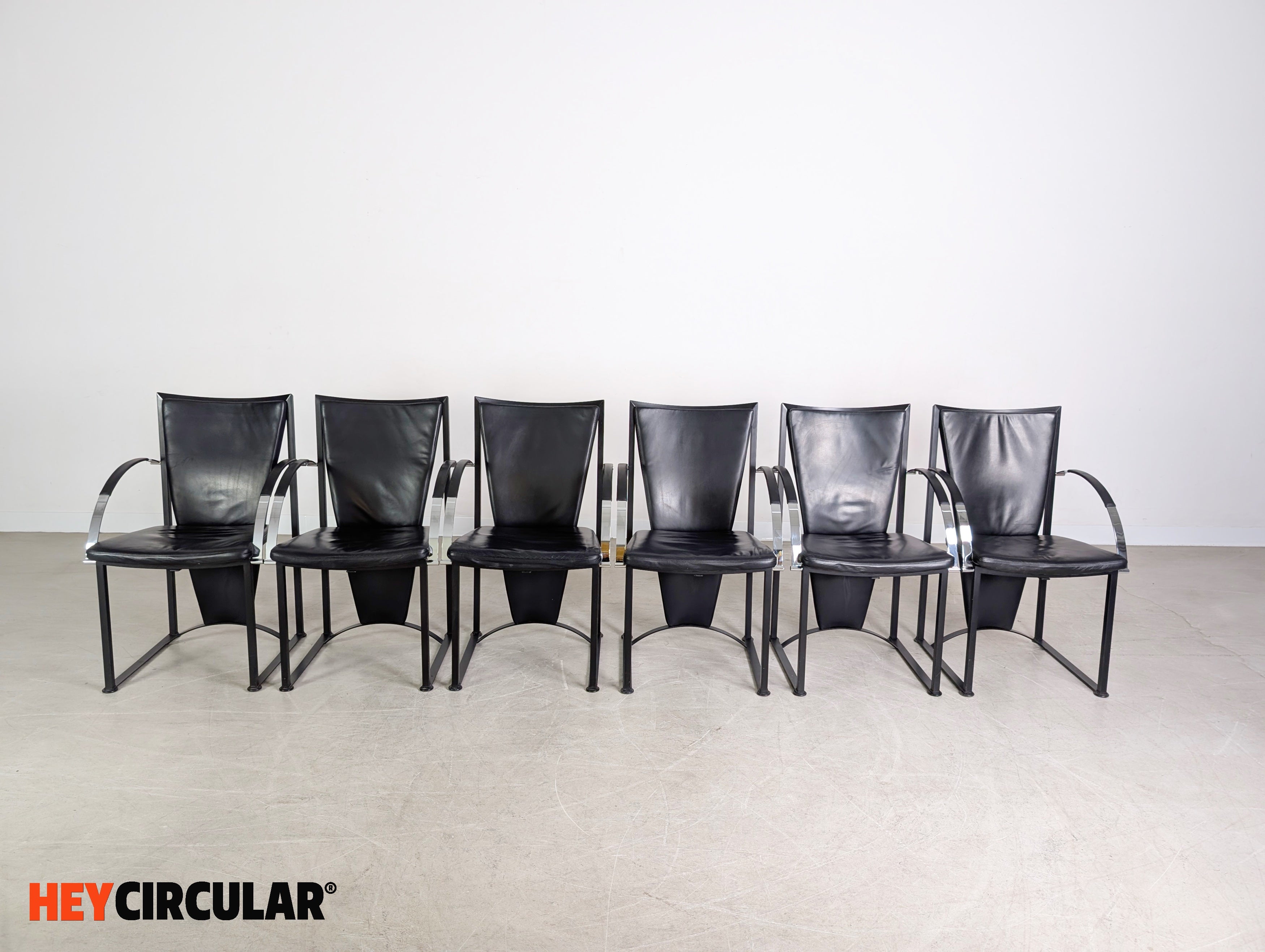 6er Set Original Ronald Schmitt Stühle Leder Design Stuhl schwarz