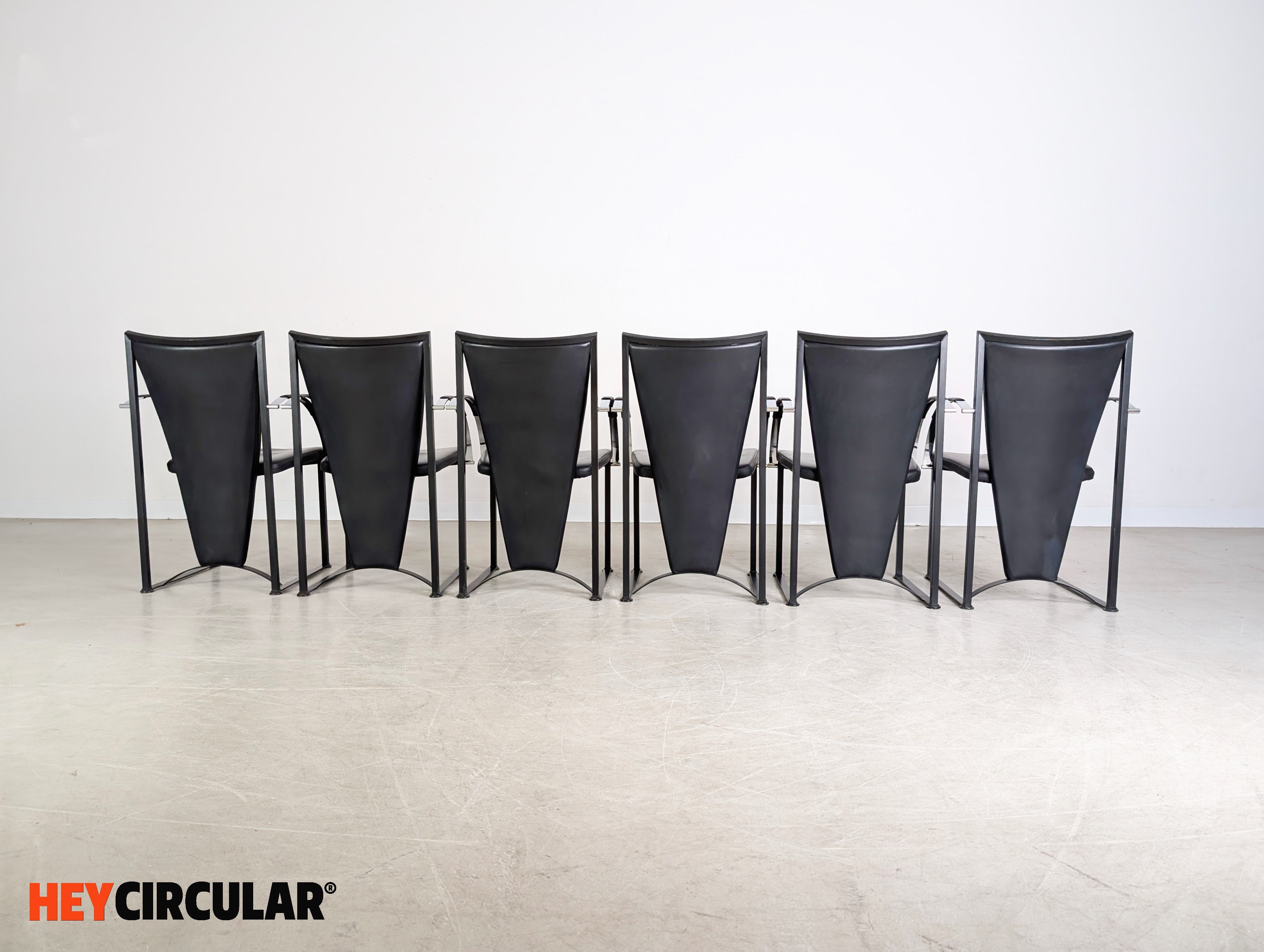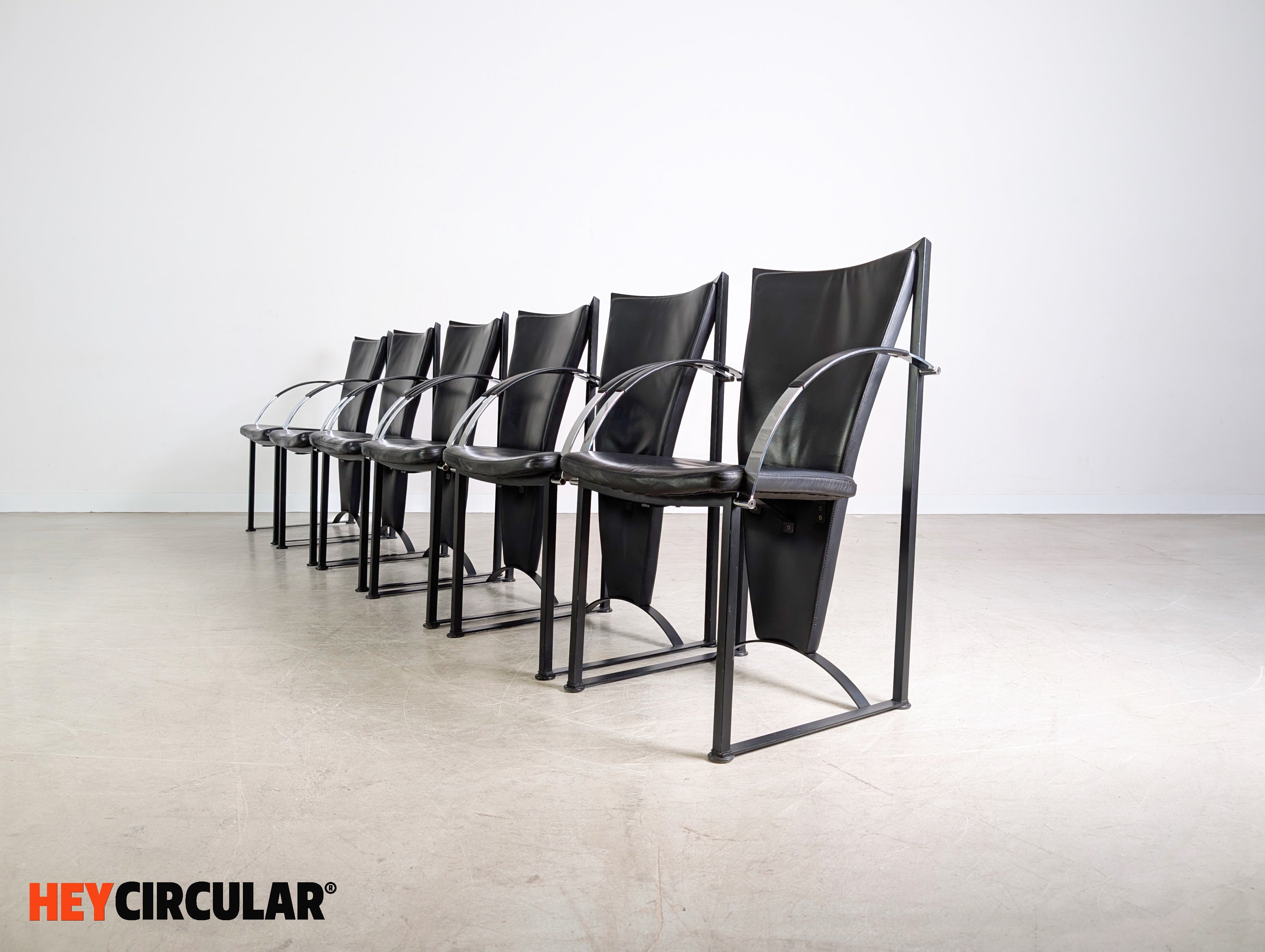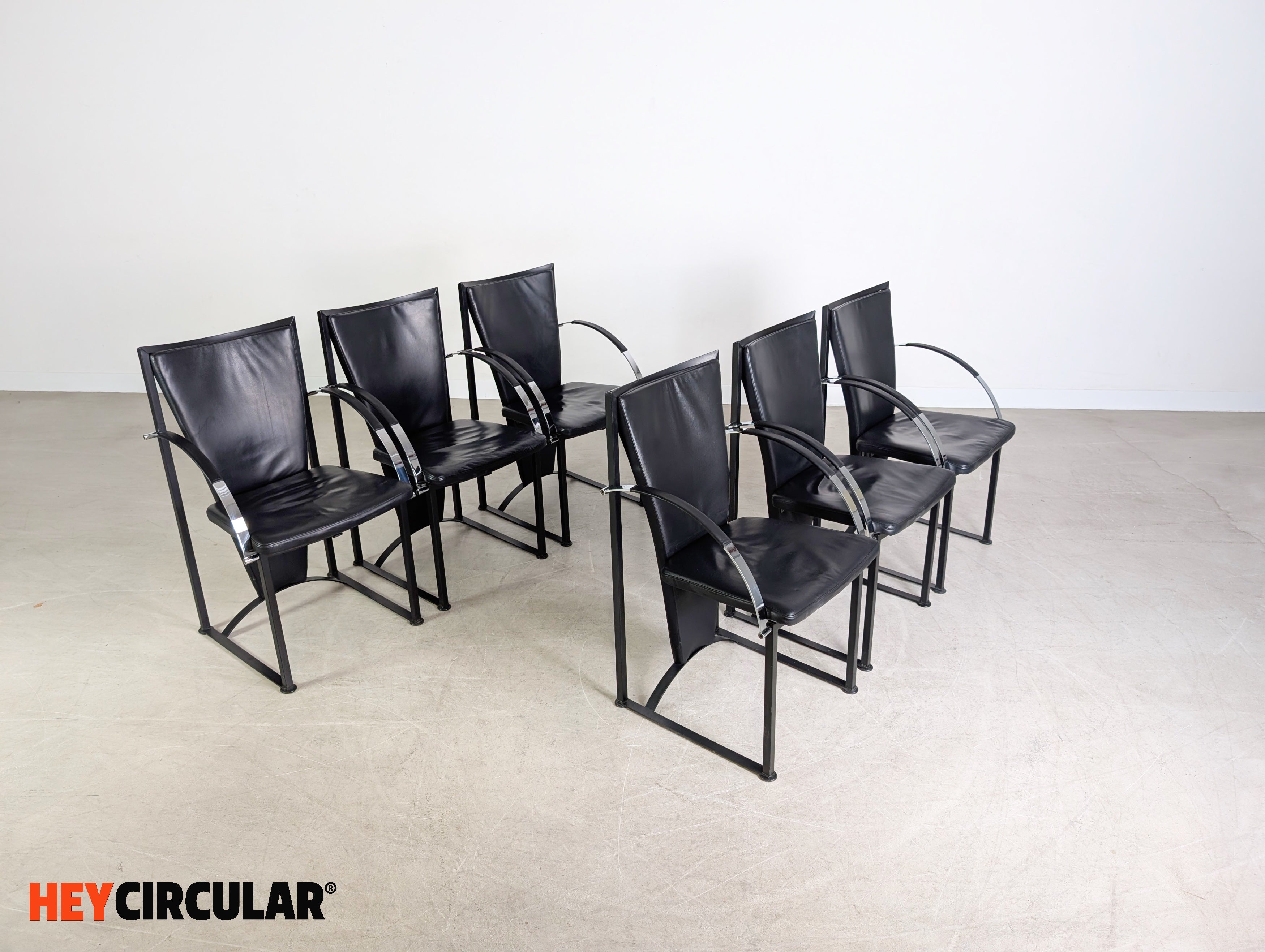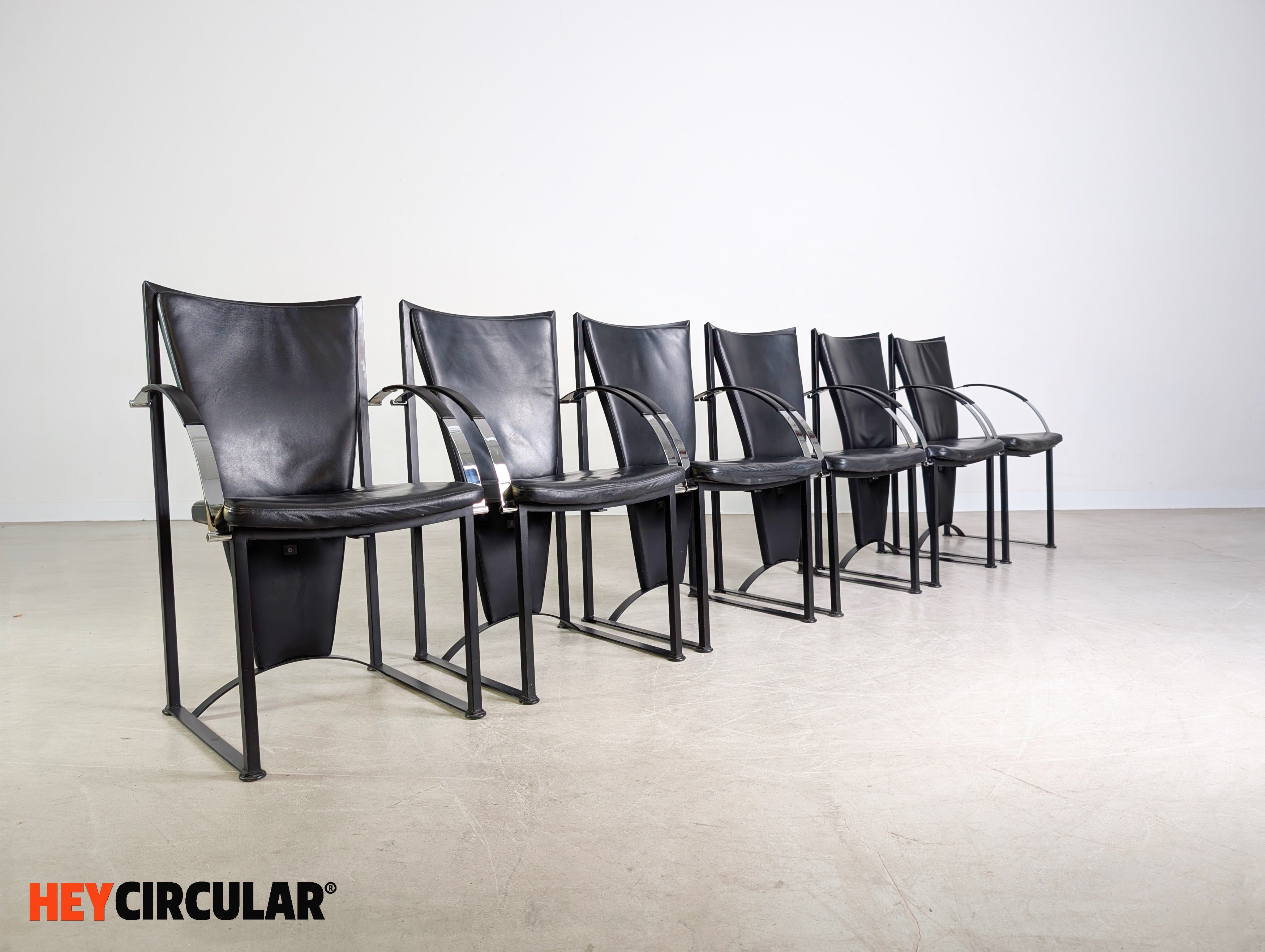 6er Set Original Ronald Schmitt Stühle Leder Design Stuhl schwarz