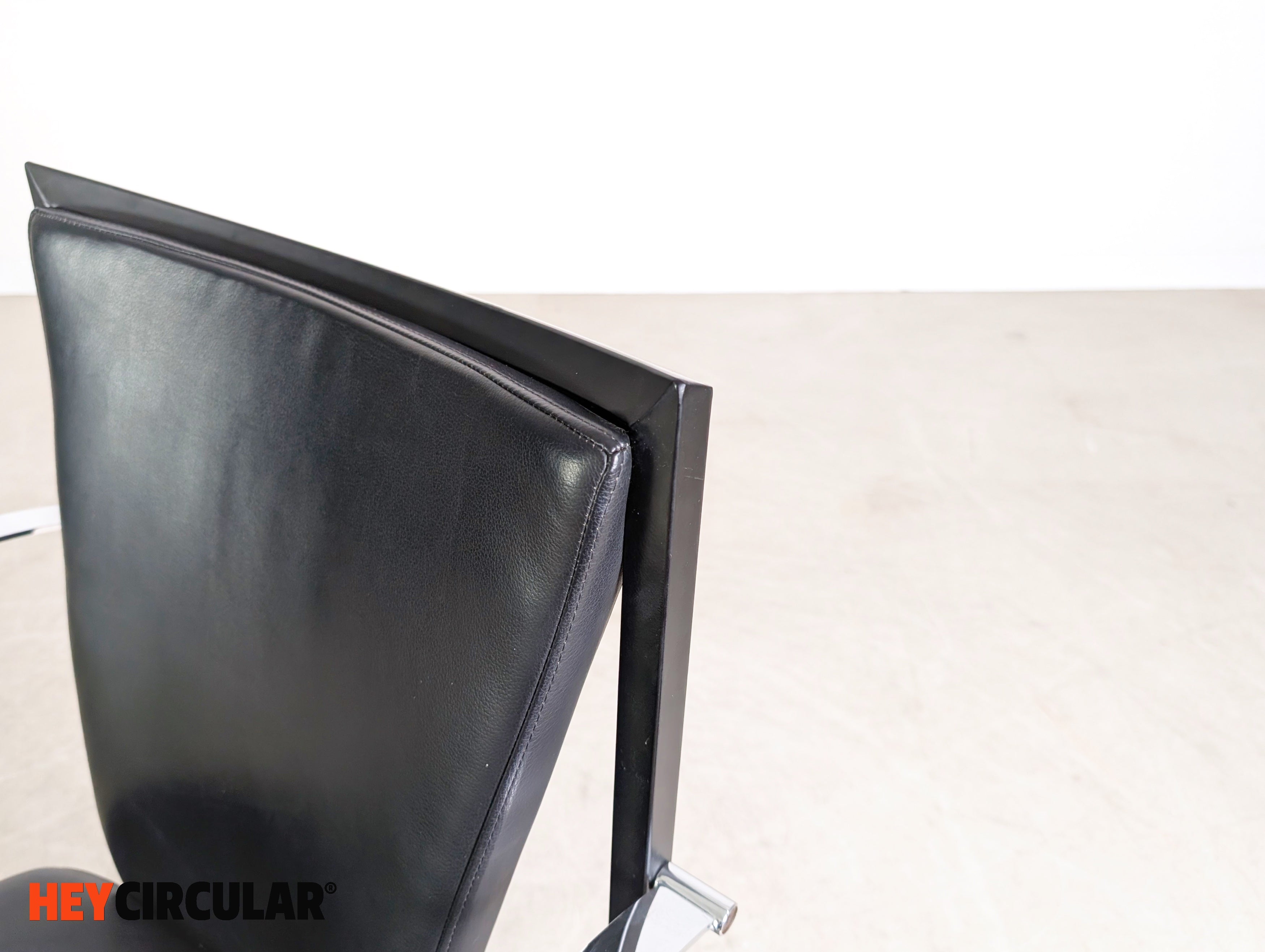 Wir bieten ein wunderschönes 6er Set hochwertiger Roland Schmitt Esszimmerstühle zum Verkauf an. Die in der Nähe von Heidelberg gefertigten und mit schwarzem Leder bezogenen Stühle zeichnen sich vor allem durch ihre besonders hohe Qualität und Robustheit aus.