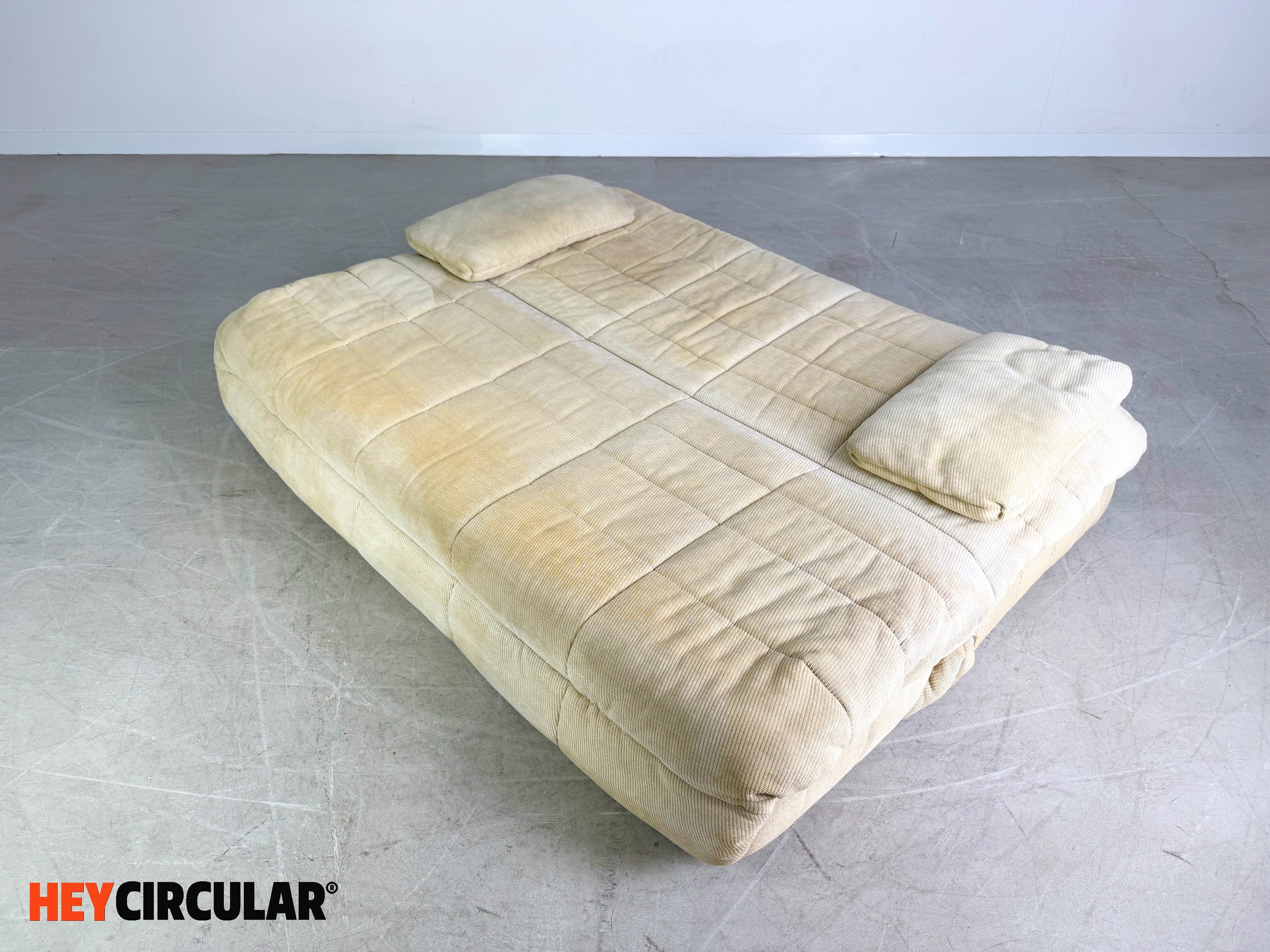 Wir bieten ein cooles ausklappbares Zweisitzer Schlafsofa von Ligne Roset / Cinna zum Verkauf an. Das Modell heißt "GAO", wurde von Jean Paul Laloy entworfen und lässt sich mit einem einfachen Handgriff in eine große Liegefläche/ Doppelbett verwandeln.