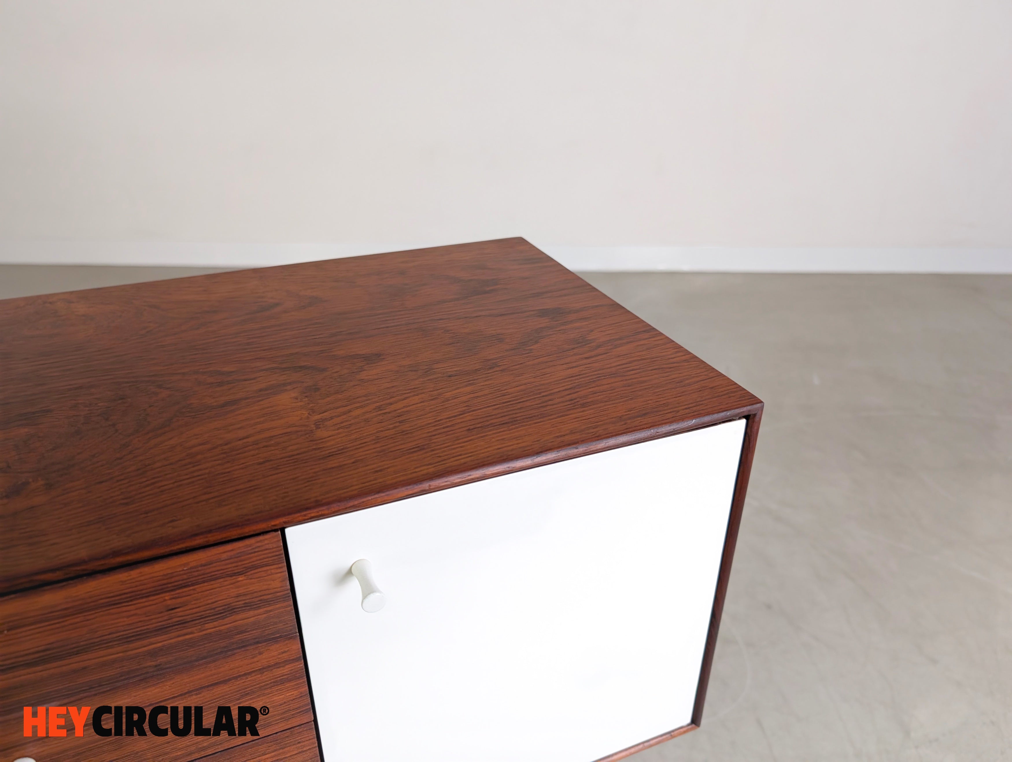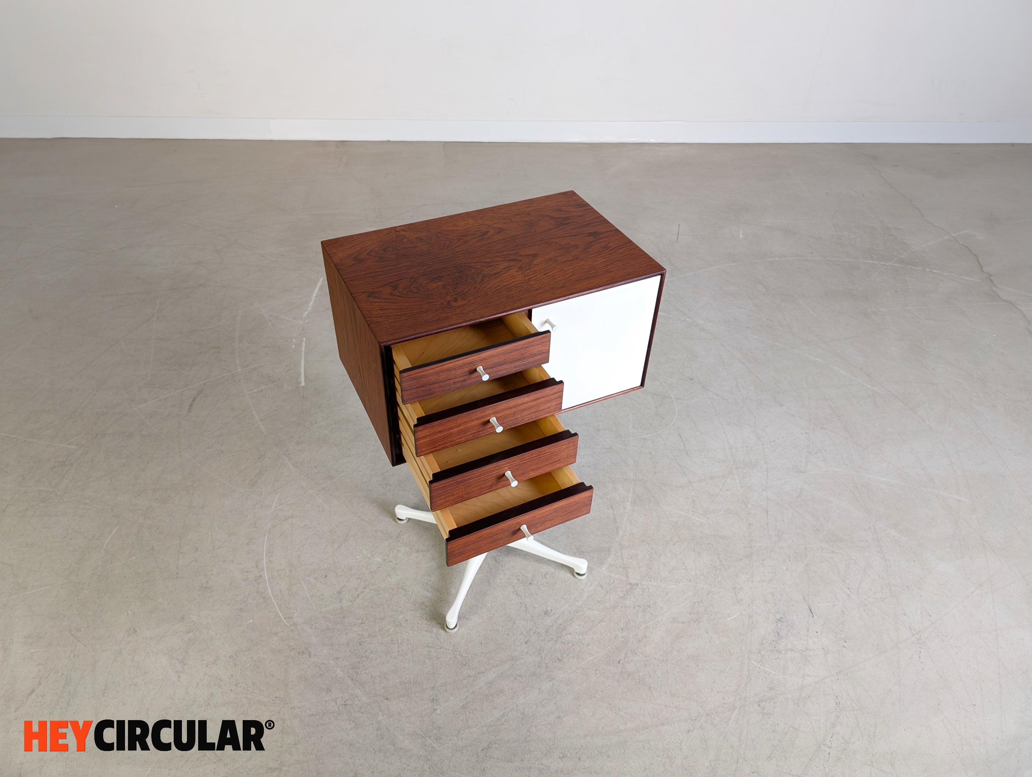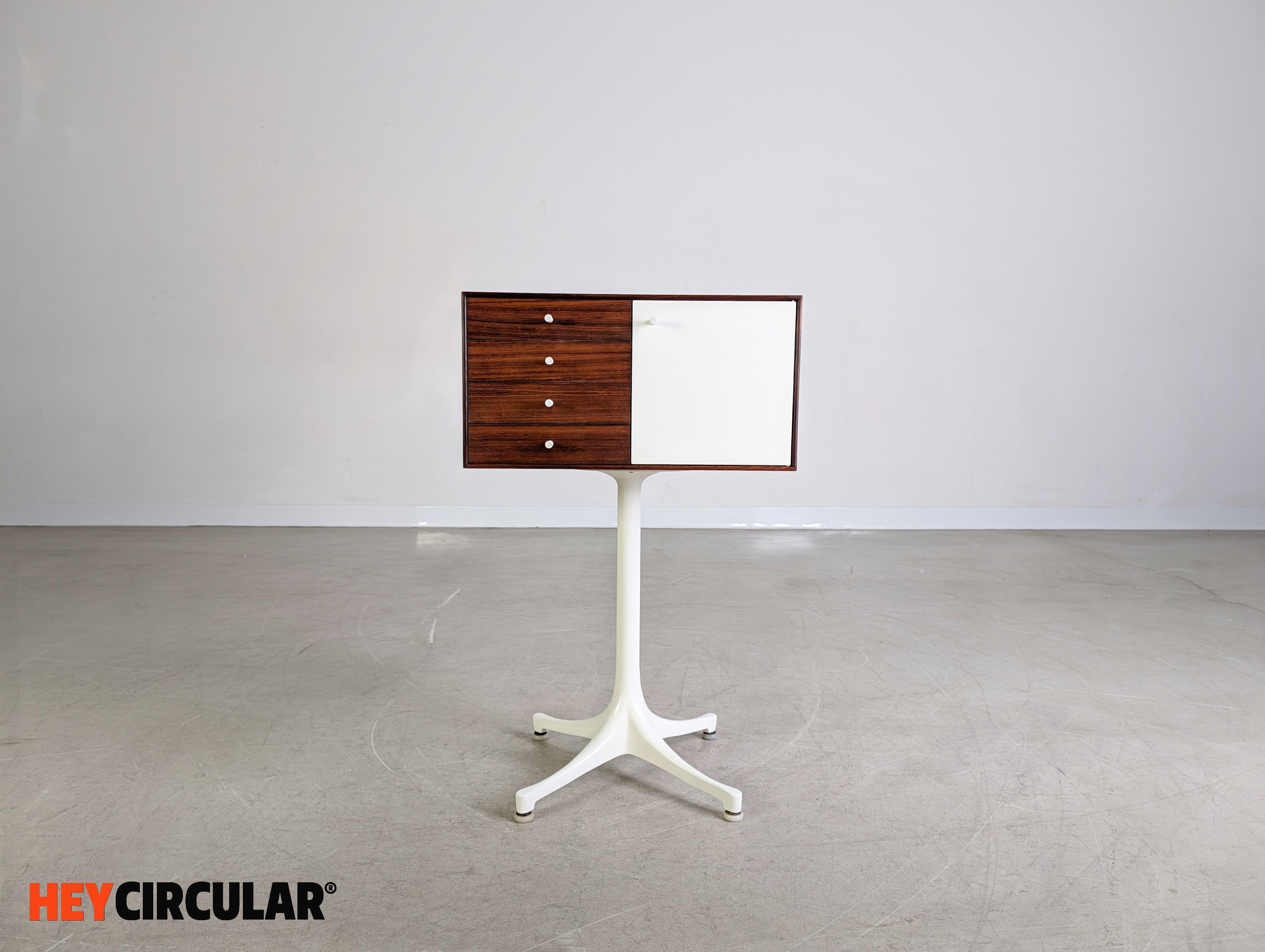Wir bieten eine wunderschöne und äußerst seltene Schmuckkommode von Herman Miller Collection aus dem Jahr 1966 zum Verkauf an. Der Entwurf stammt von George Nelson und ist bekannt unter der Modellnummer 5211. Das Möbel wurde professionell vollrestauriert, das Gestell und die Tür neu lackiert.
