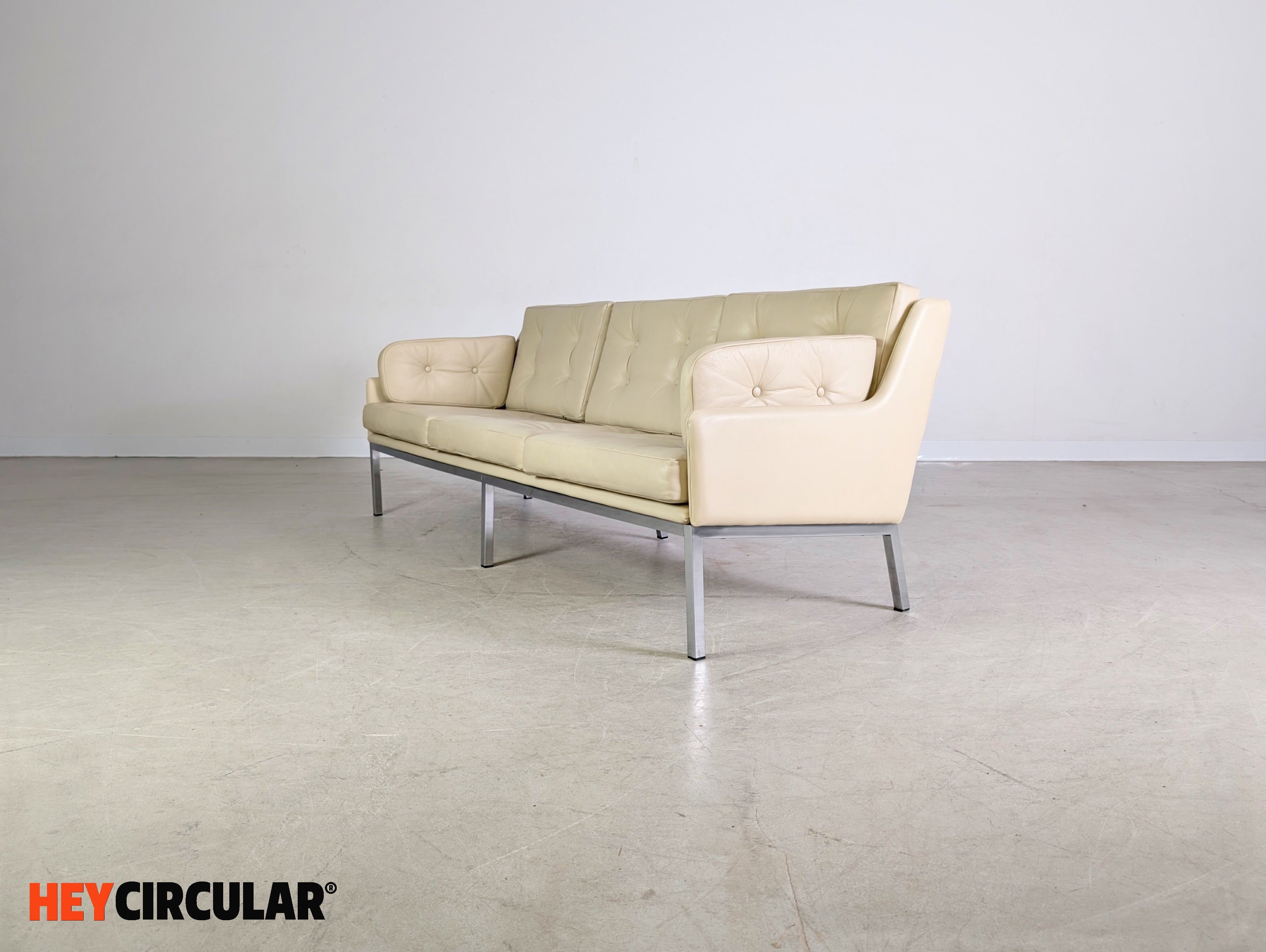 Wir bieten ein wunderschönes Vintage Dreisitzer Sofa von WK Wohnen Wien zum Verkauf an. Der Entwurf stammt von Roland Rainer und gilt als wahrer Bauhaus Klassiker.