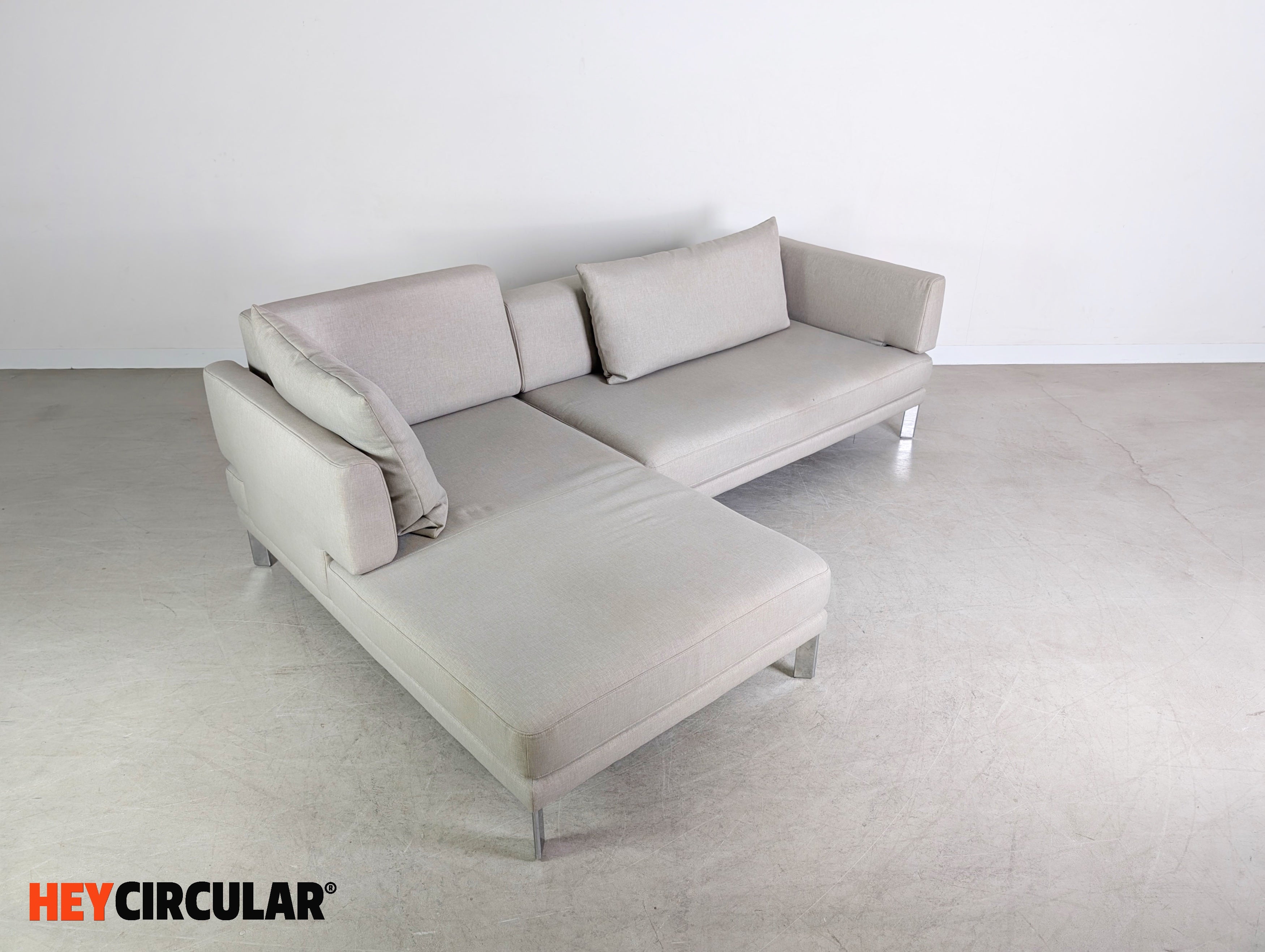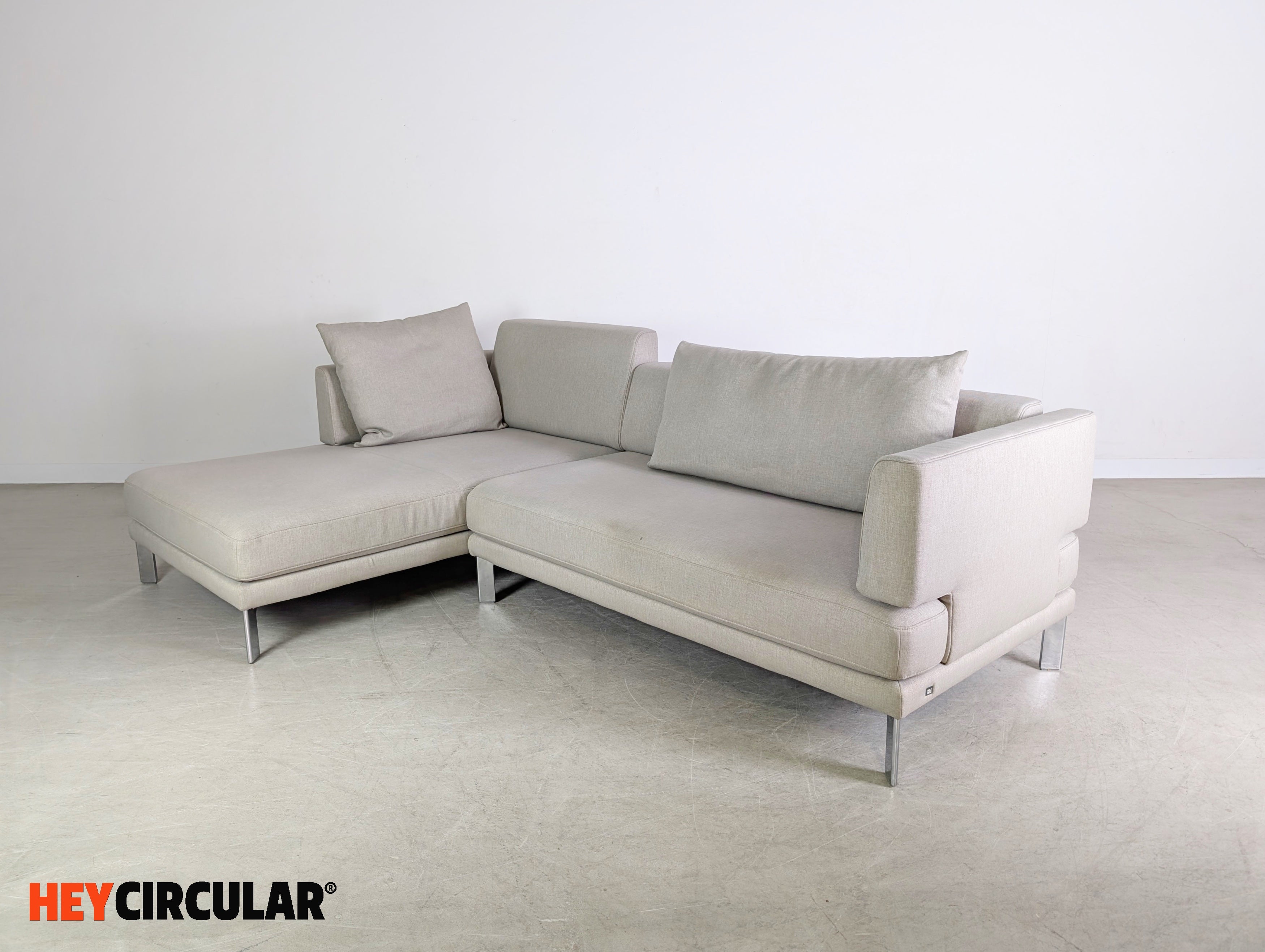 Wir bieten ein wunderschönes Design Ecksofa vom deutschen Premiumhersteller Rolf Benz zum Verkauf an. Das Möbel verfügt teilweise über verstelllbare Rückenlehnen und besticht durch seine erstklassige Verarbeitung hochwertigster Materialien. Der Neupreis des Sofas beträgt rund 5.000€.