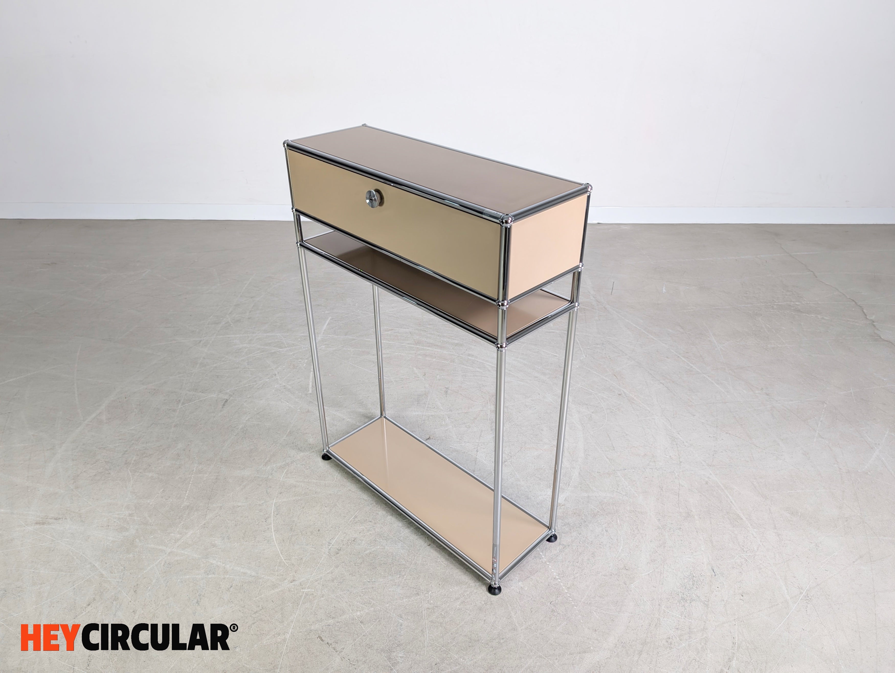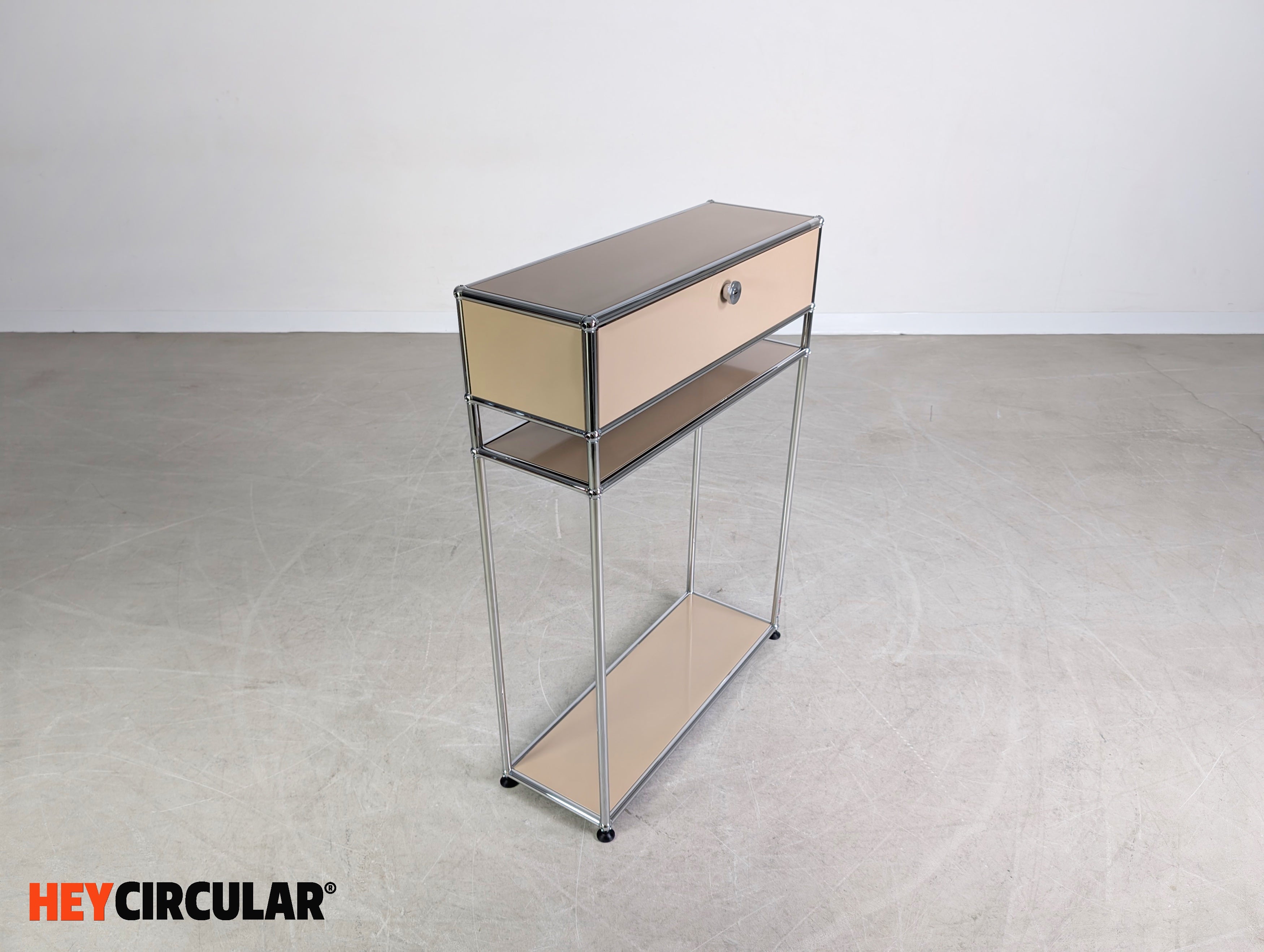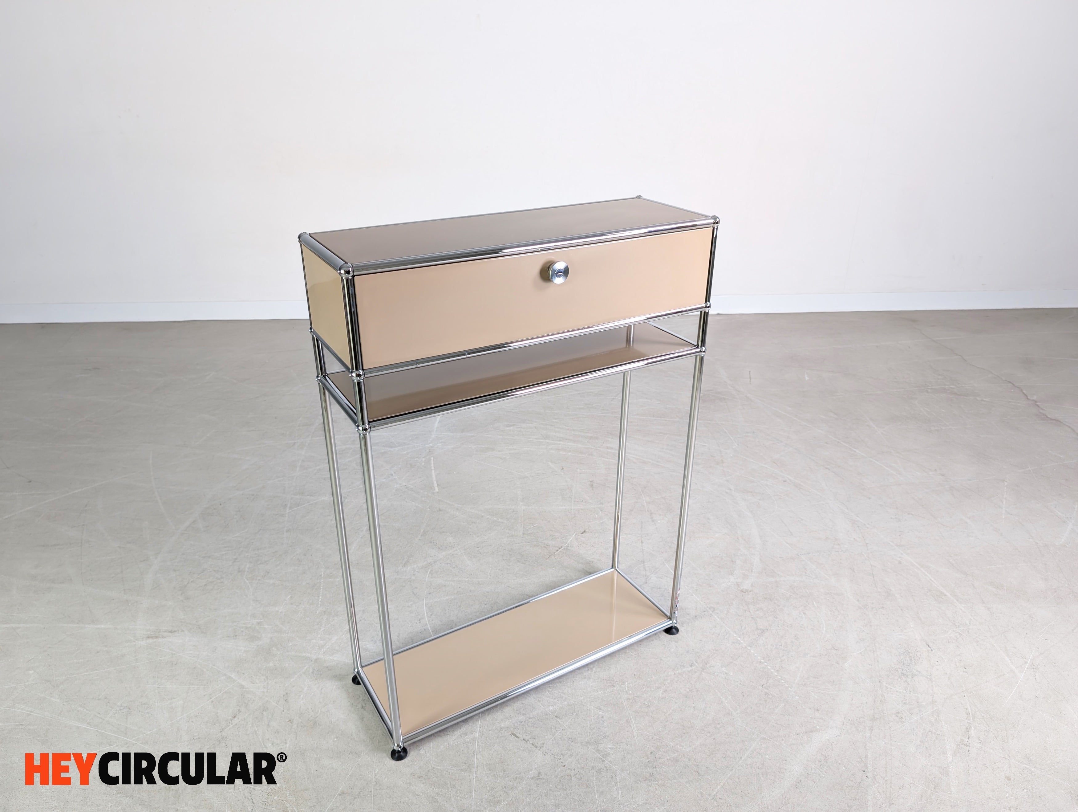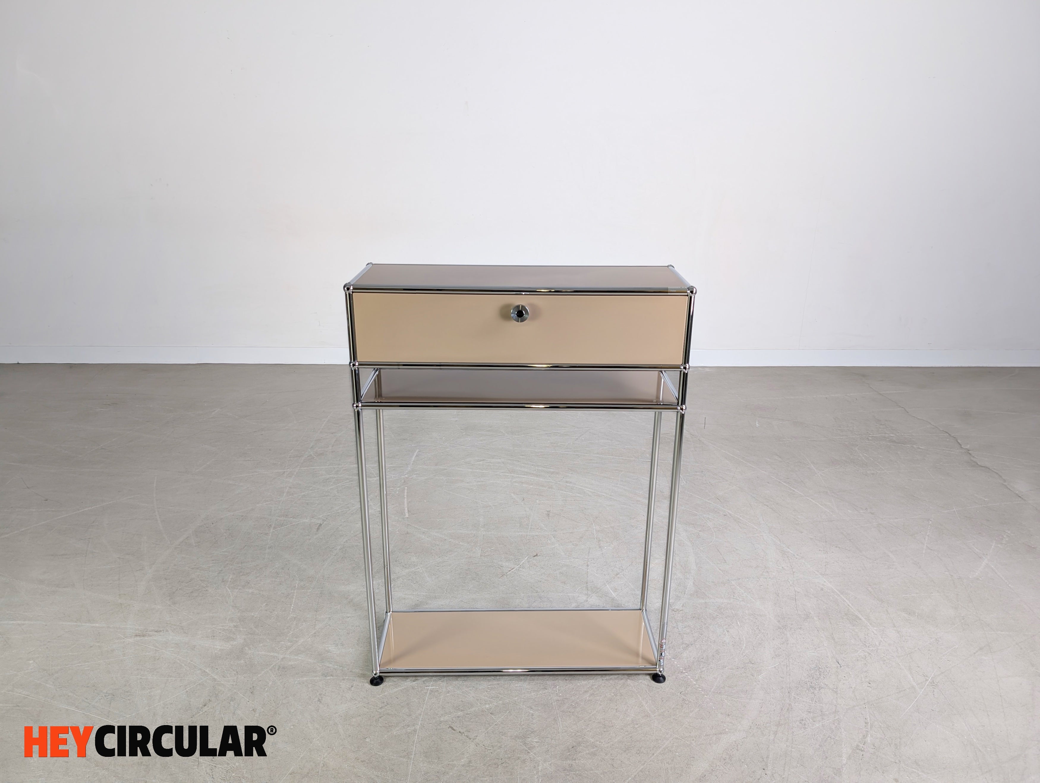 Wir bieten einen wunderschönen USM Haller Nacht-/ Beistelltisch mit Schublade und geräumigen Ablagefach zum Verkauf an.
