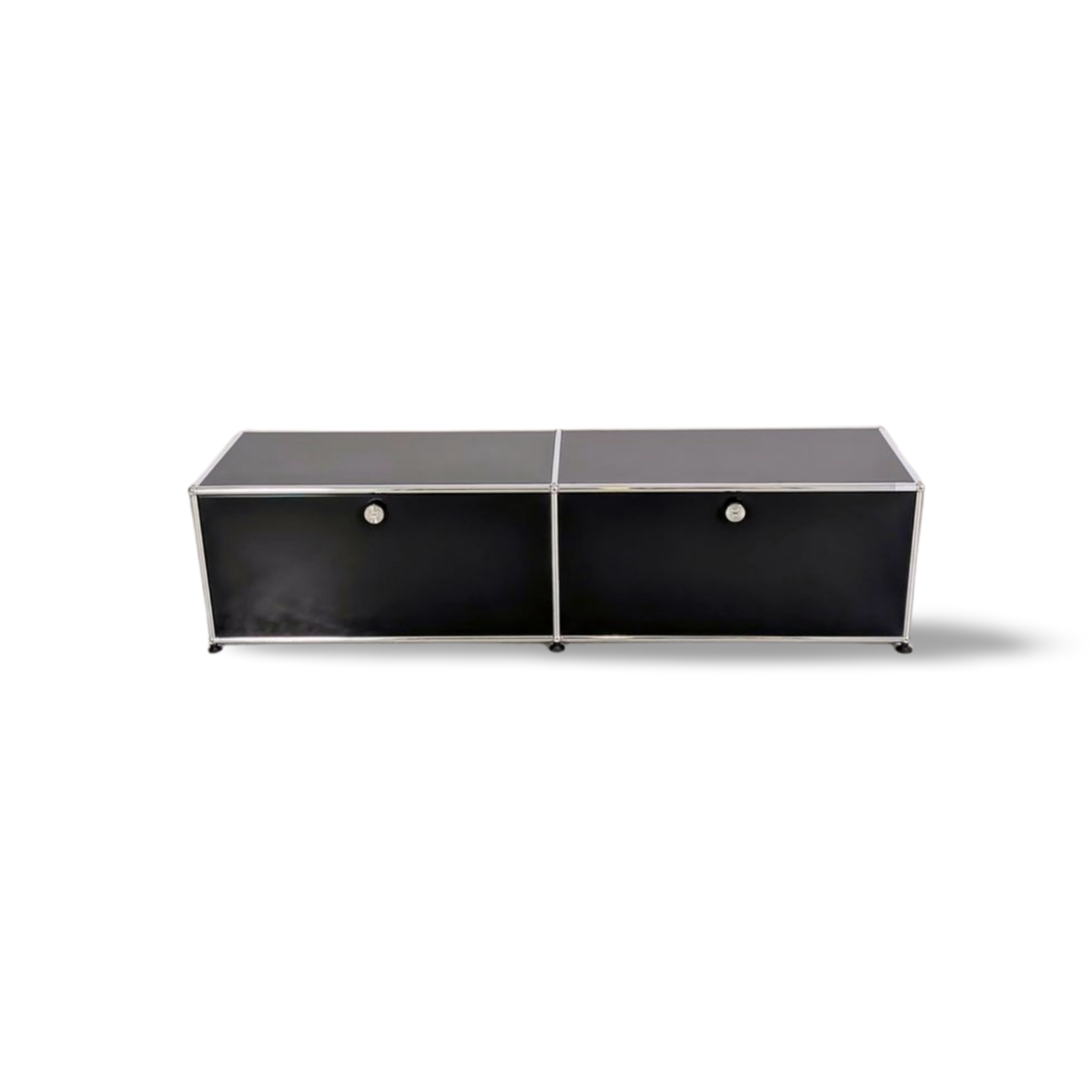 Wir bieten ein wunderschönes USM Haller Lowboard in der sehr begehrten Ausführung in schwarz zum Verkauf an. Das Board verfügt über zwei sich nach unten öffnende Klappen und kann ideal als TV-Board oder kleine Anrichte genutzt werden.