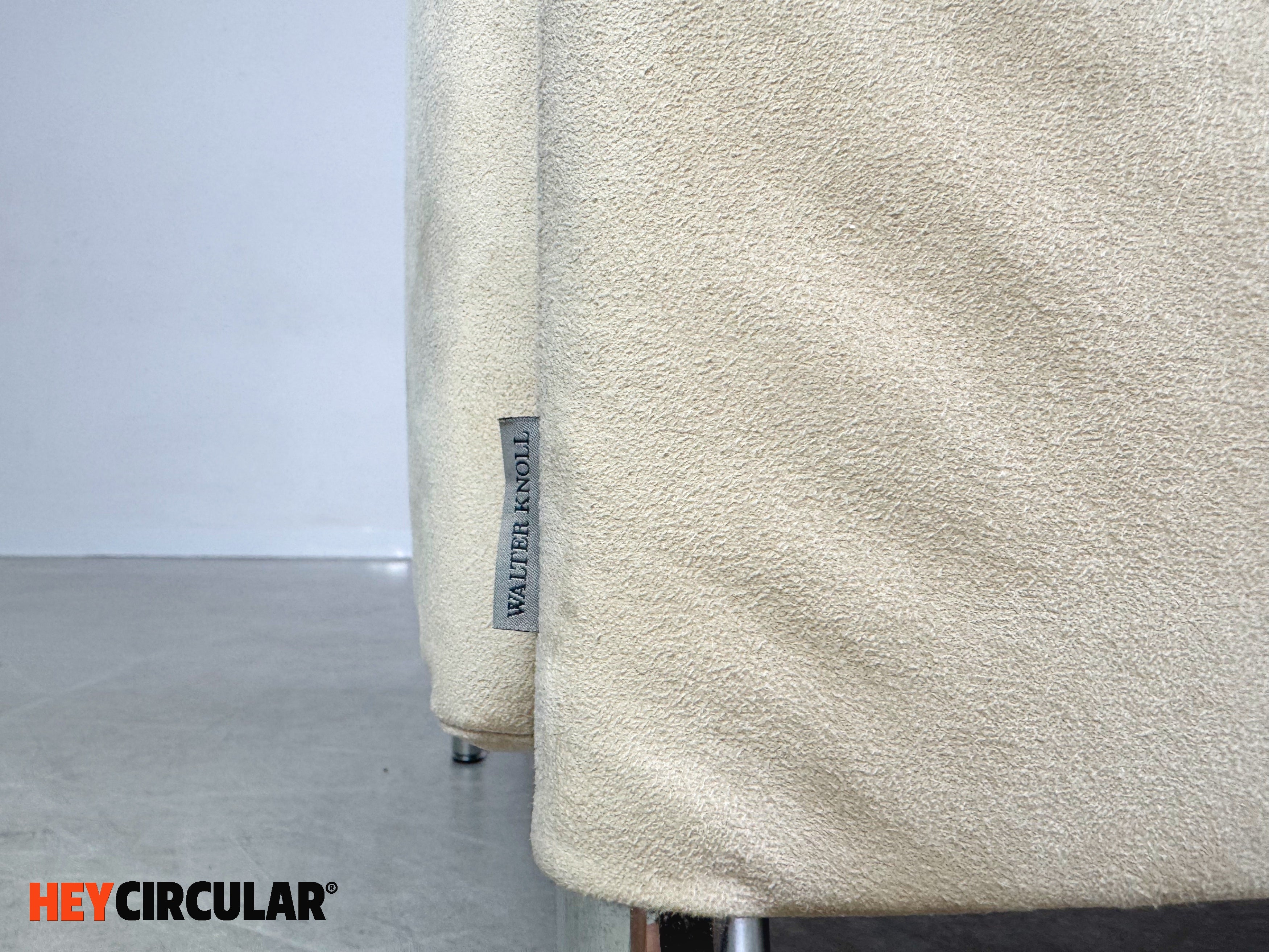 Wir bieten ein wunderschönes Zwei- bis Dreisitzer Sofa vom deutschen Qualitätshersteller Walter Knoll zum Verkauf an. Das Sofa, das den Modellnamen "Jason 391" trägt, ist mit hochwertigem, beigen Wildleder bezogen und besticht durch seinen hohen Sitzkomfort und seine zeitlose Formgebung.