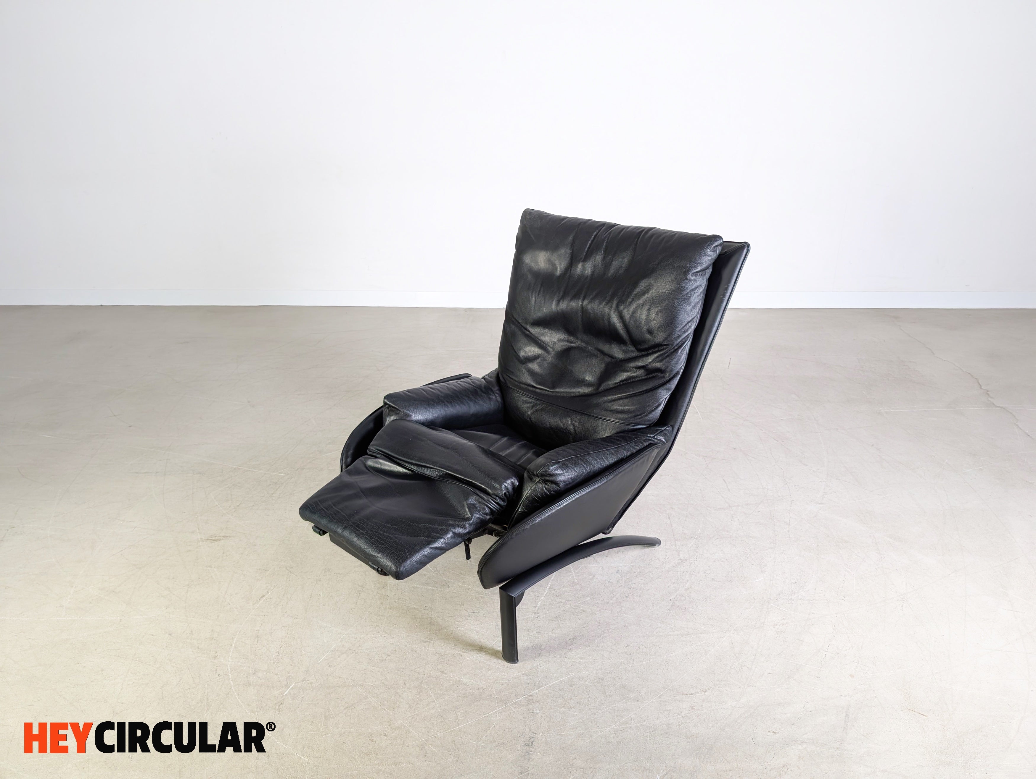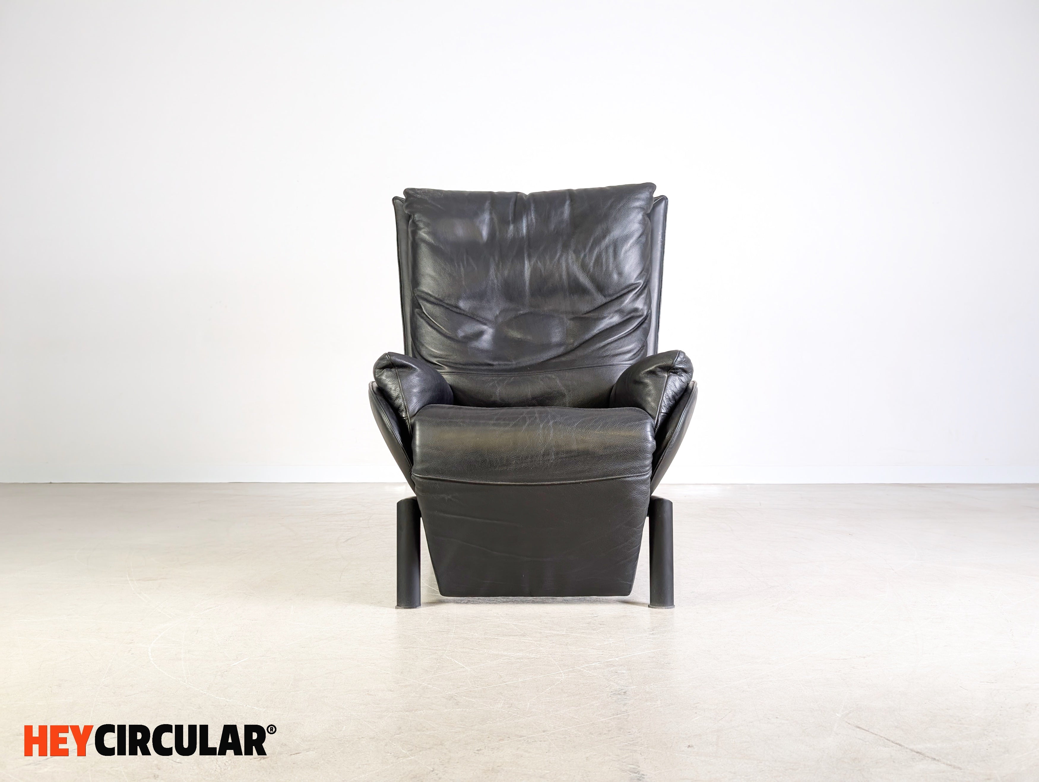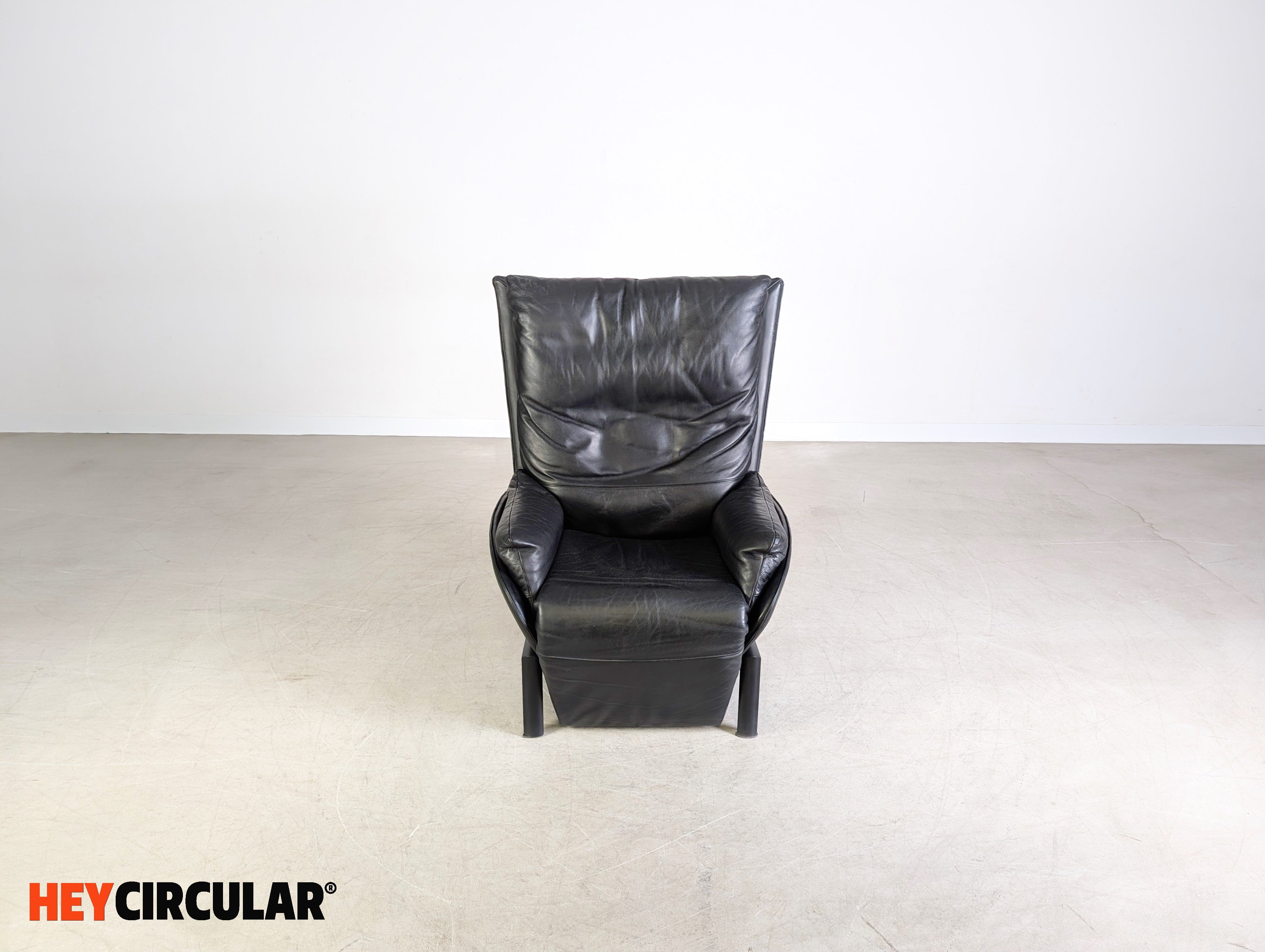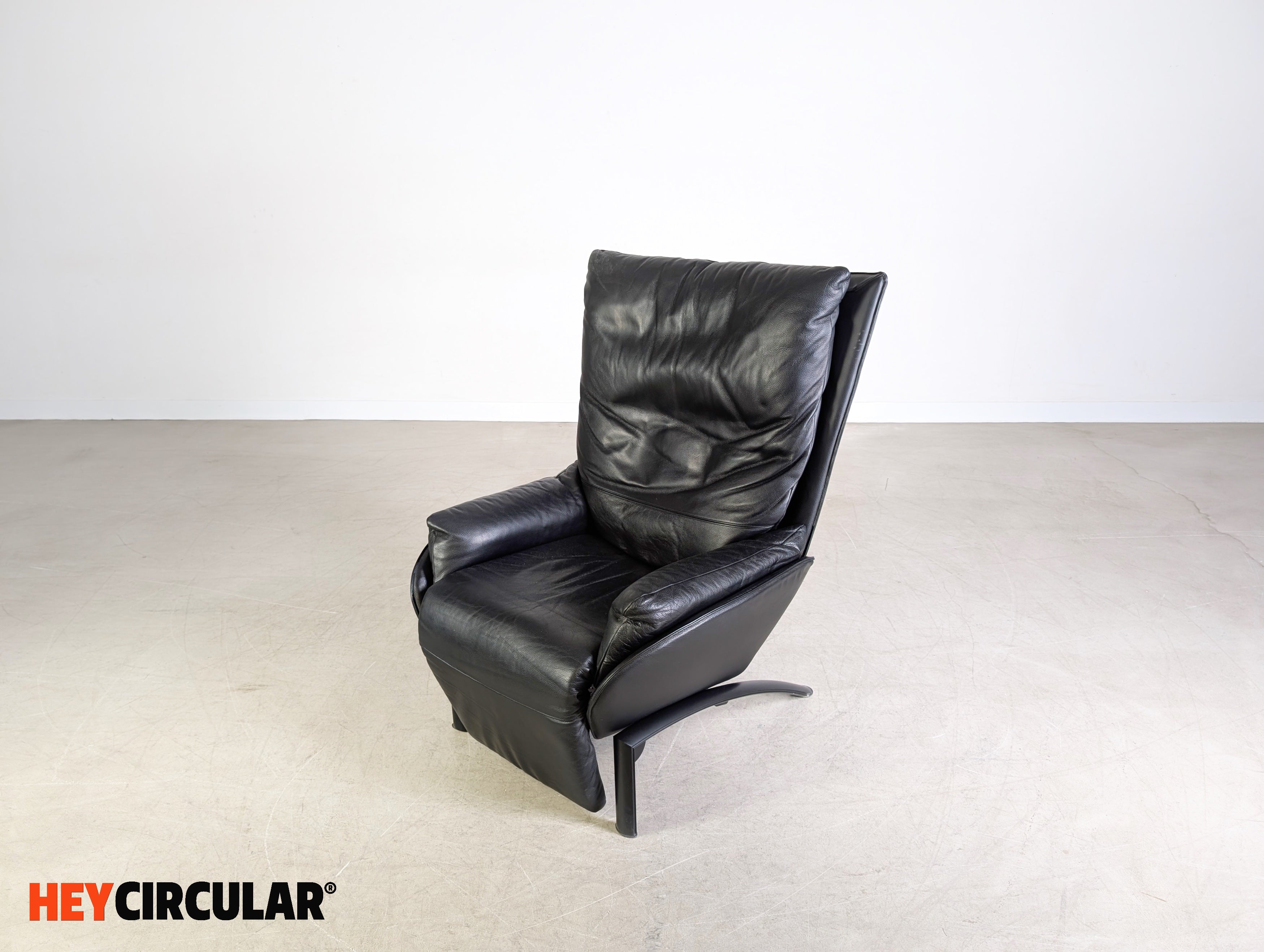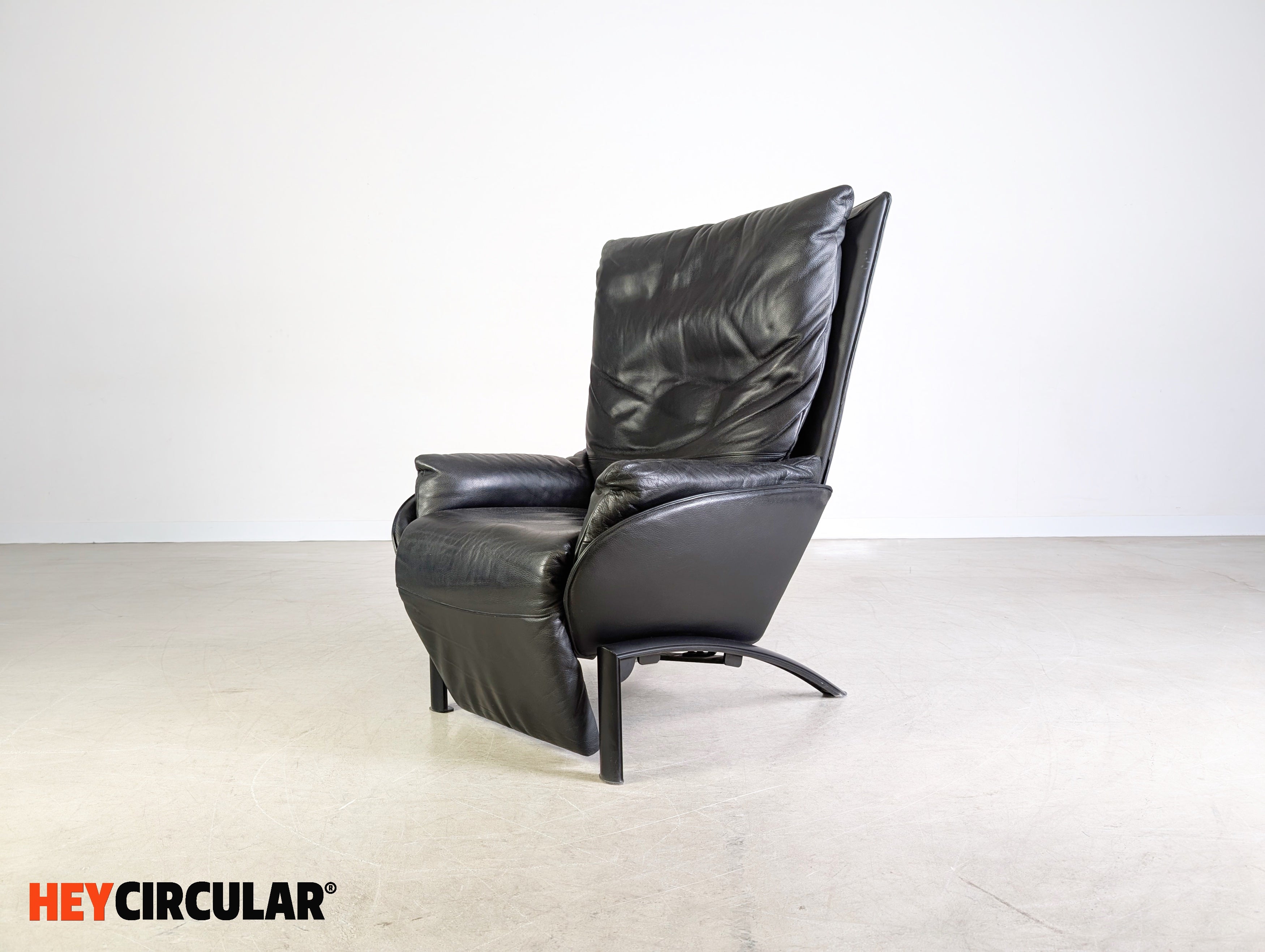Original WK Wohnen Sessel Design Armlehnstuhl Leder schwarz