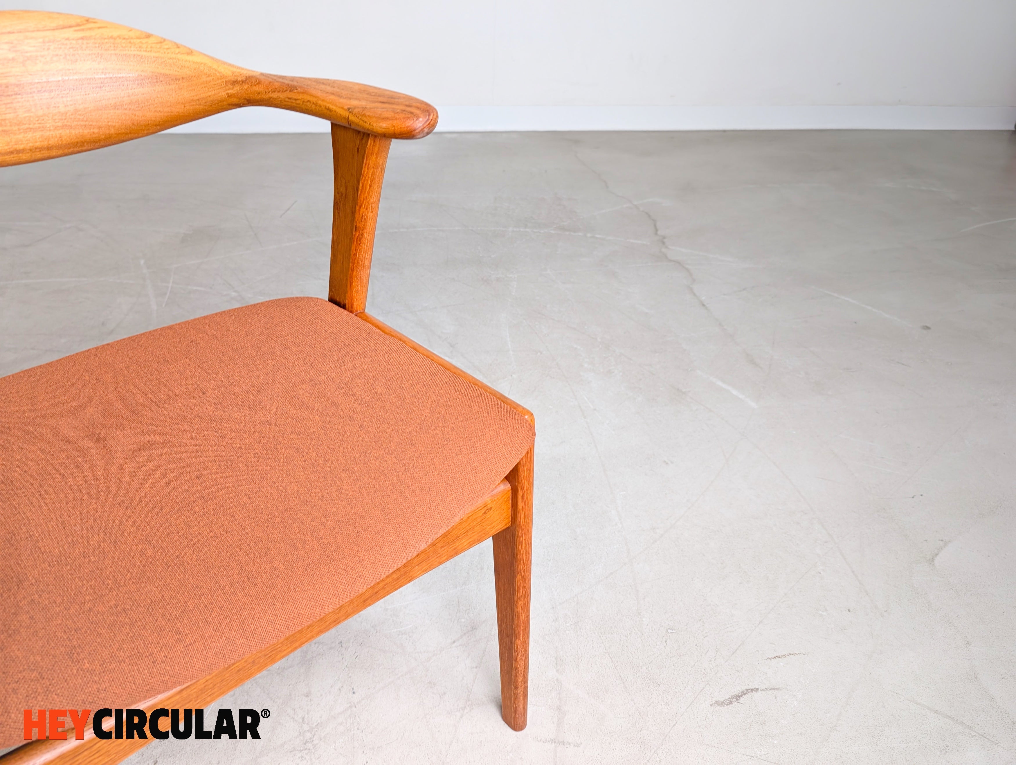 Wir bieten ein wunderschönes 6er Set Teakholzstühle vom dänischen Hersteller Høng Stolefabrik zum Verkauf an. Der Entwurf stammt von Erik Kirkegaard und ist bekannt unter dem Modell 49b. Die Stühle wurden professionell aufgearbeitet und neu bezogen. Der Preis bezieht sich auf das 6er Set.