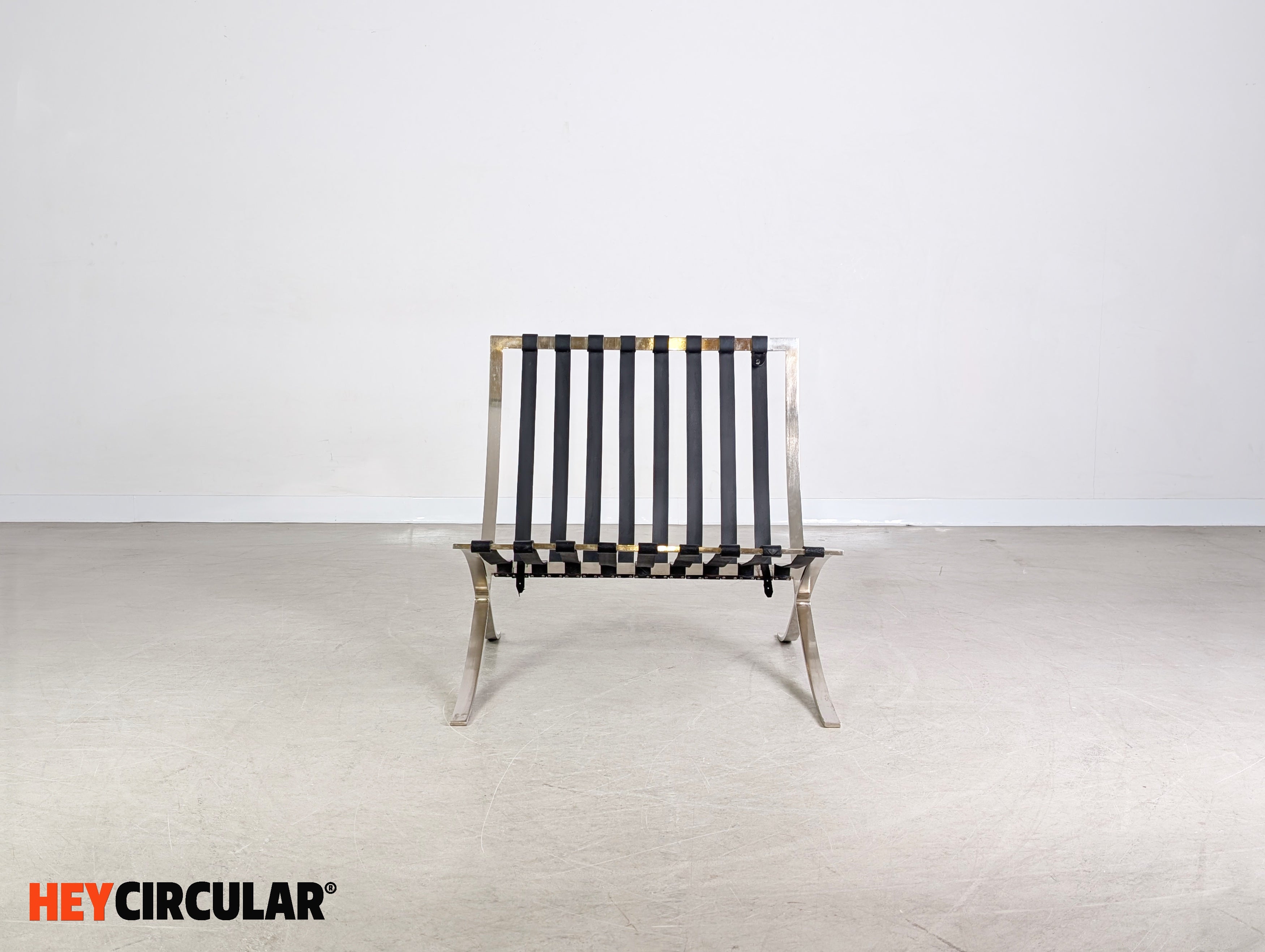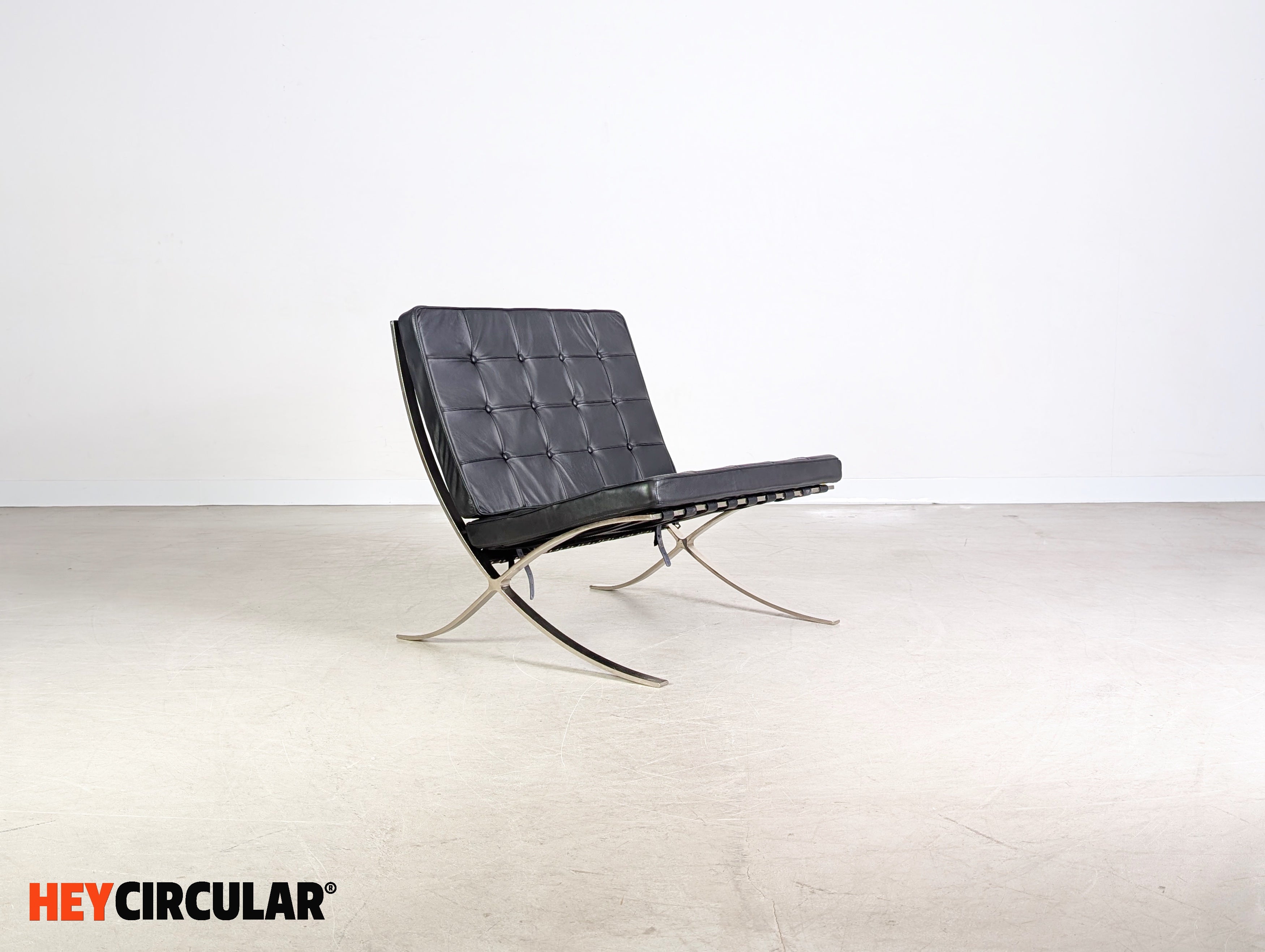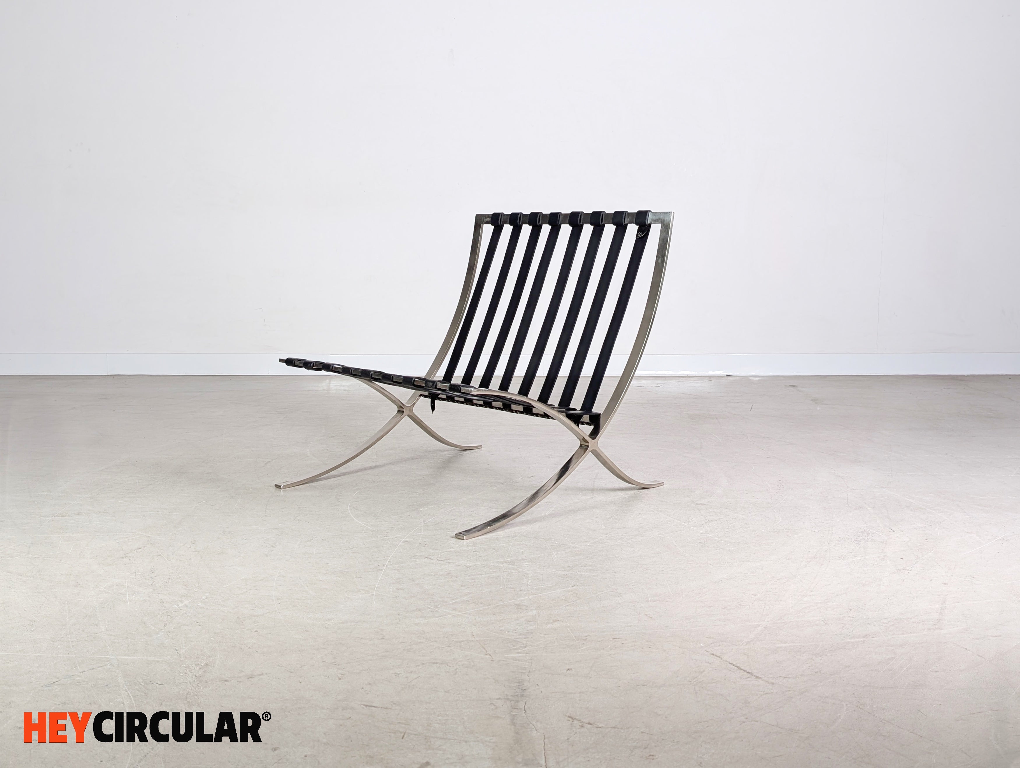 Wir bieten einen von insgesamt zwei wunderschönen Barcelona Sesseln von Knoll International aus den 1970er Jahren zum Verkauf an. Die Polsterung wurde im Jahr 2000 erneuert. Die Rahmen sind original. In unseren anderen Anzeigen befinden sich des Weiteren zwei passende Hocker mit ebenfalls erneuerter Polsterung. Der Preis bezieht sich auf einen Sessel. Bei der Abnahme mehrerer Produkte ist ein günstigerer Setpreis möglich.