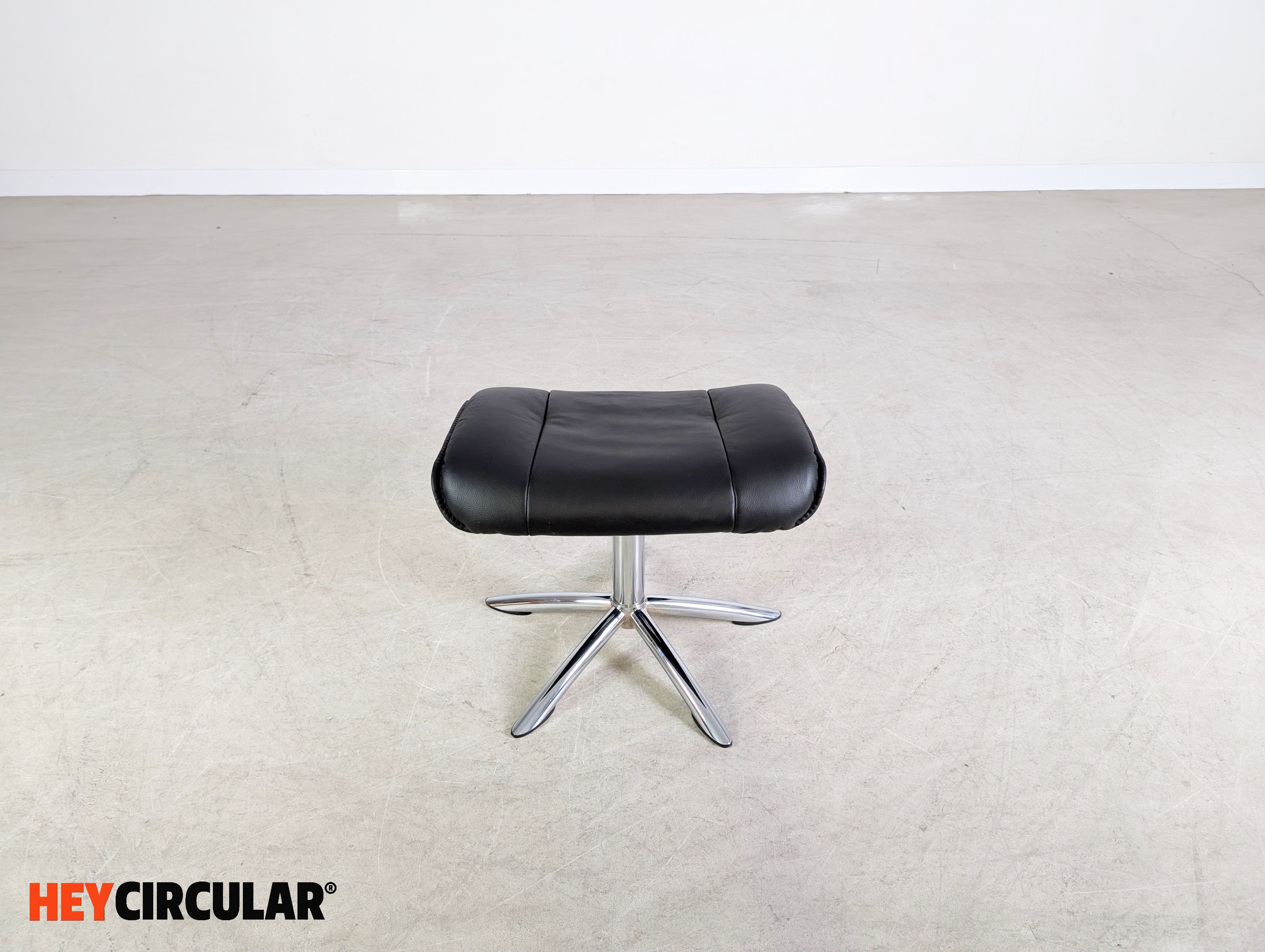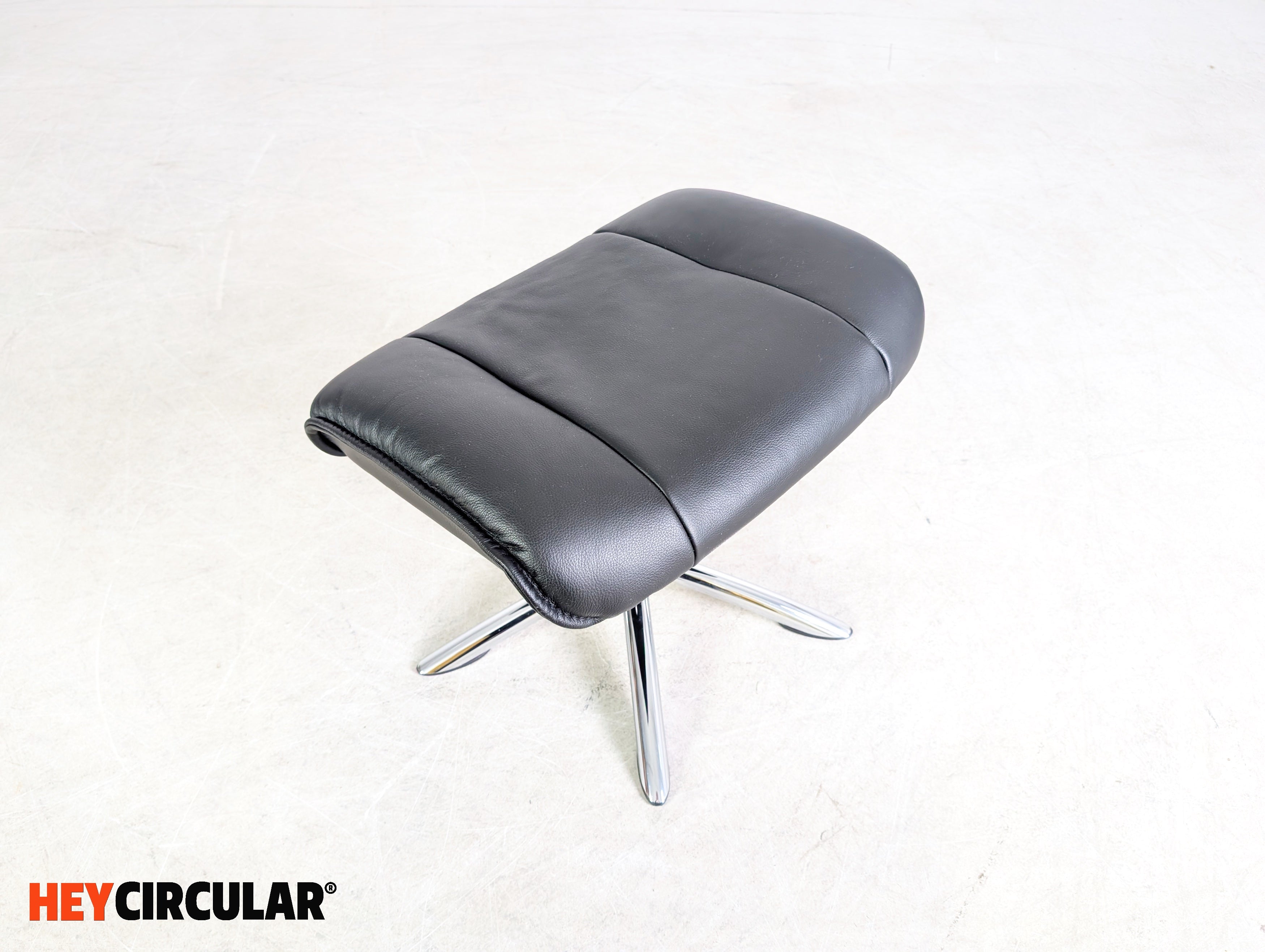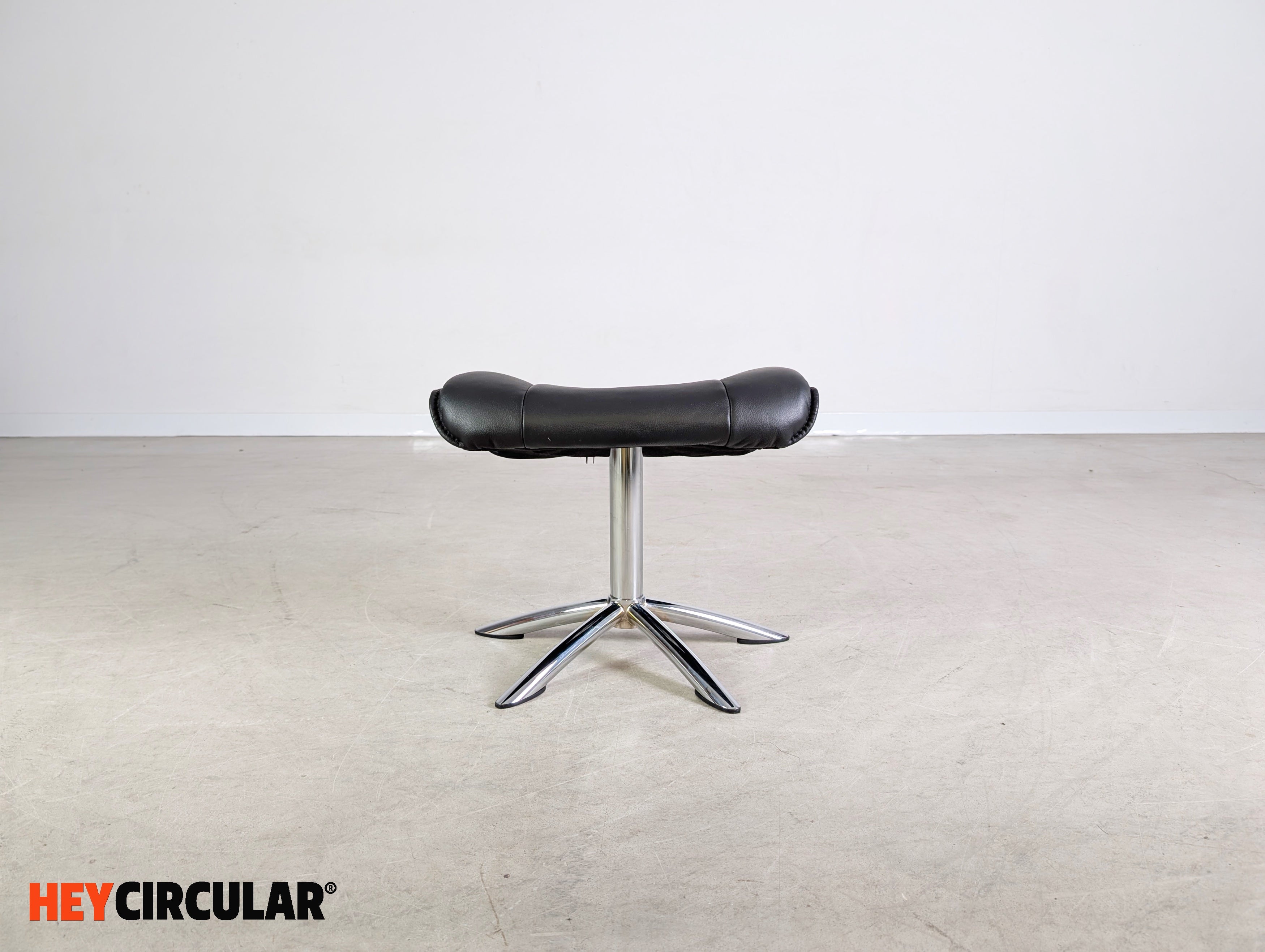 Wir bieten einen wunderschönen, drehbaren Fußhocker aus schwarzem Leder zum Verkauf an. Der Ottoman lässt sich ideal an eine bestehende Sitzgarnitur ergänzen oder auch unter dem Schreibtisch für eine bequeme Sitzposition nutzen.
