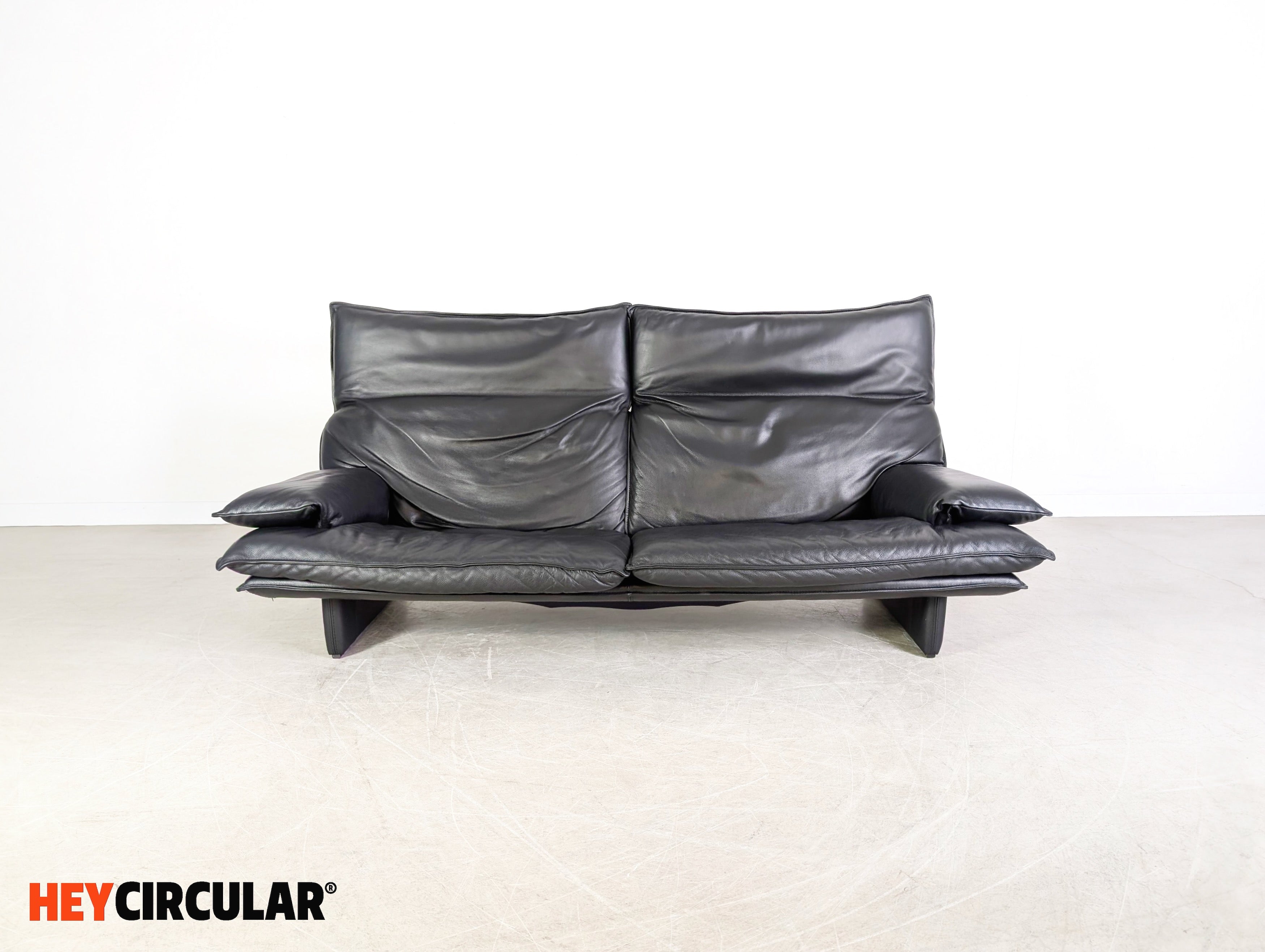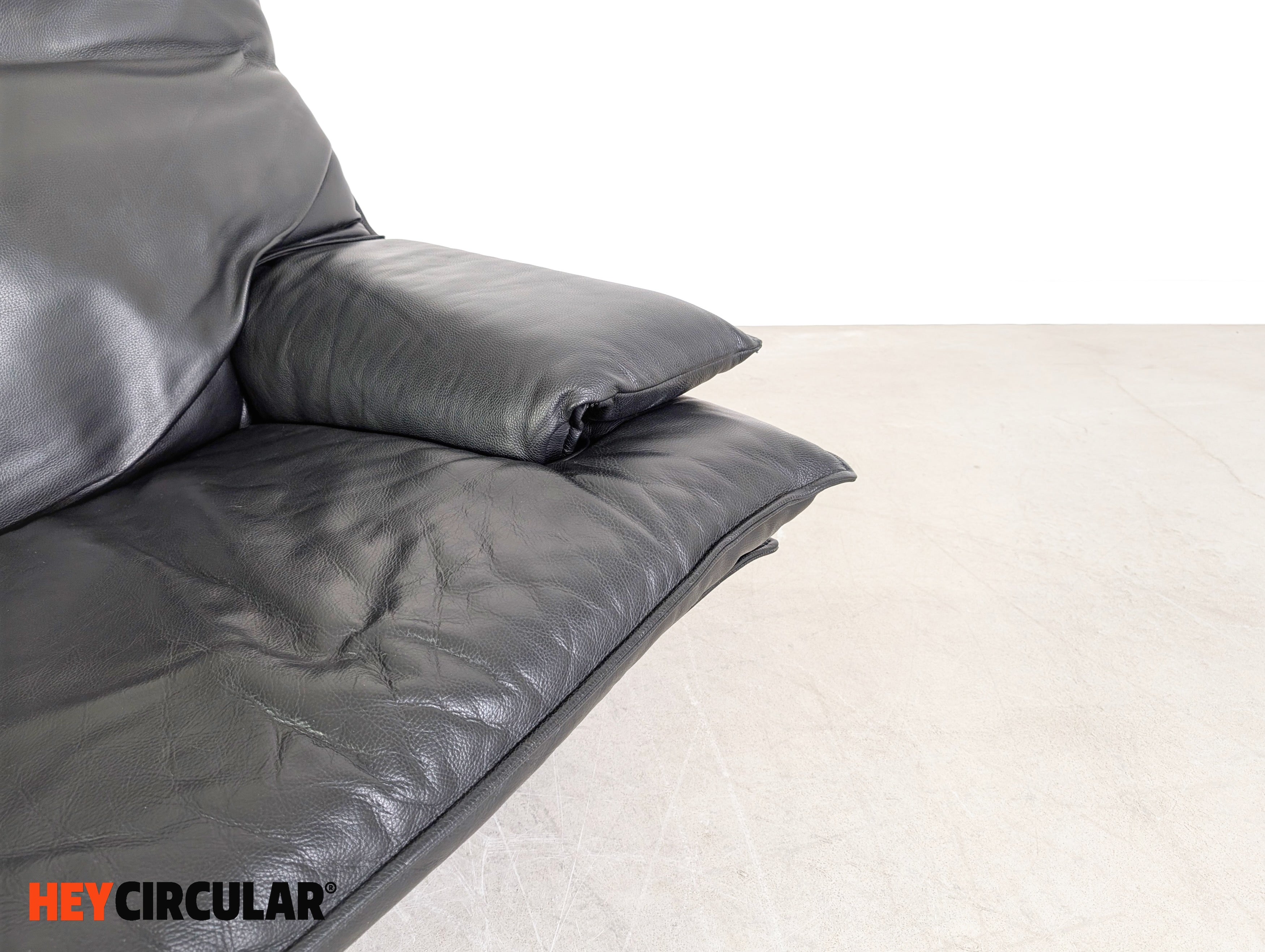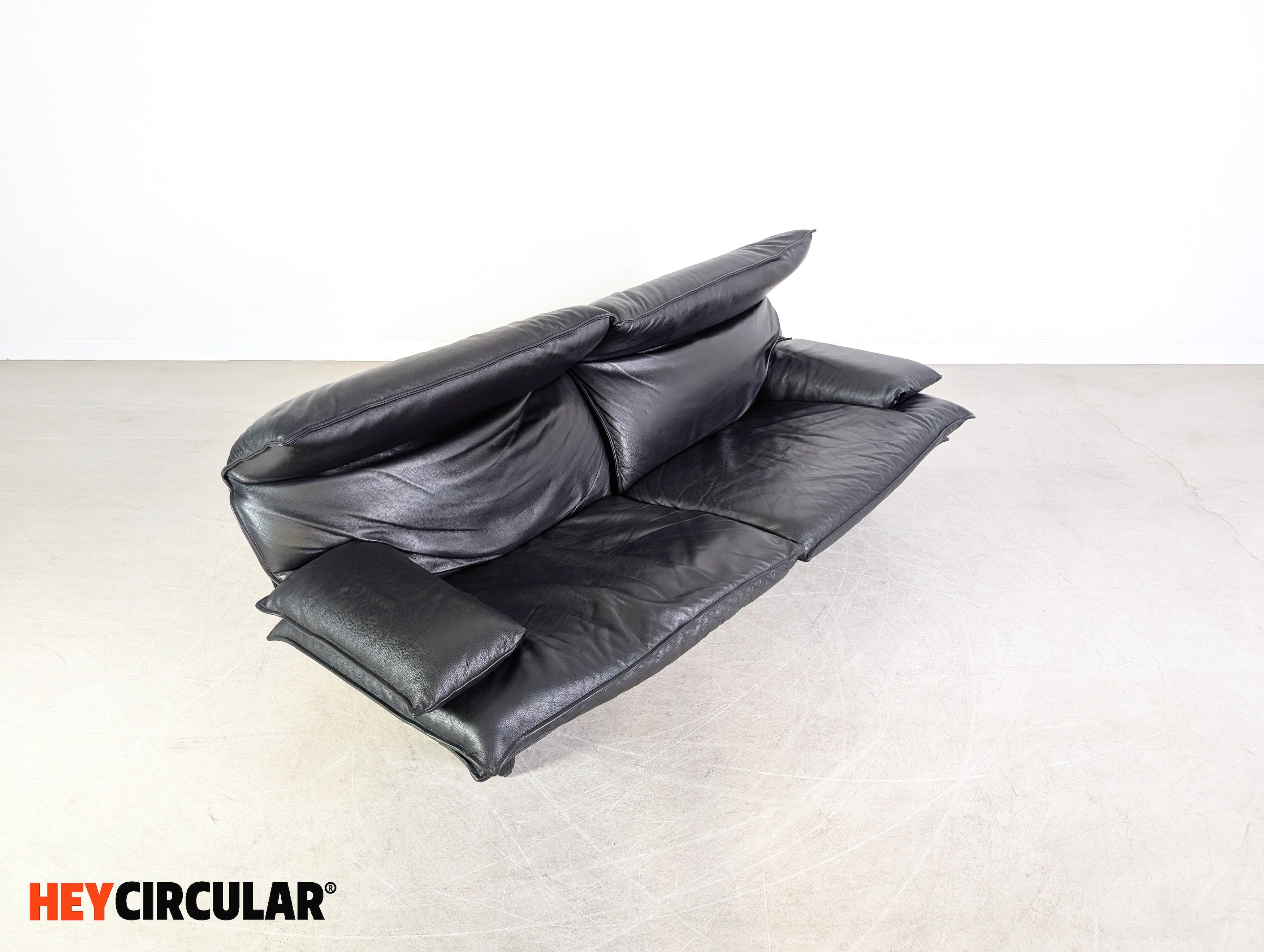 Vintage Sofa Italian 3-seater Design Couch Leder schwarz 1980