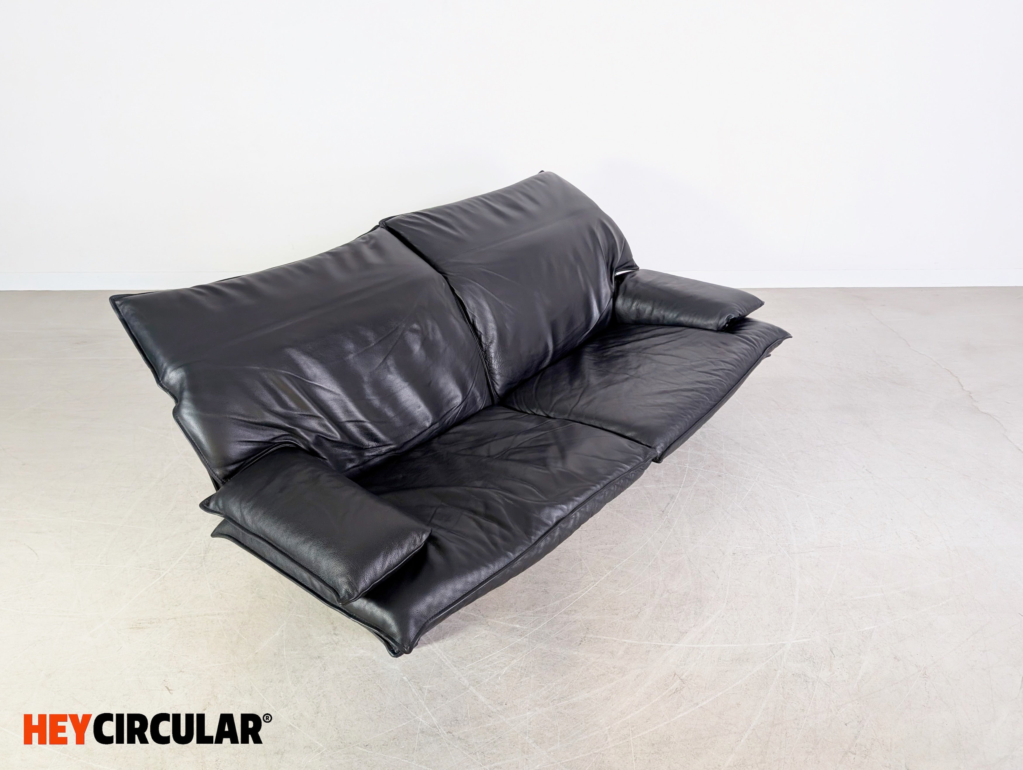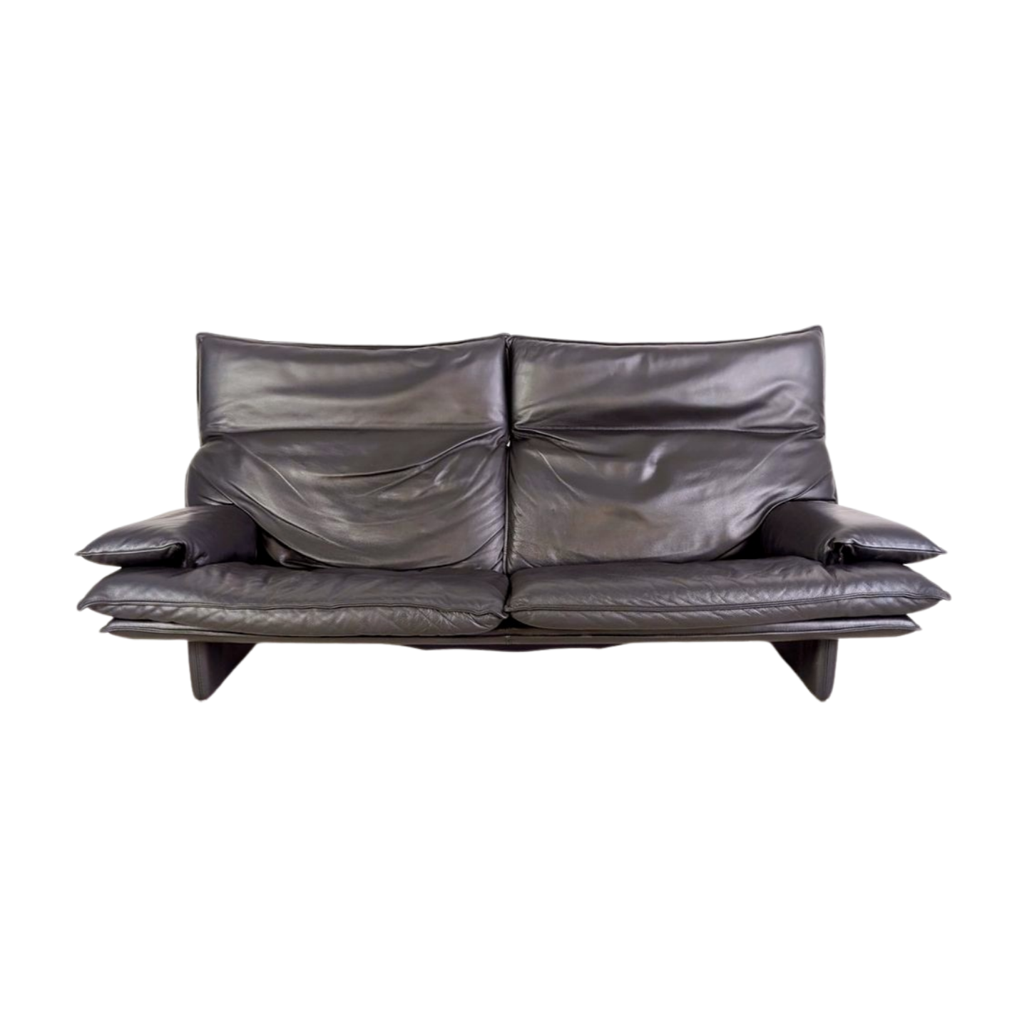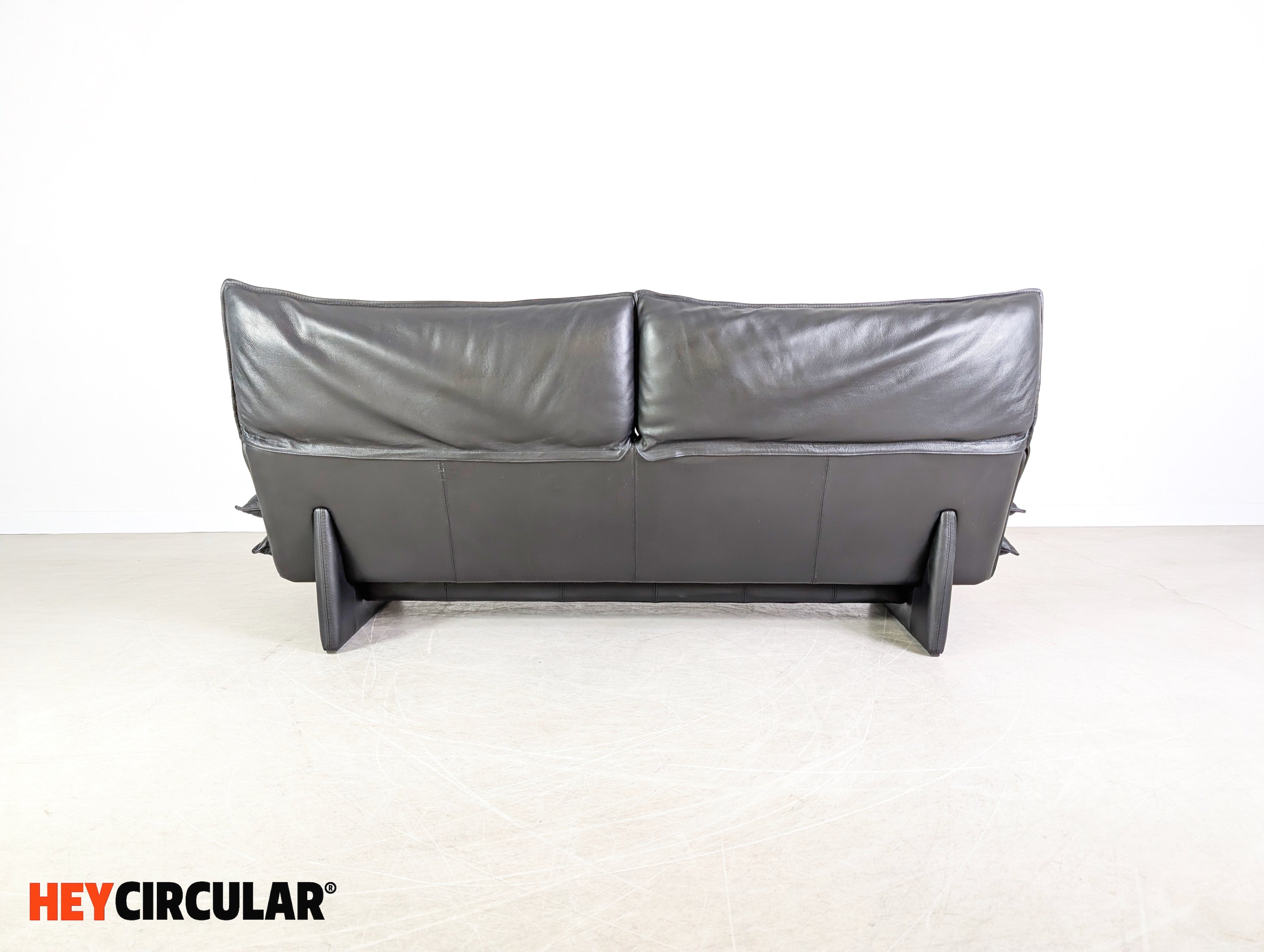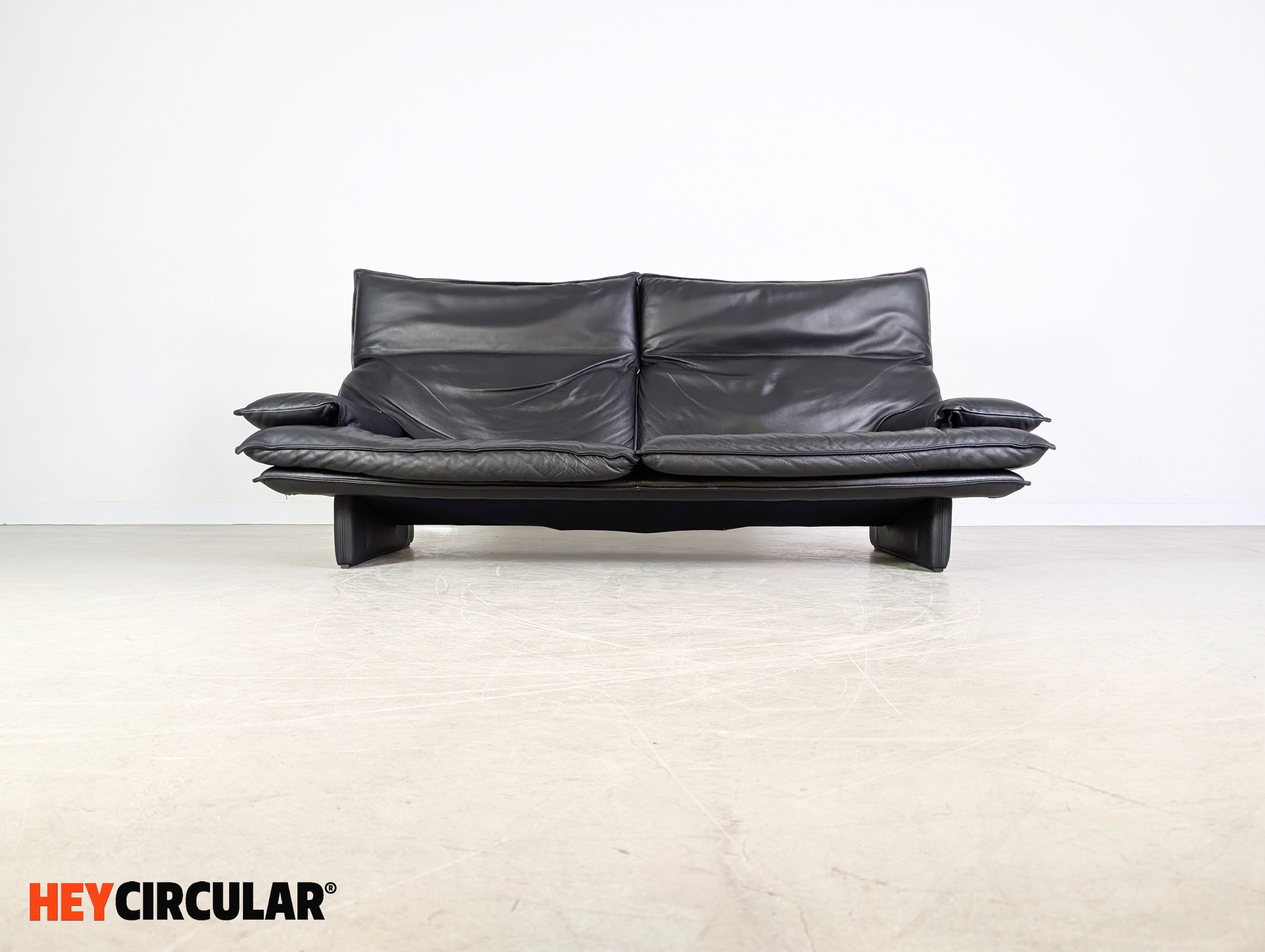 Vintage Sofa Italian 3-seater Design Couch Leder schwarz 1980