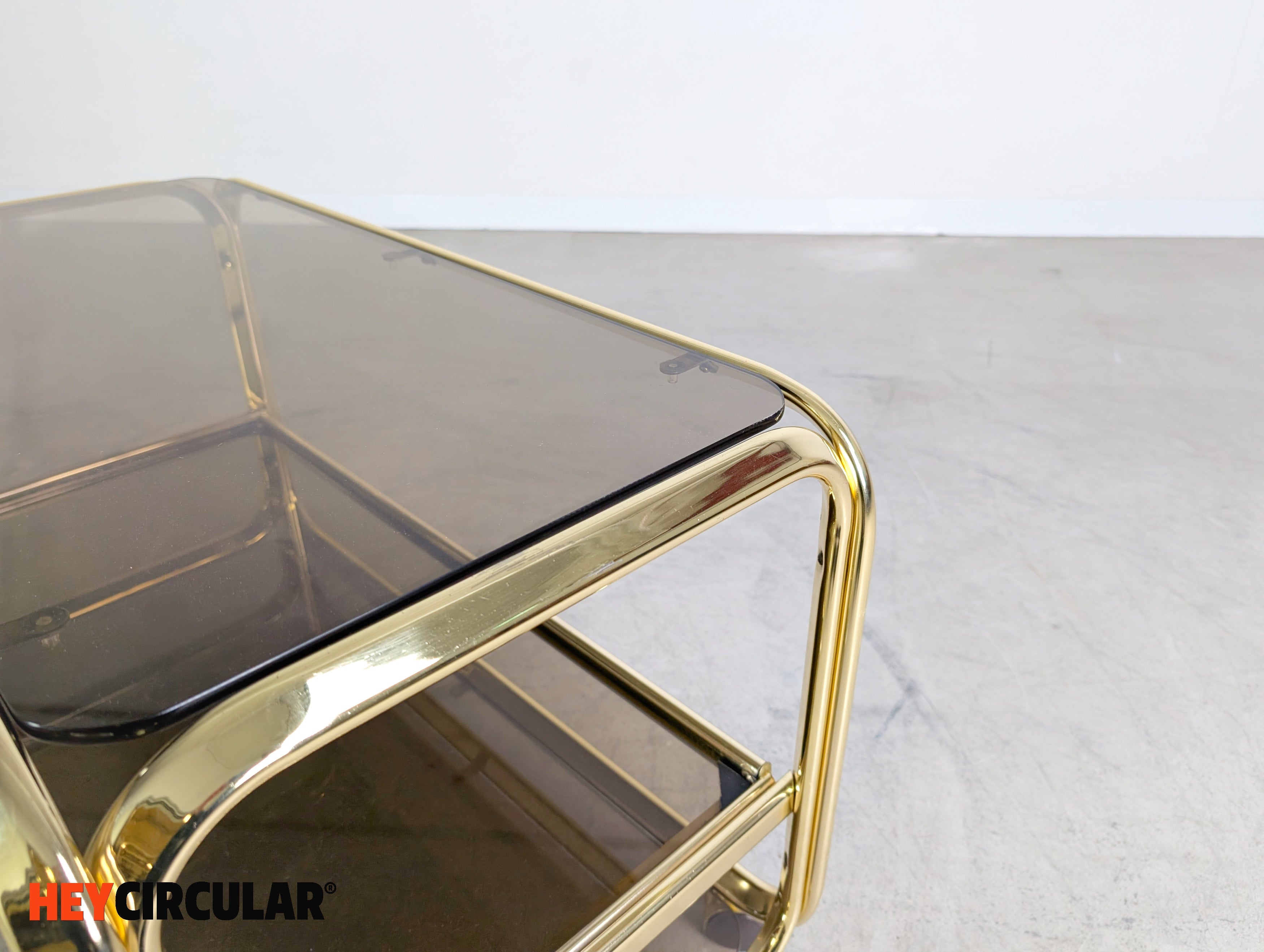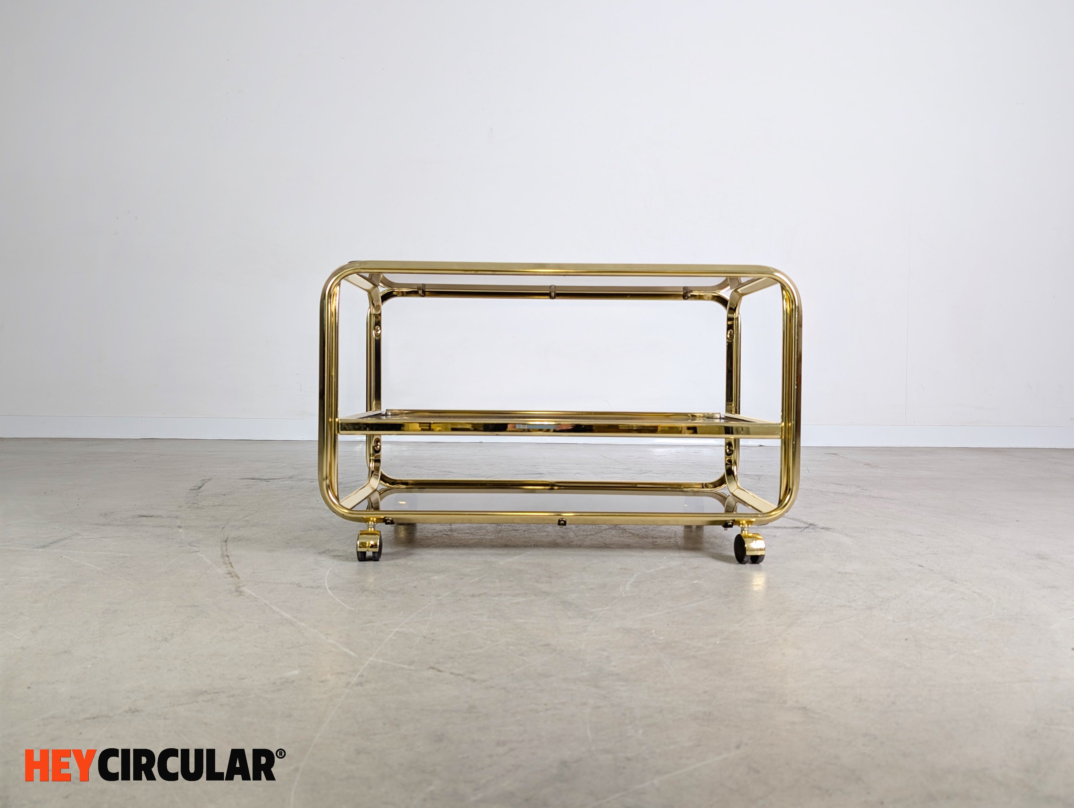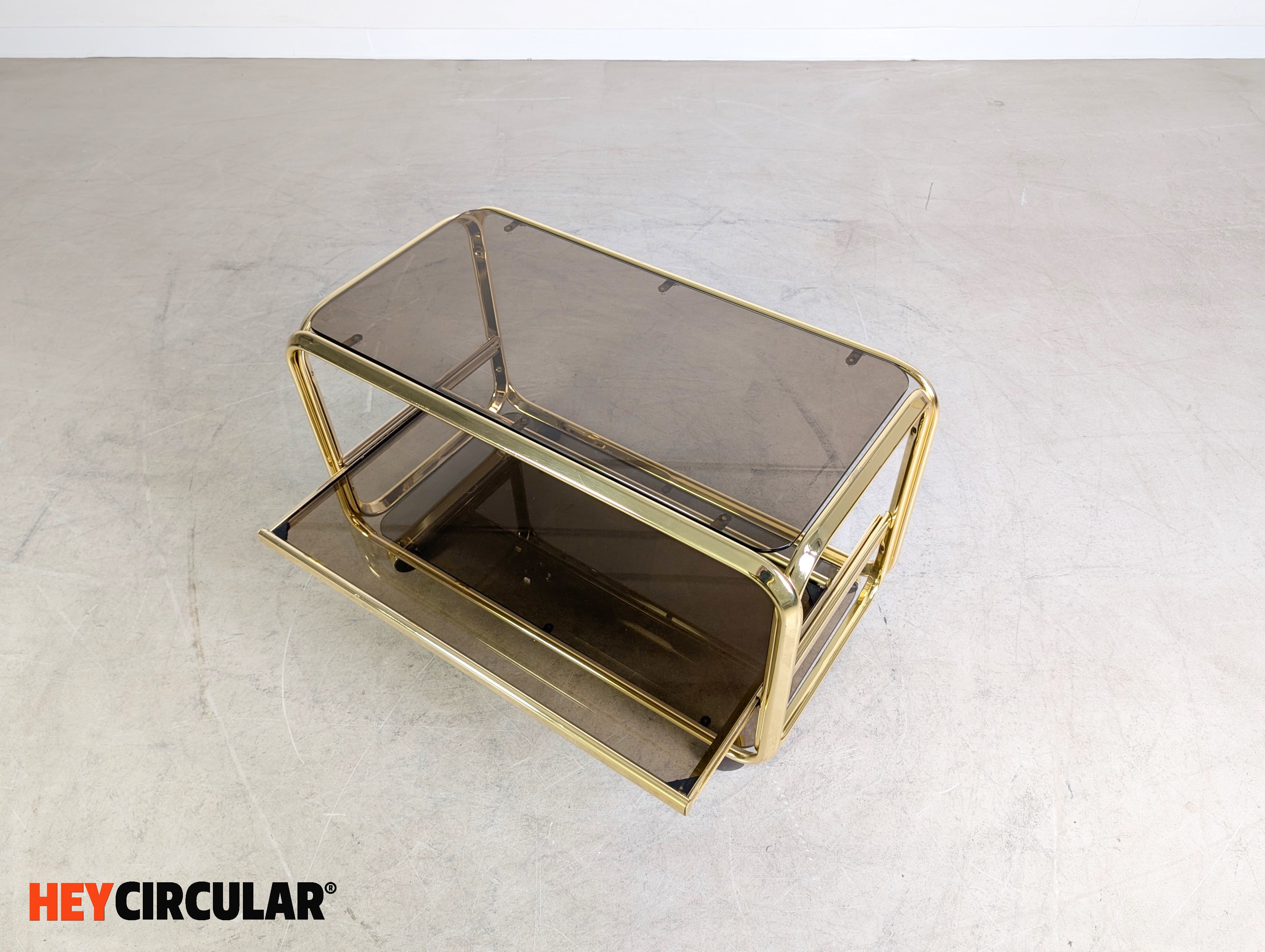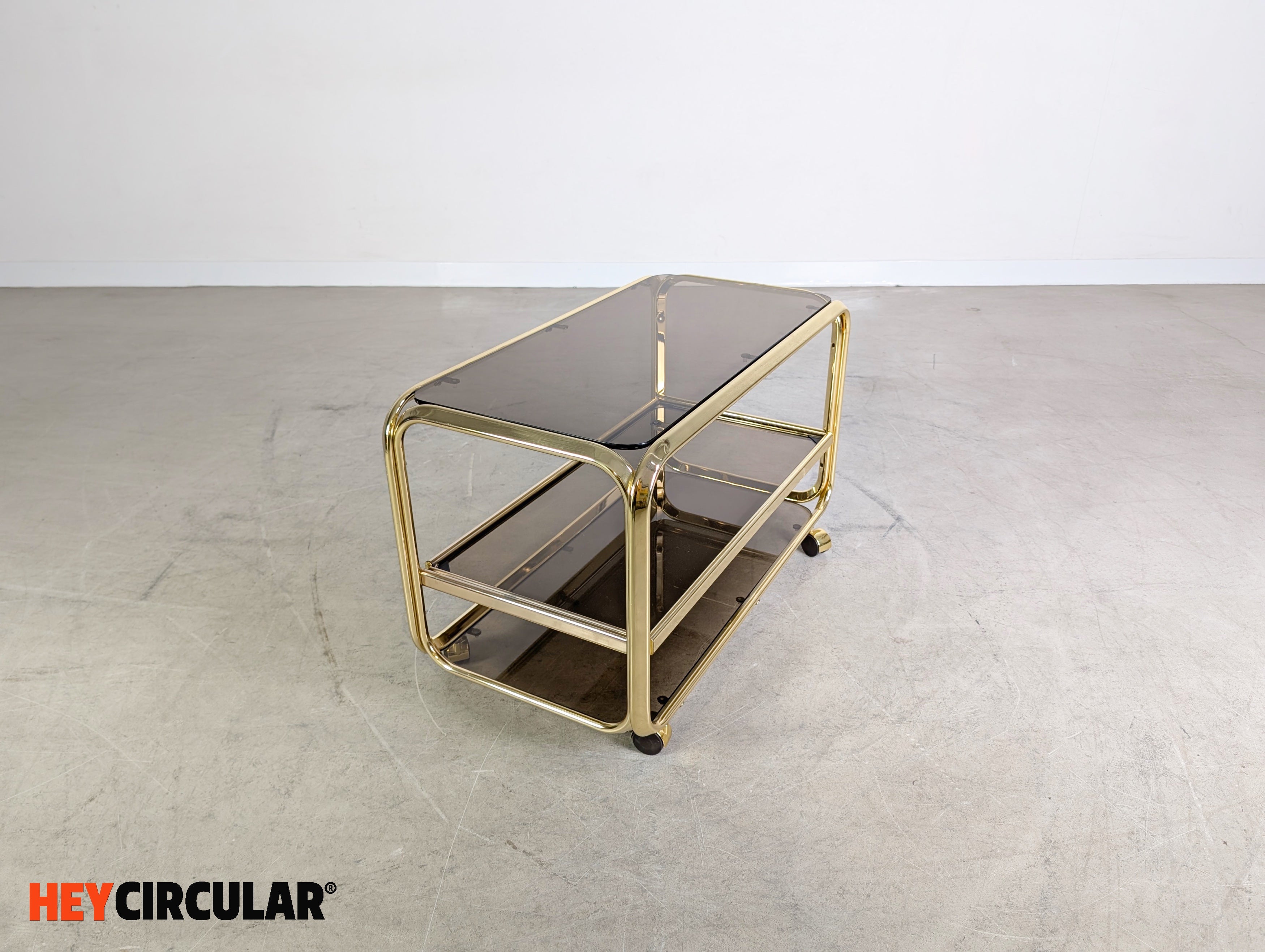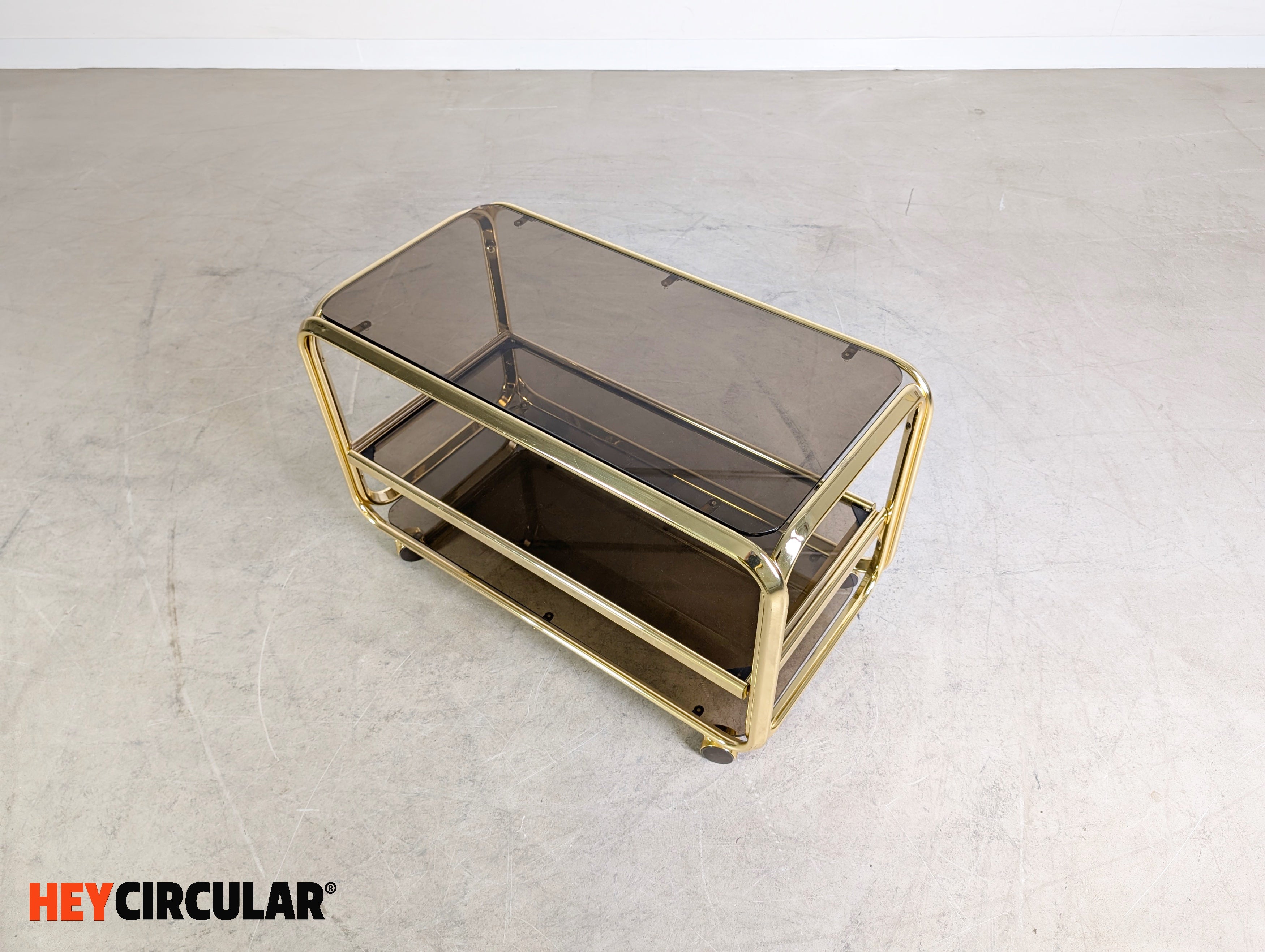 Midcentury Beistelltisch Servierwagen Messing Glas Italien 1970 Vintage