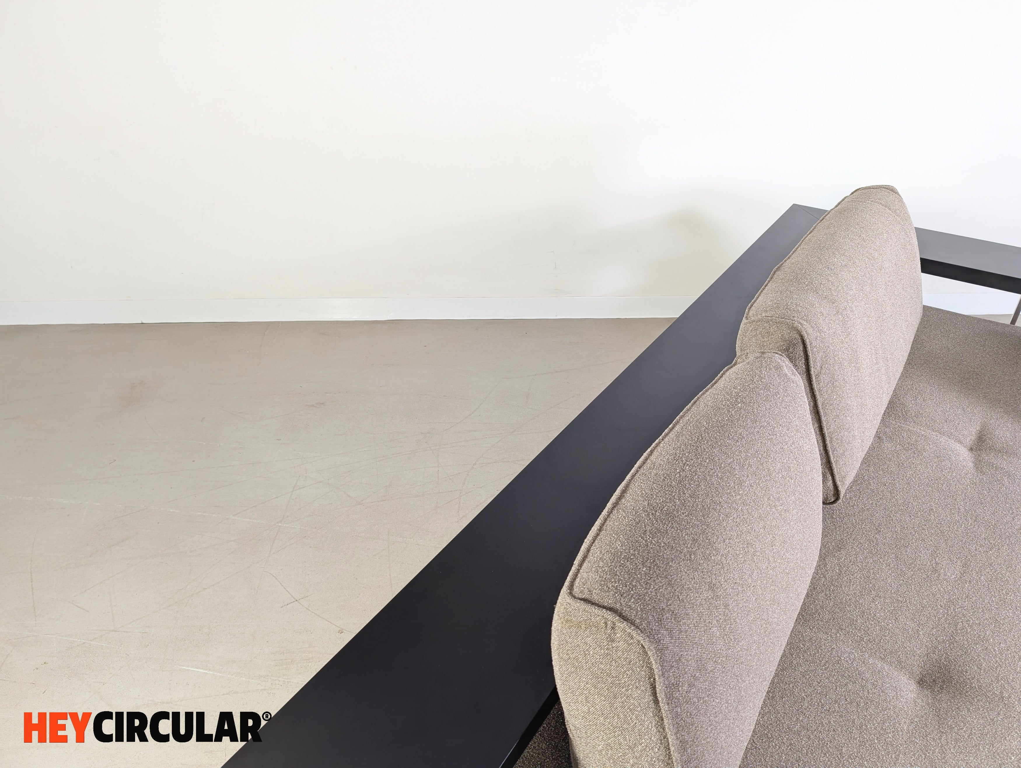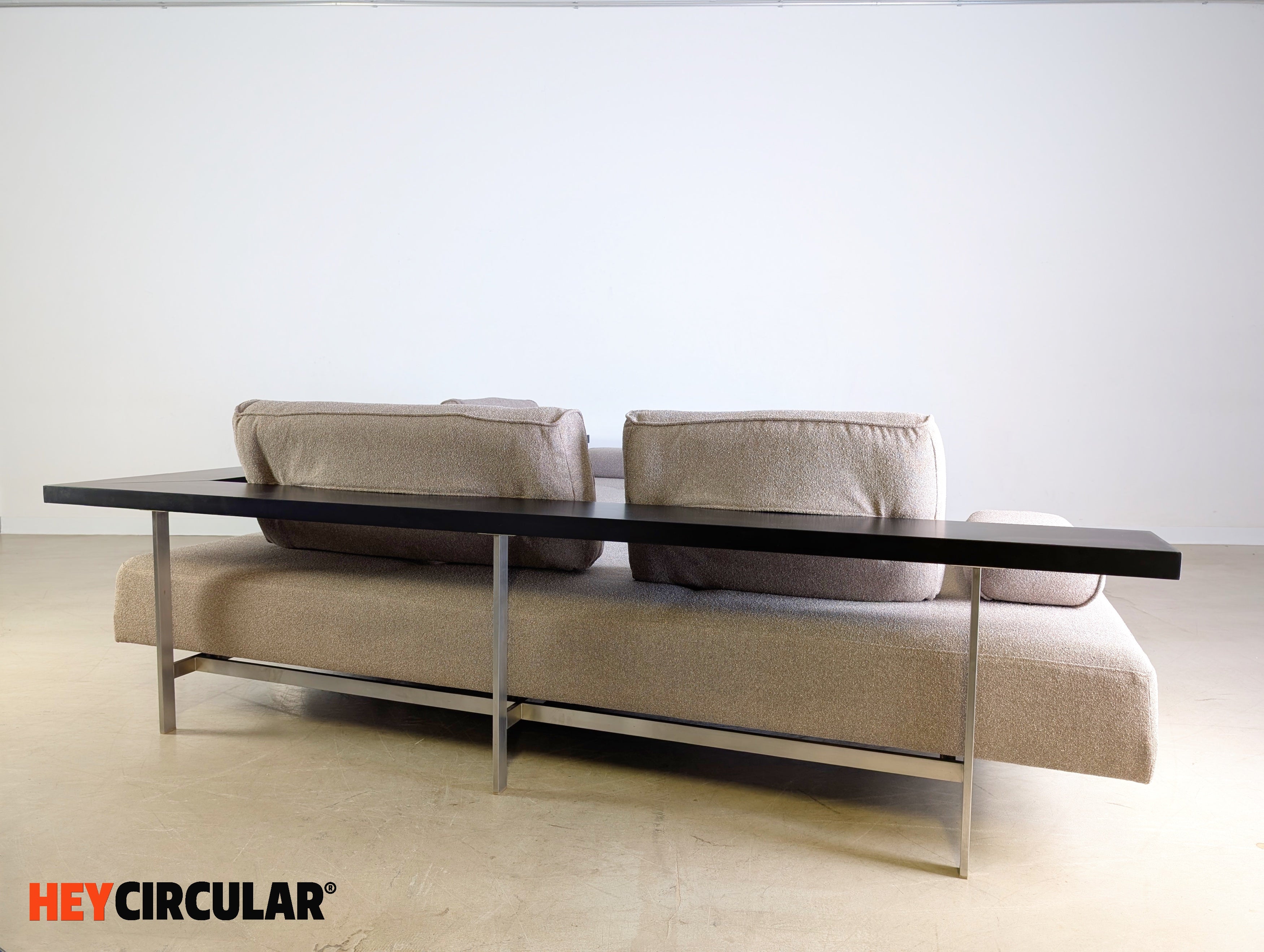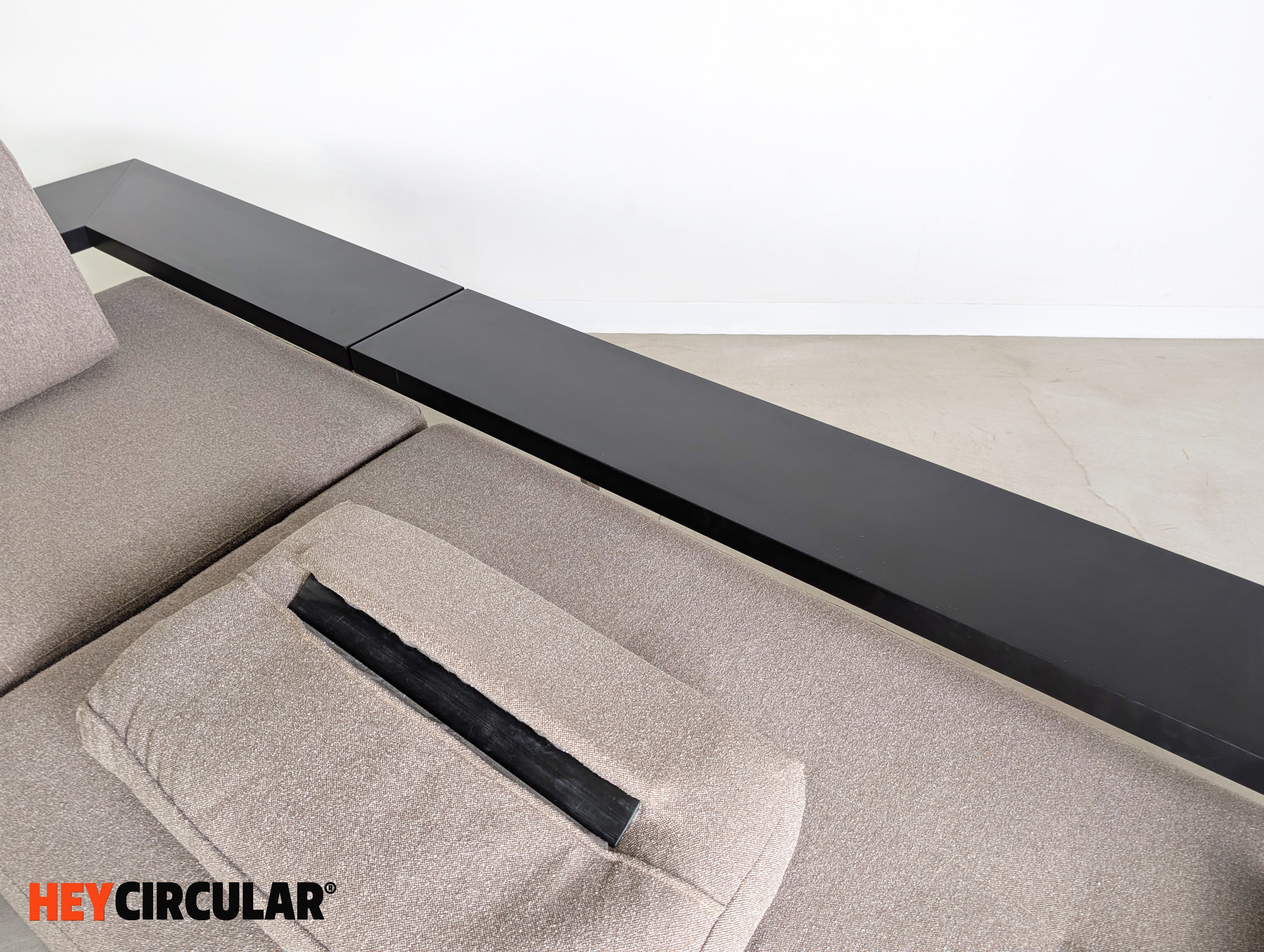 Wir bieten ein wunderschönes, komplett neu bezogenes Rolf Benz Dono 6100 Ecksofa zum Verkauf an. Das Sofa zeichnet sich aus durch seine moderne und praktische Rückenlehne/ Ablage aus Holz und verfügt über drei Rücken- und zwei Armlehnkissen, die beliebig angeordnet und erstere an der Lehne verschoben werden können. Die Polster inkl. der Zubehörkissen wurden neu bezogen und die Rückenlehne/ -ablage professionell in schwarz neu lackiert.