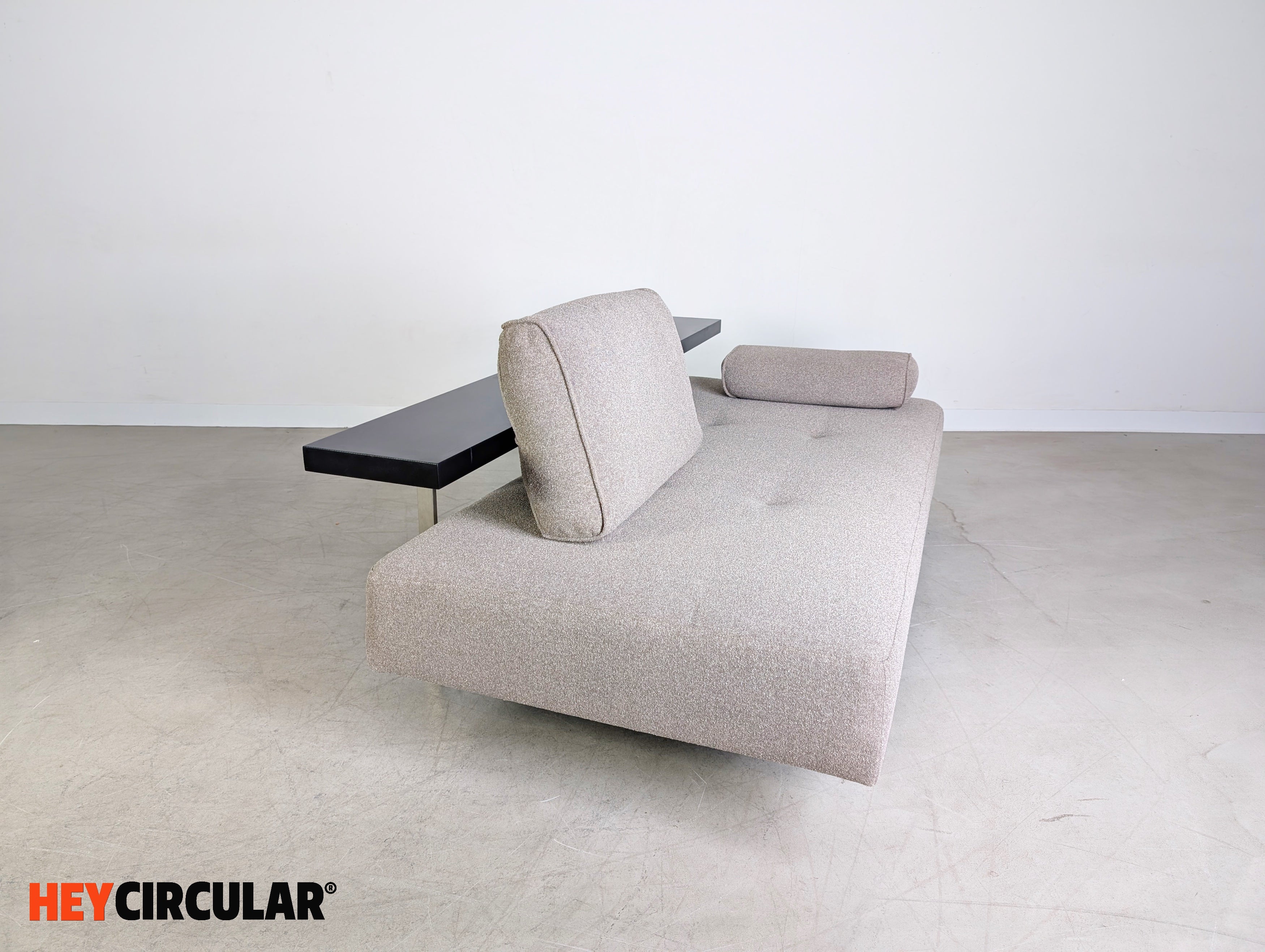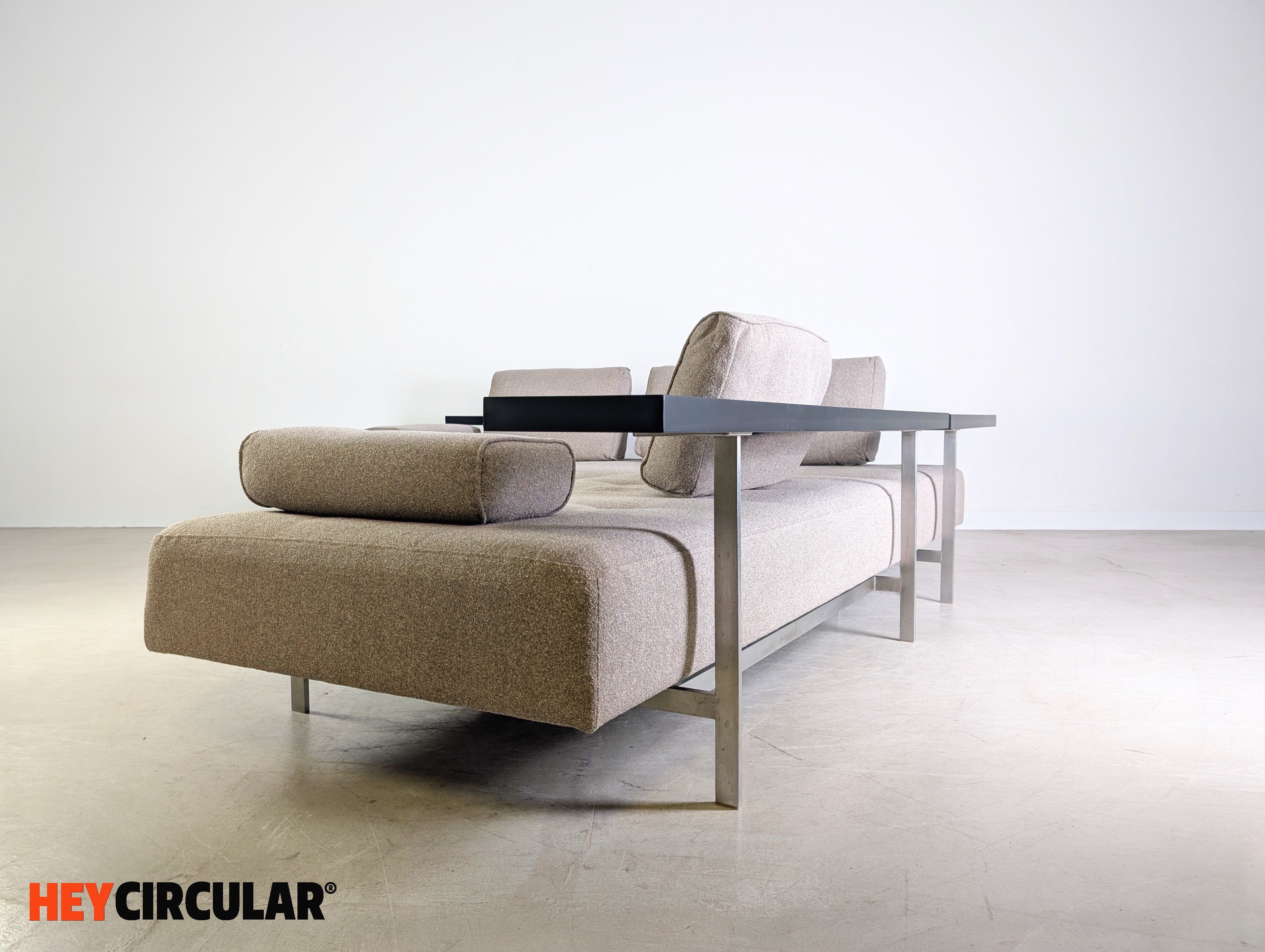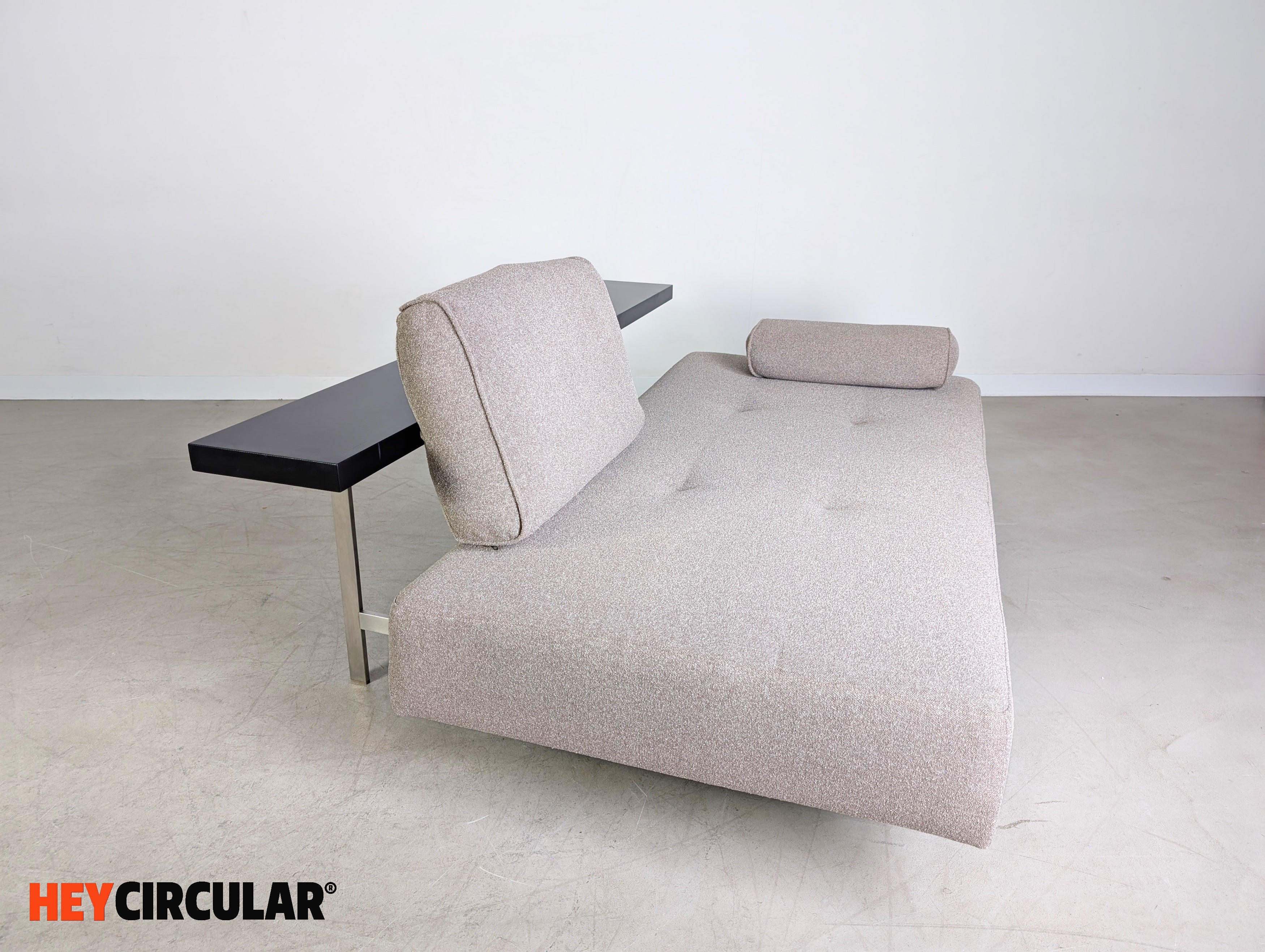Wir bieten ein wunderschönes, komplett neu bezogenes Rolf Benz Dono 6100 Ecksofa zum Verkauf an. Das Sofa zeichnet sich aus durch seine moderne und praktische Rückenlehne/ Ablage aus Holz und verfügt über drei Rücken- und zwei Armlehnkissen, die beliebig angeordnet und erstere an der Lehne verschoben werden können. Die Polster inkl. der Zubehörkissen wurden neu bezogen und die Rückenlehne/ -ablage professionell in schwarz neu lackiert.