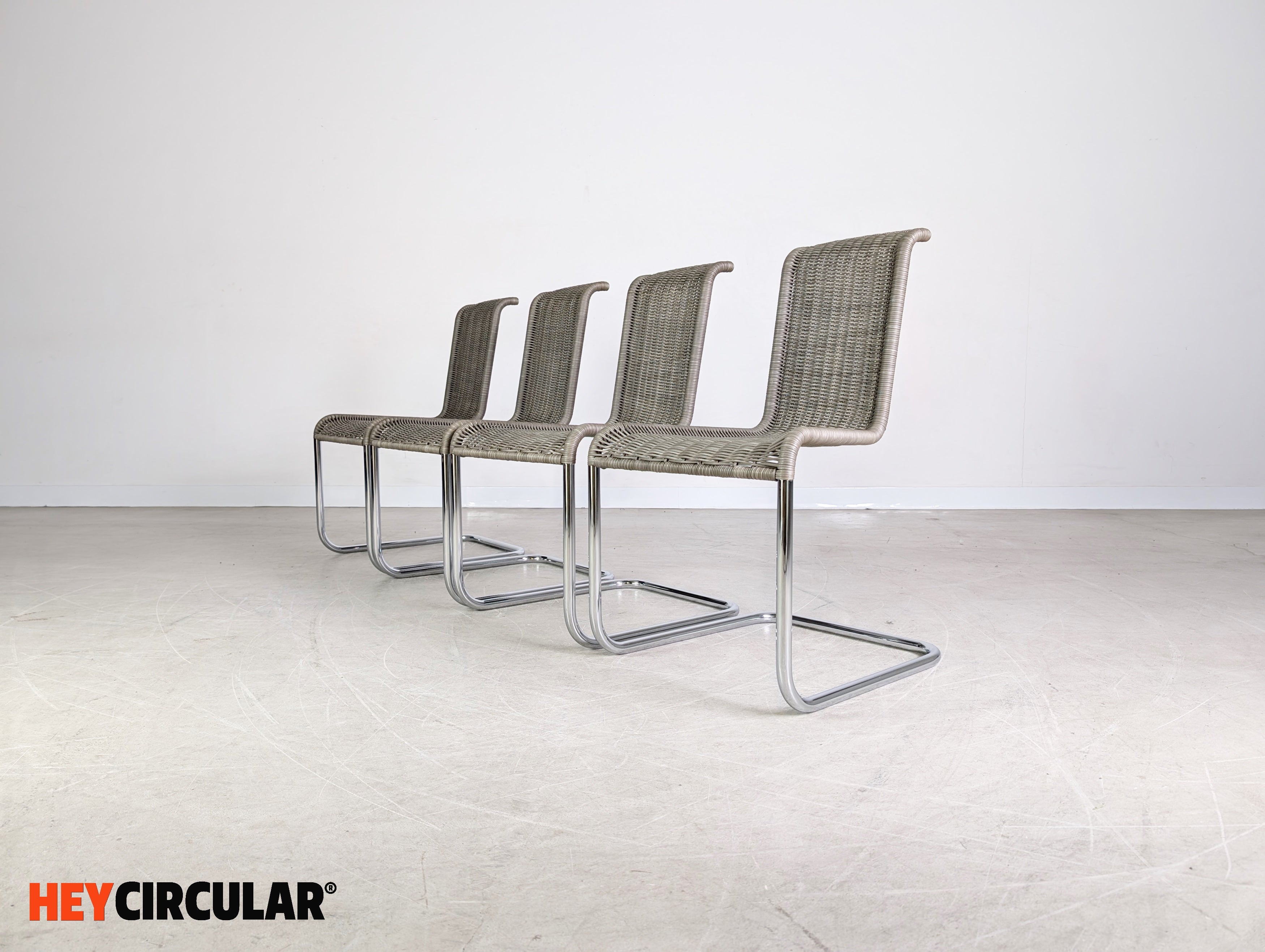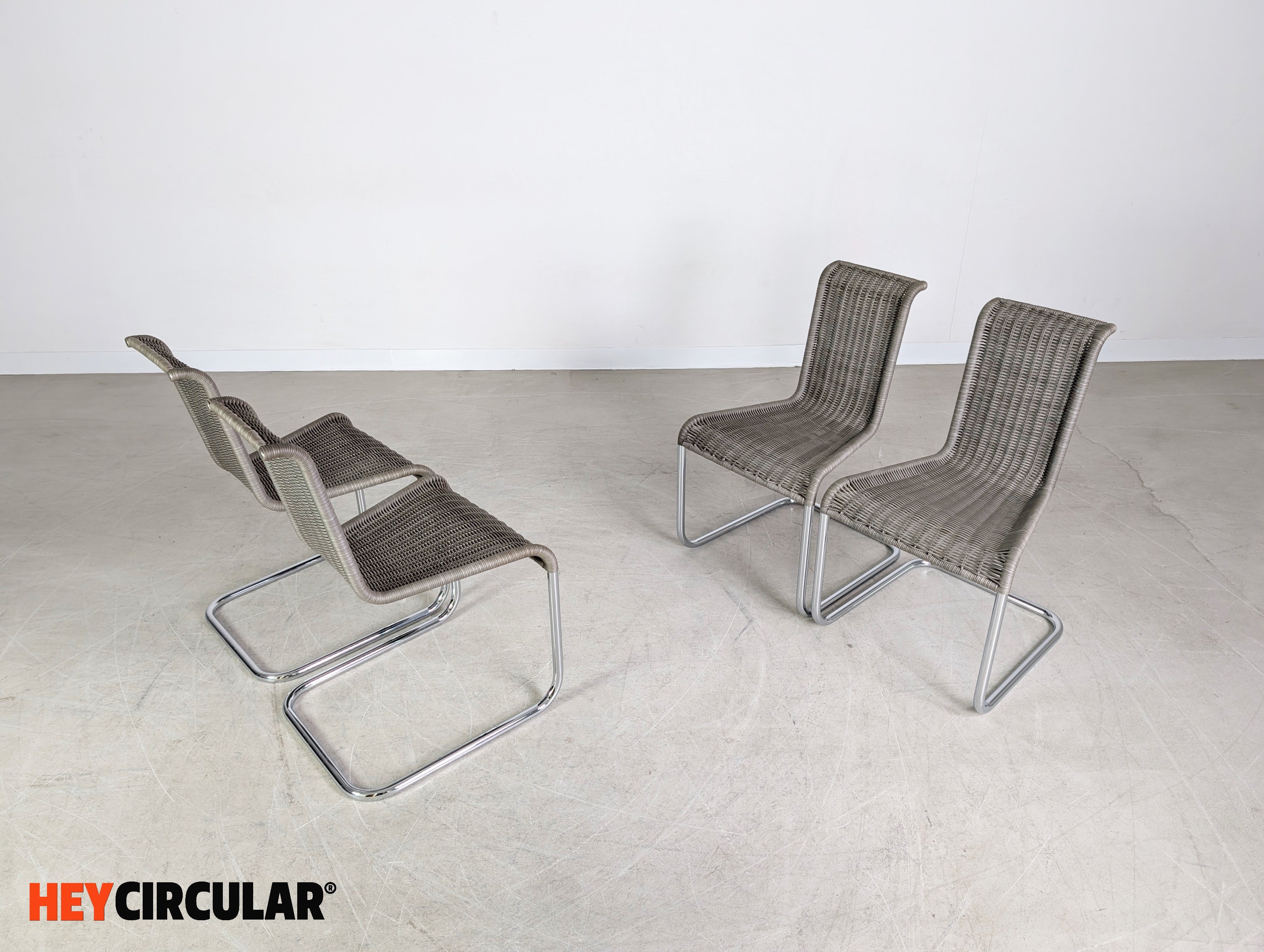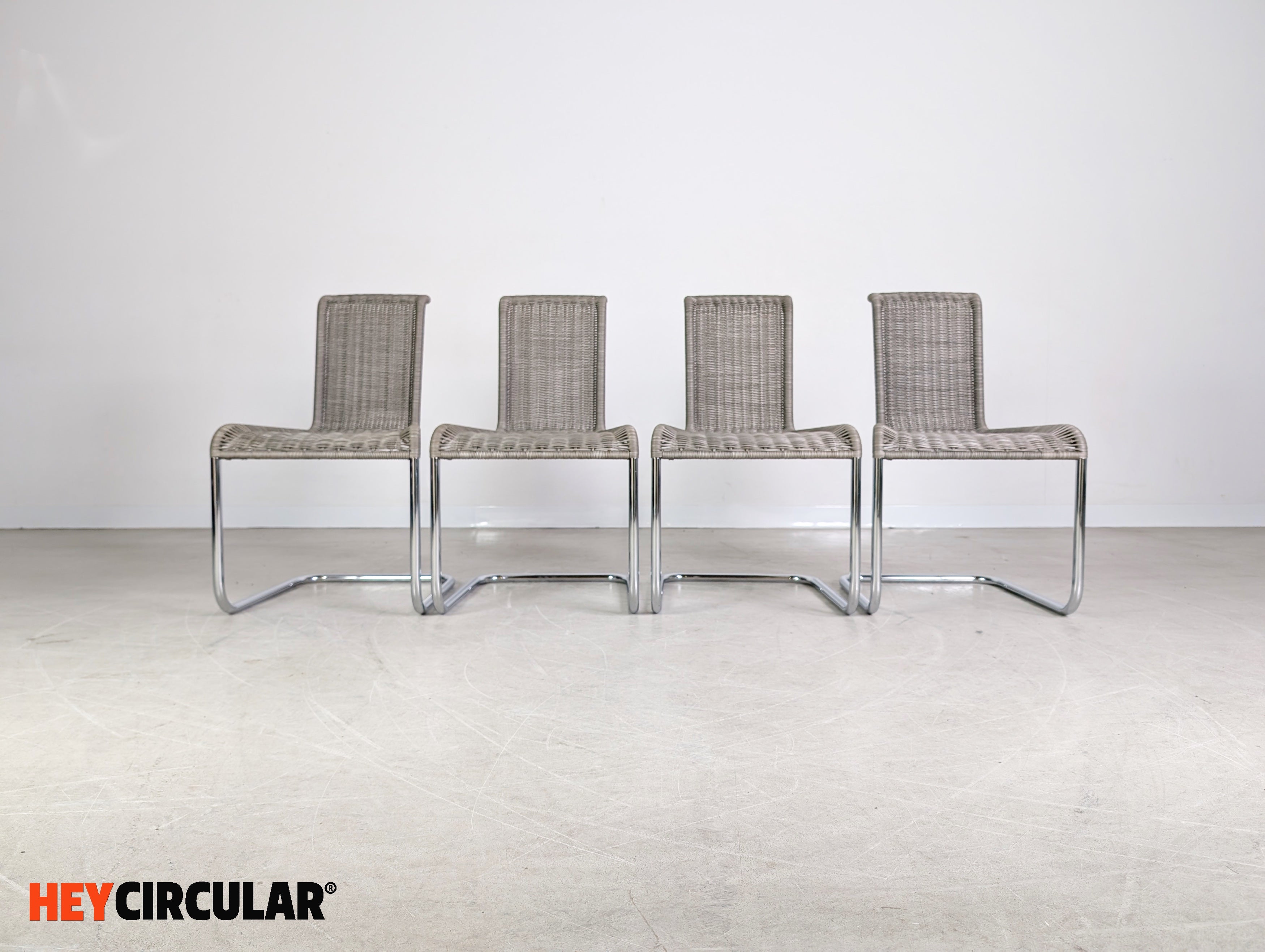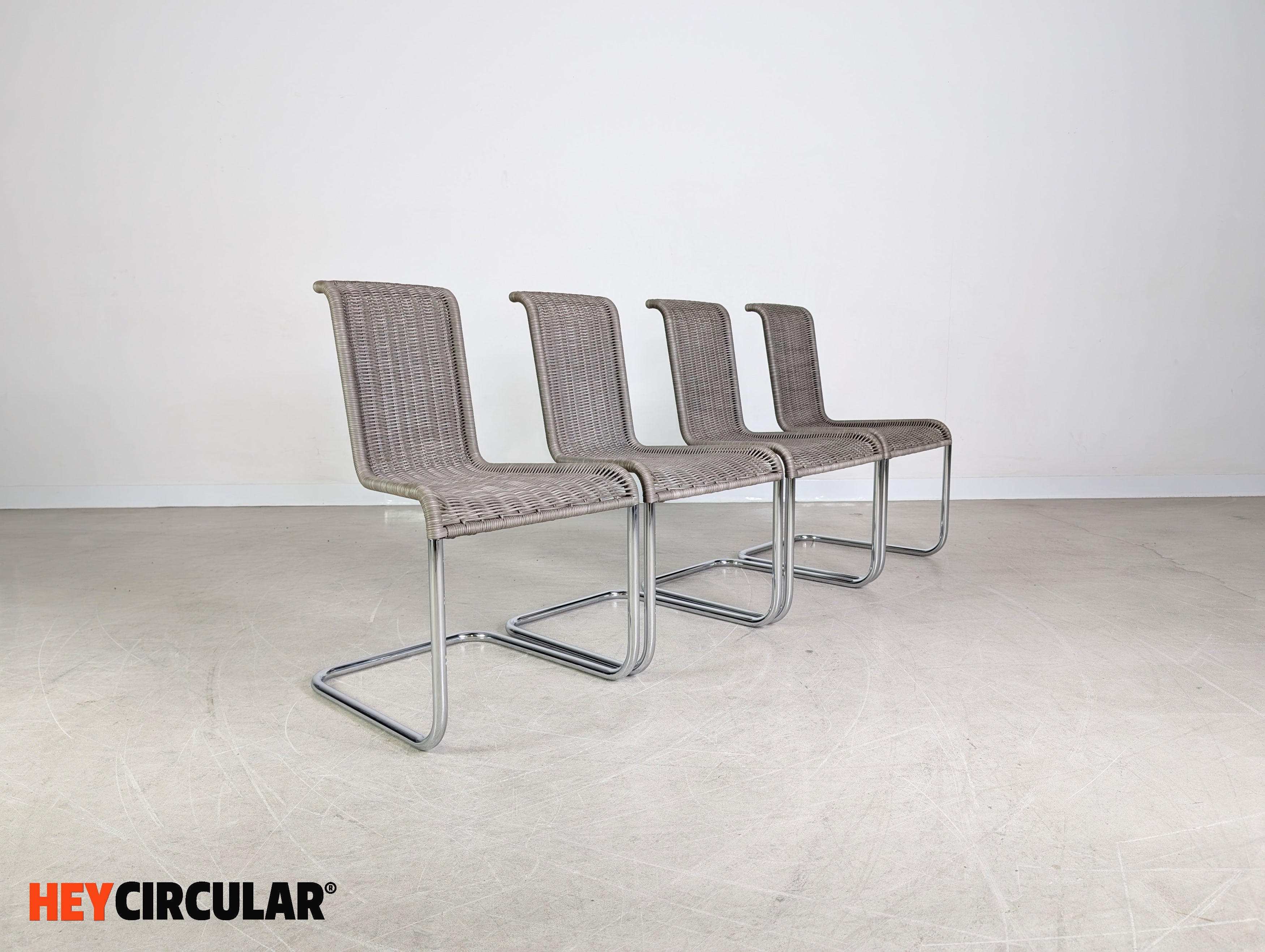 Original 4er Set Tecta Kragstühle B20 Jean Prouve Freischwinger grau