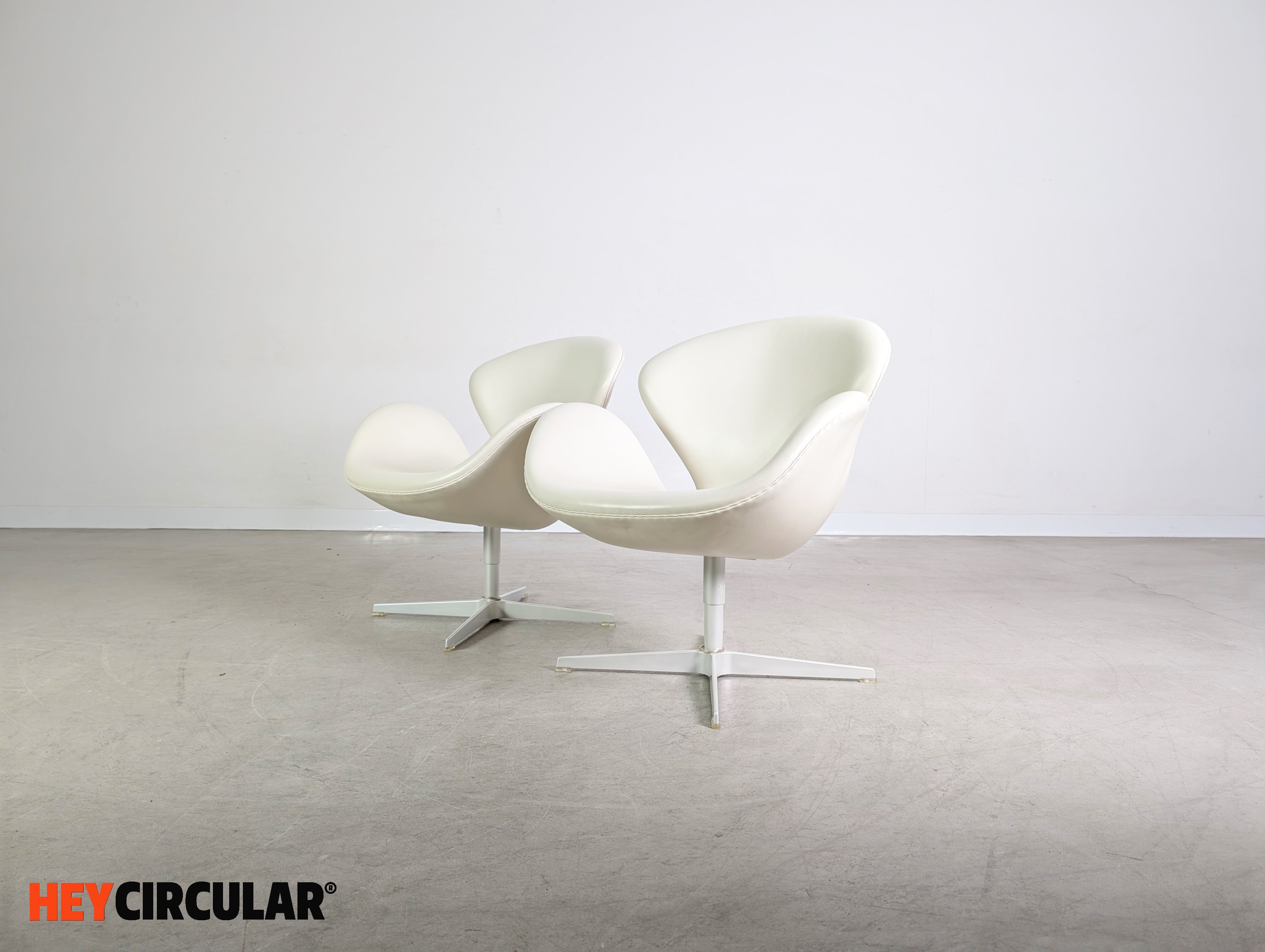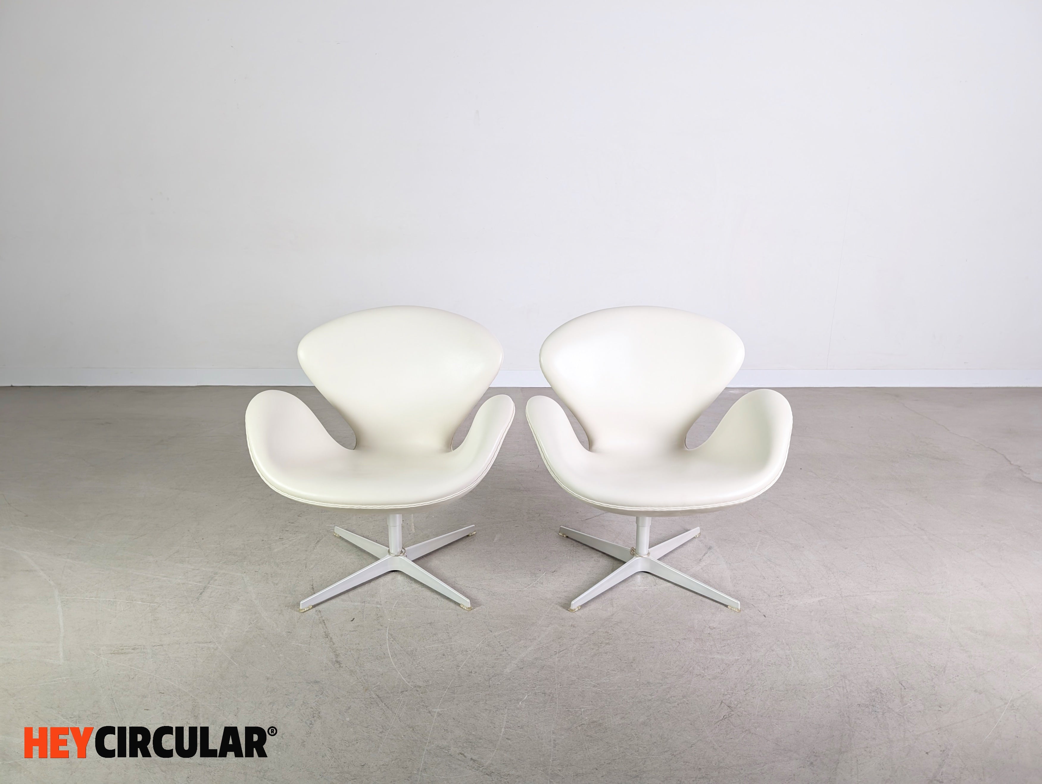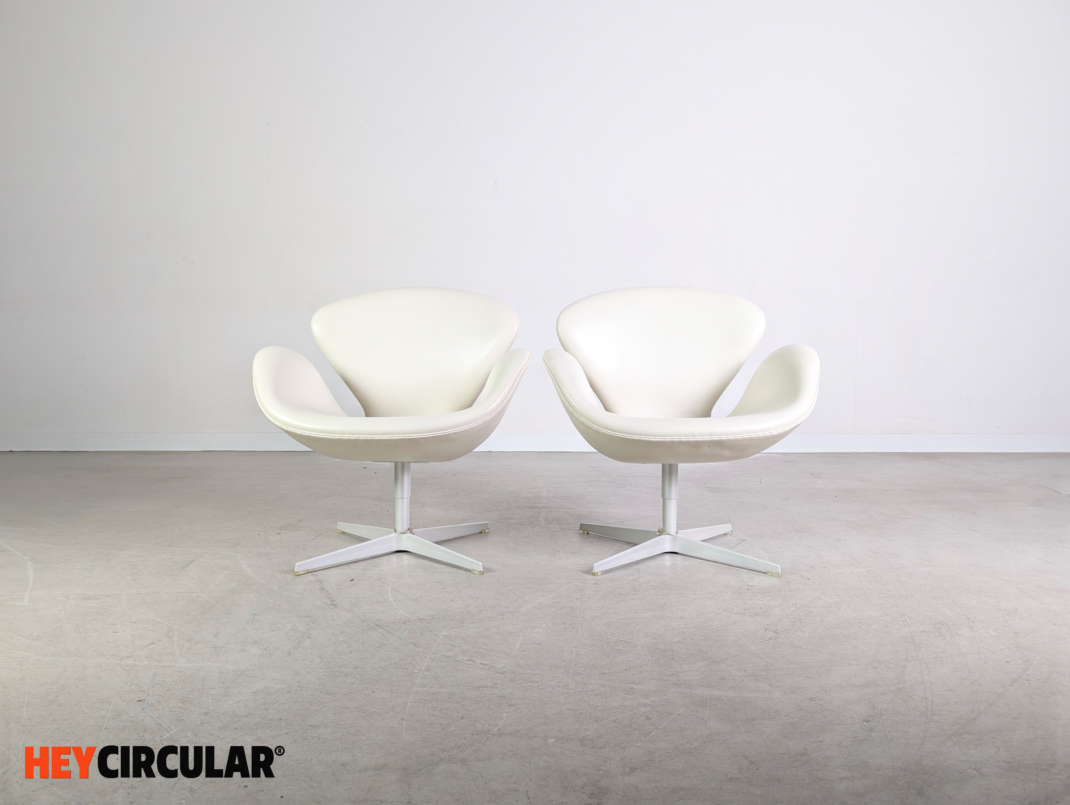 2x Original Fritz Hansen Swan chair Arne Jacobsen Leder weiß