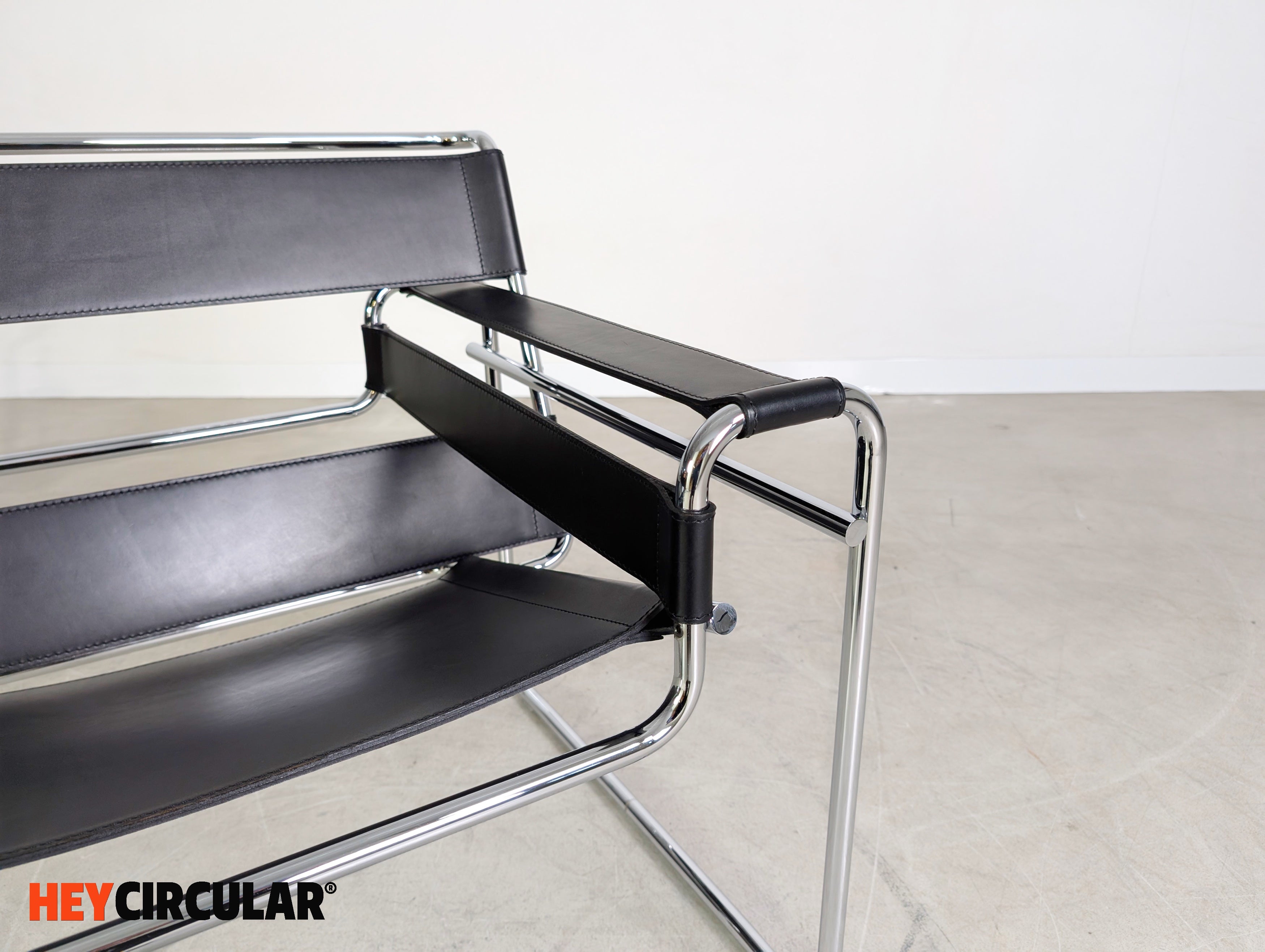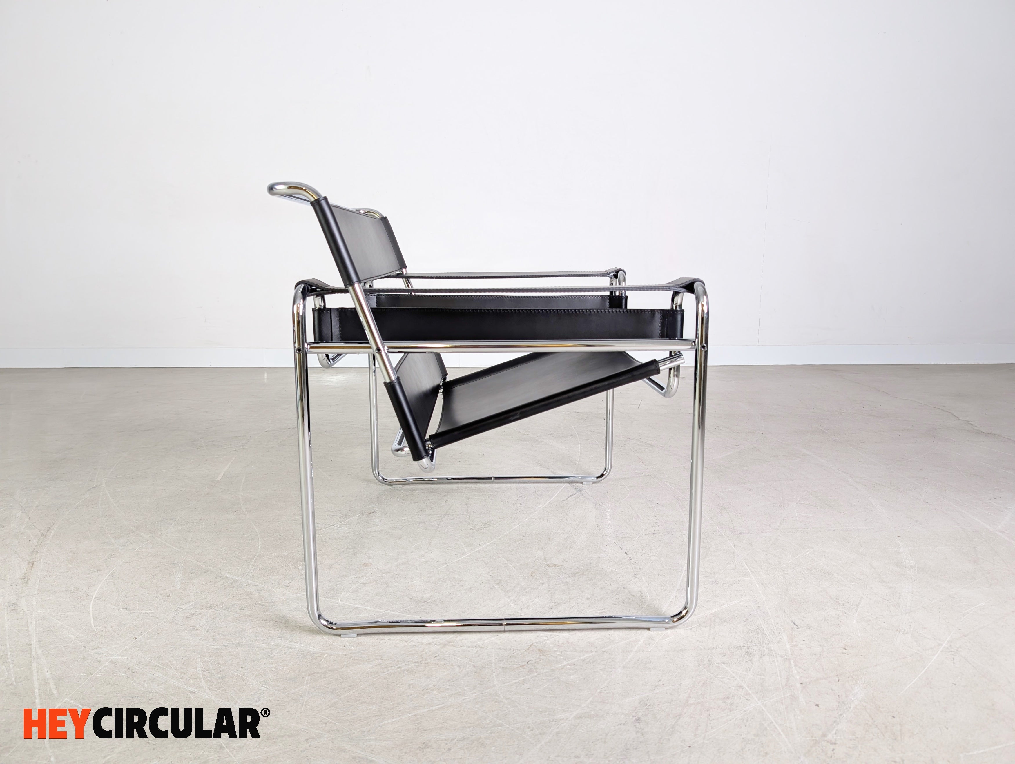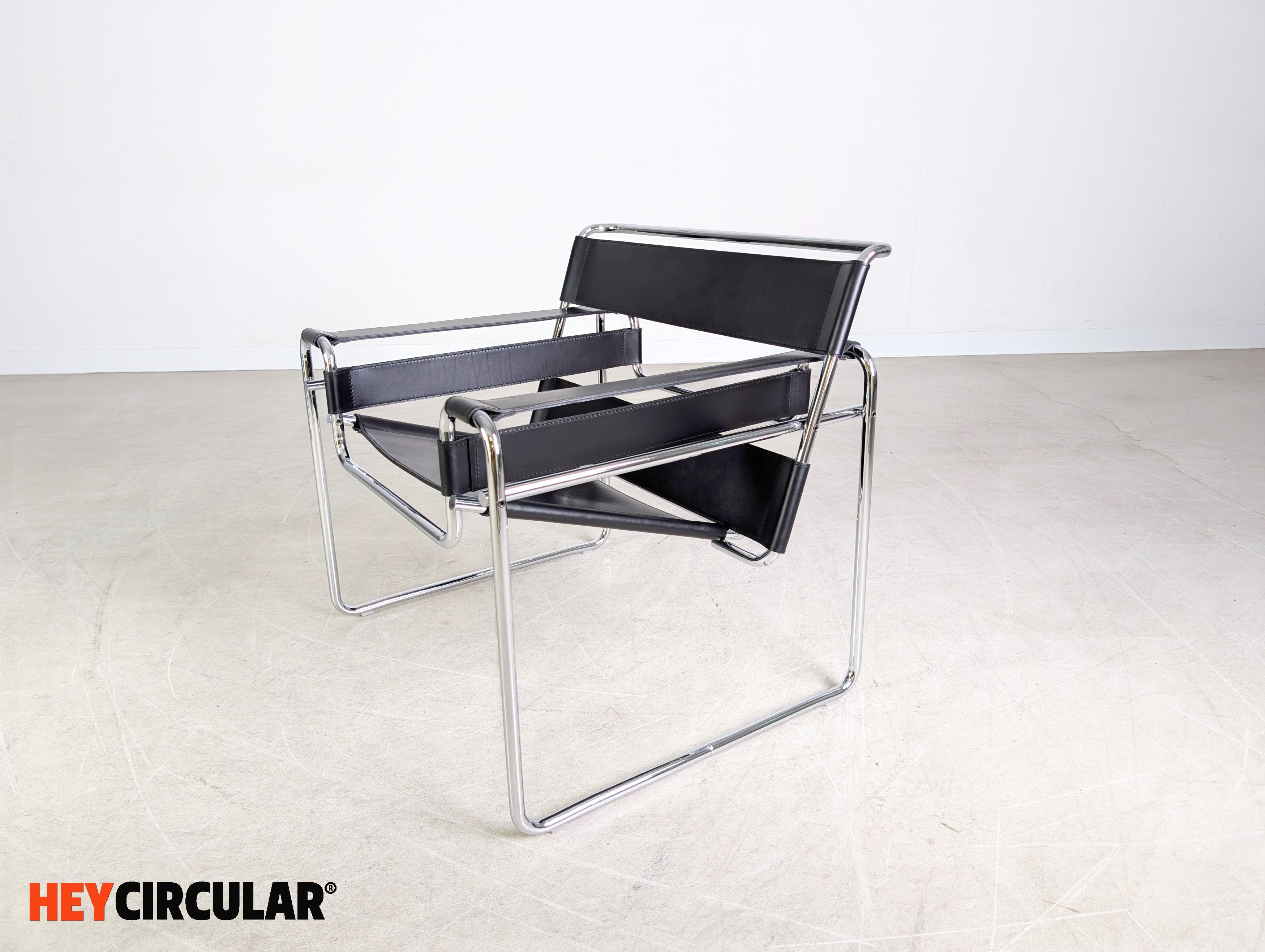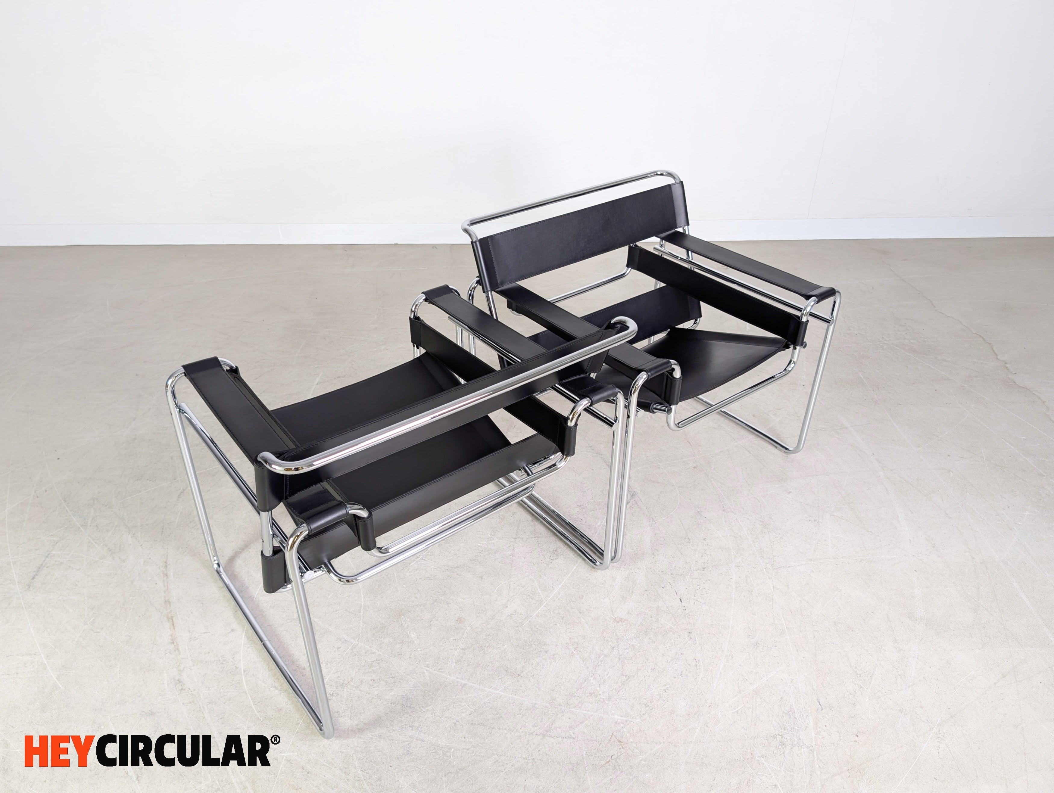 Wir bieten einen von insgesamt zwei originalen "Wassily" Sesseln (Mod. 50 LCL 80) von Knoll International zum Verkauf an. Der Entwurf stammt von Marcel Breuer aus dem Jahr 1925 und gilt heute als eines der bekanntesten Designklassiker der Möbelgeschichte. Der Preis bezieht sich auf einen Stuhl. Bei der Abnahme von beiden Stühlen ist ein günstigerer Setpreis möglich. Der Neupreis liegt bei ca. 2856€.