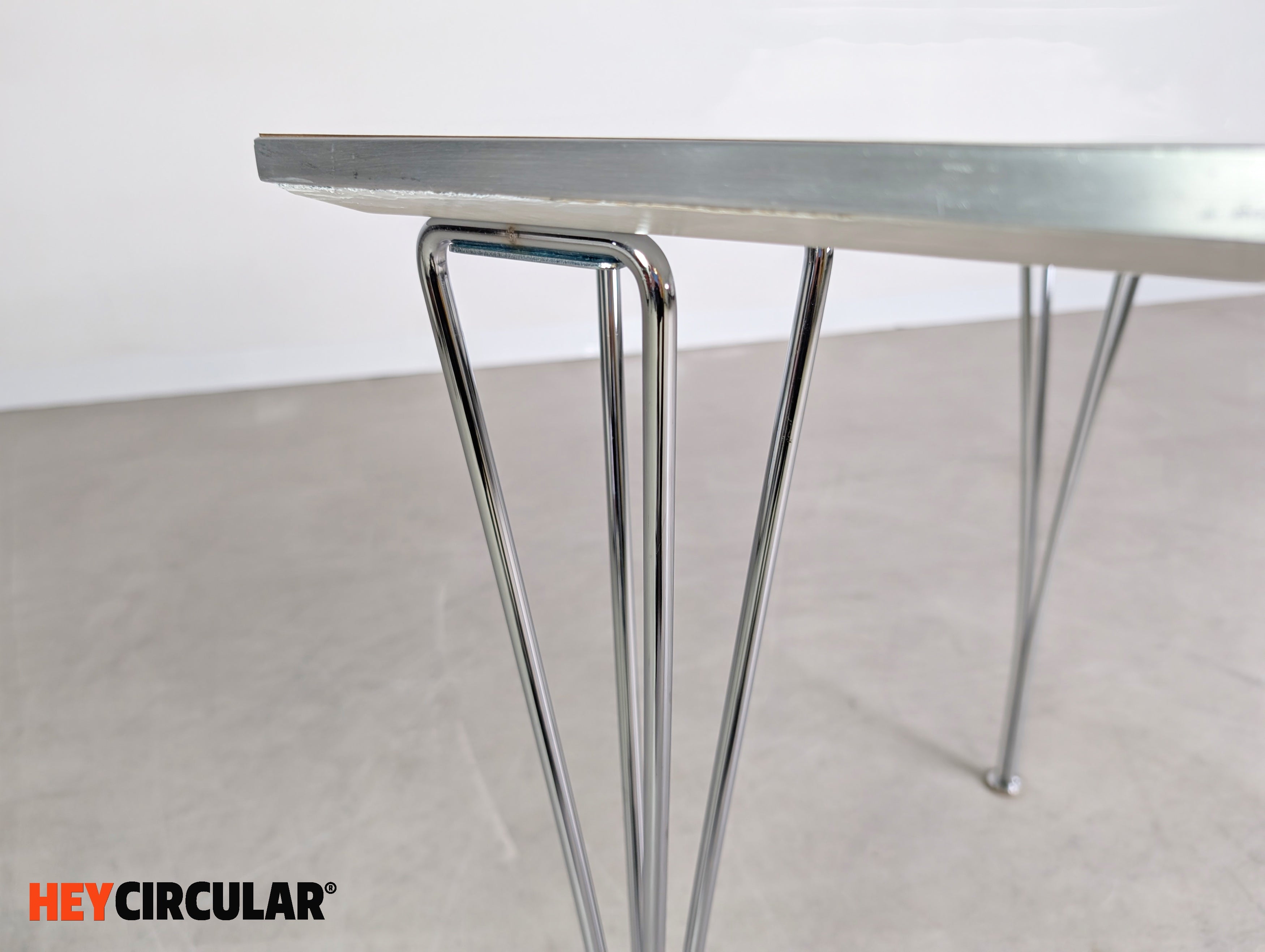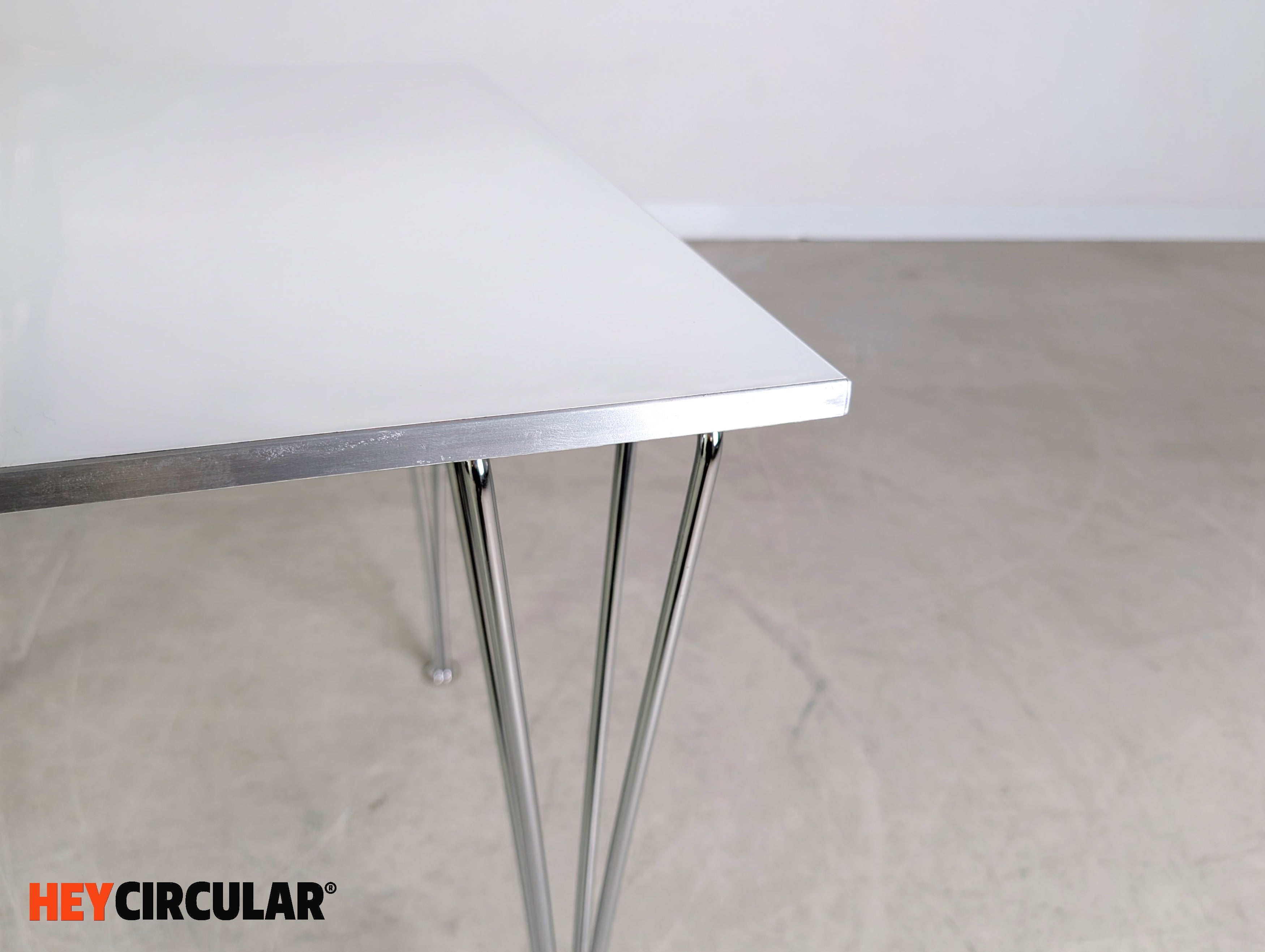 Wir bieten einen von insgesamt vier originalen Fritz Hansen Tischen zum Verkauf an. Der Entwurf stammt von Piet Hein und gilt als wahrer Designklassiker. Der Preis bezieht sich auf einen Tisch. Bei der Abnahme mehrerer Exemplare ist ein günstigerer Setpreis möglich. Der Neupreis liegt bei ca. 2.200€.