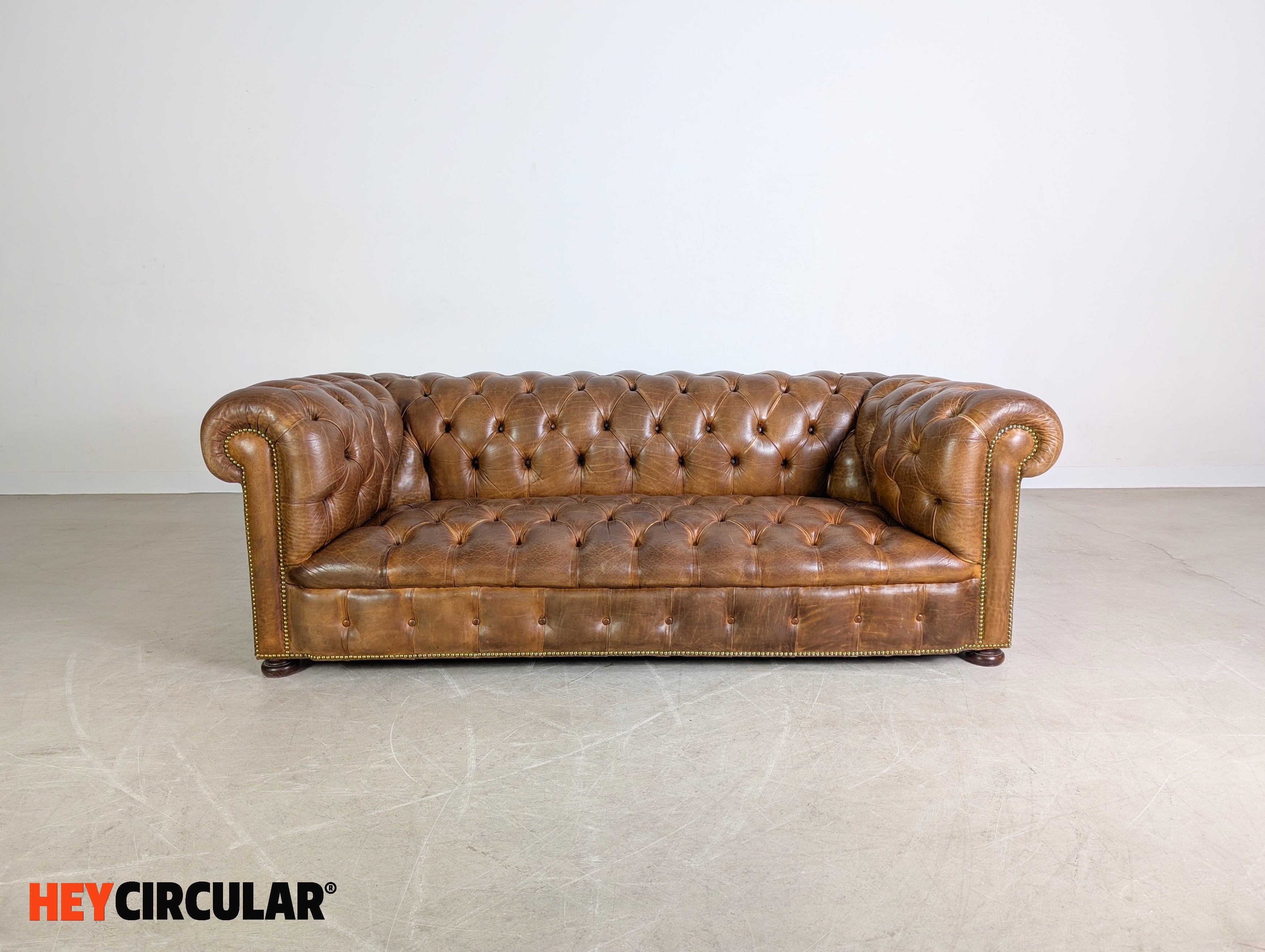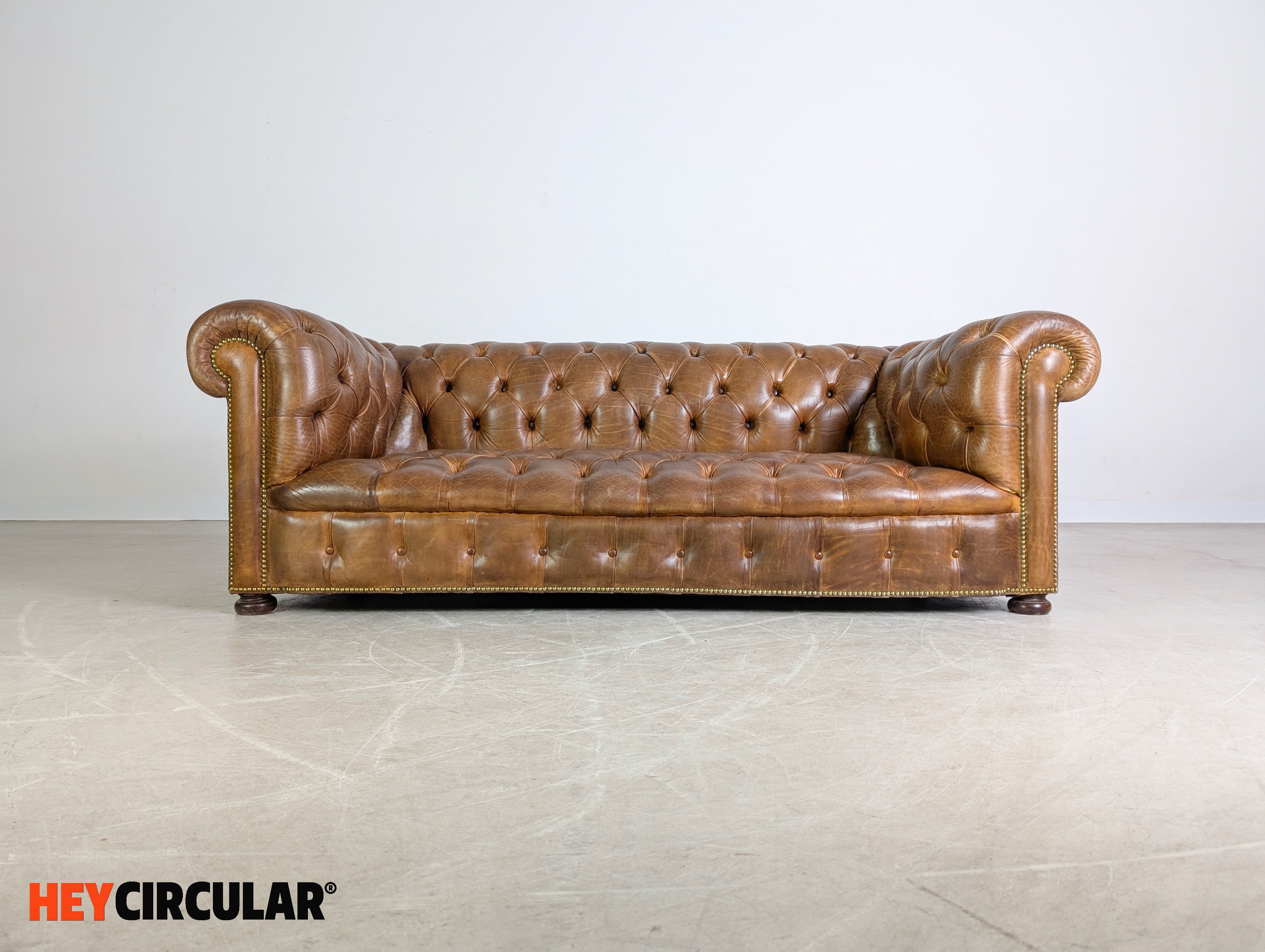 Original handgefertigtes Chesterfield Sofa England 1920 Leder Antik